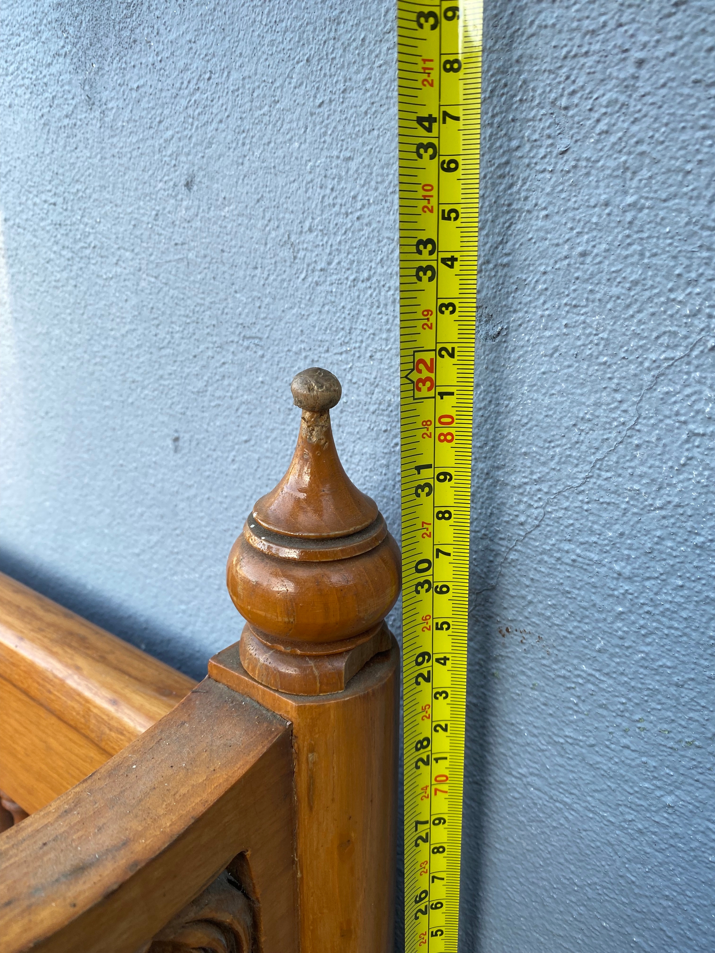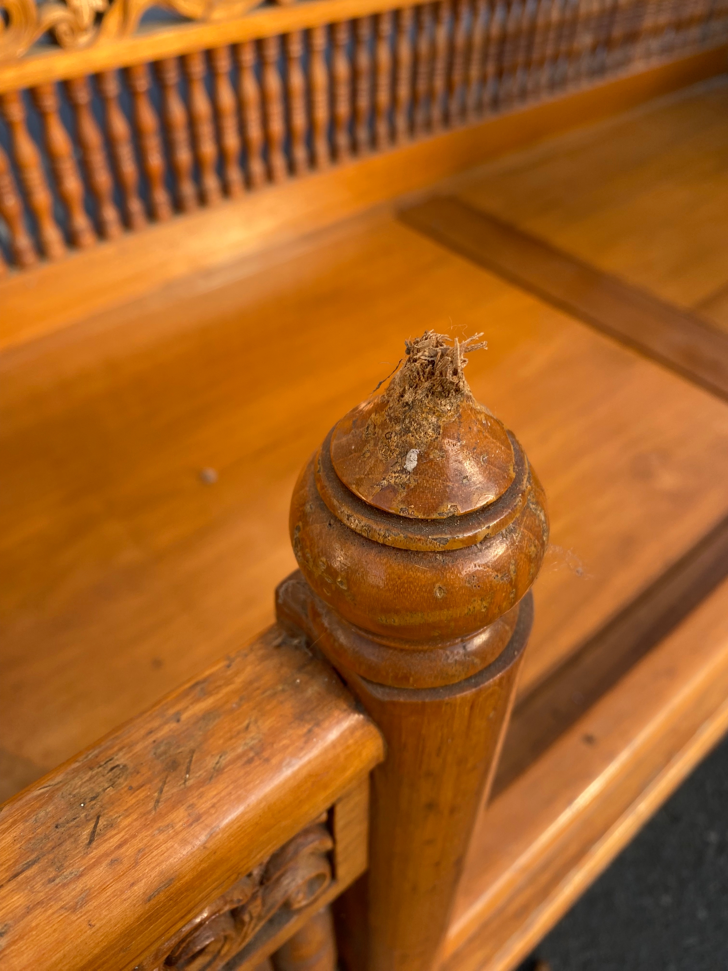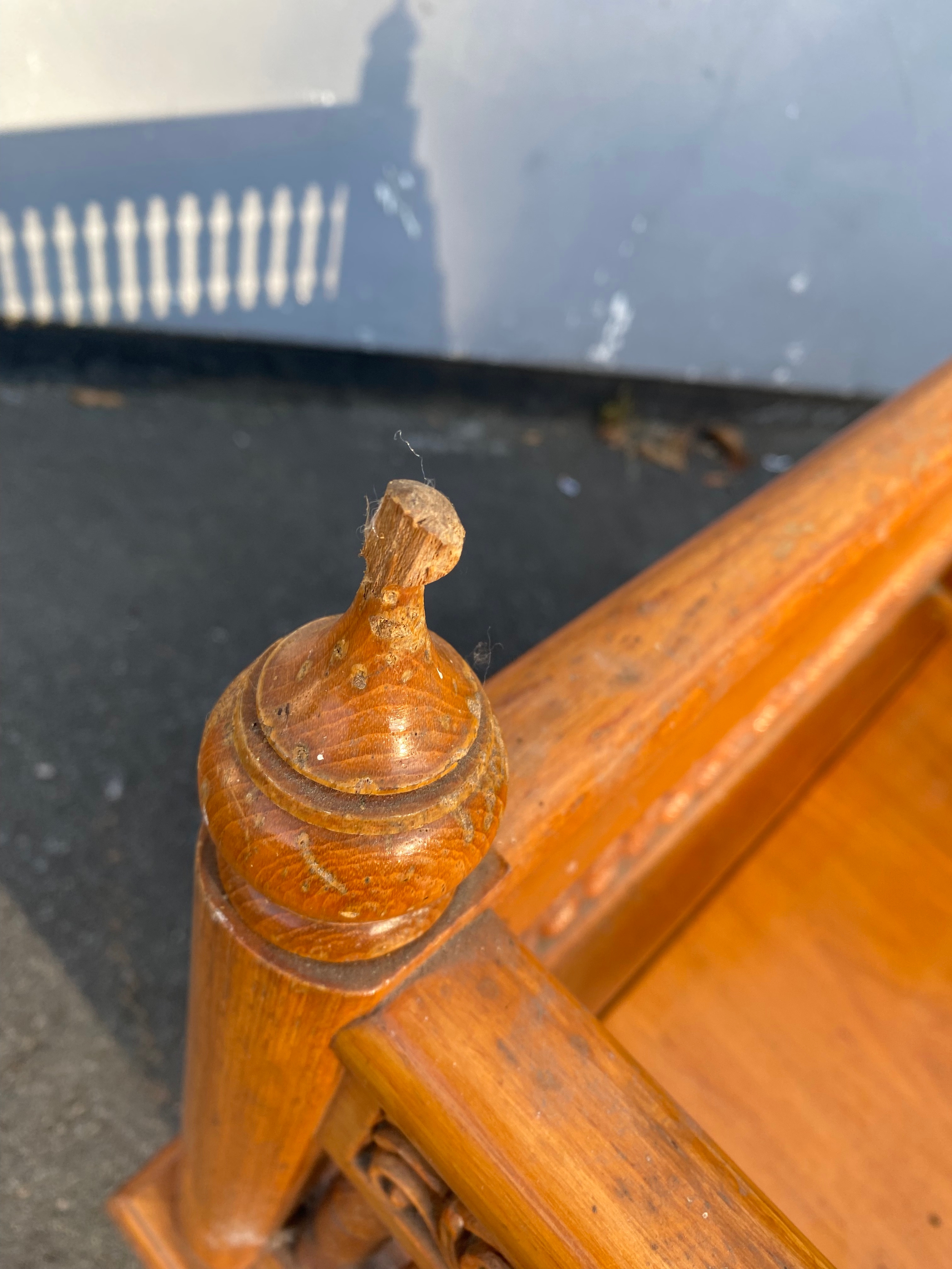 Bottom left spindle has snapped. And damage to finials