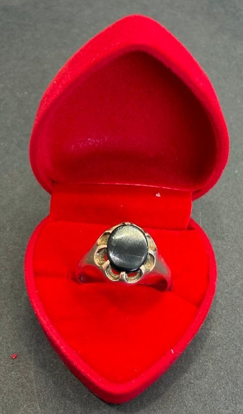 Jewellery : 9ct GOLD ring with large dark stone and claw mount Size S-T 4.28g, clear Chester Hallmarks date letter R PLEASE MAKE SURE YOU READ TERMS AND CONDITIONS REGARDS PAYMENT OPTIONS, CARD NOT PRESENT TRANSACTIONS NOT ACCEPTED ON GOLD JEWELLERY OR WATCHES.