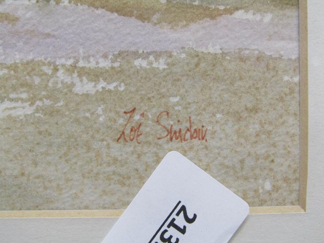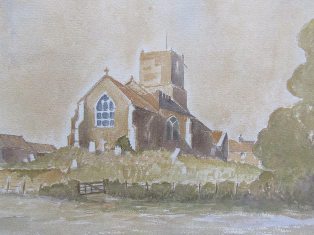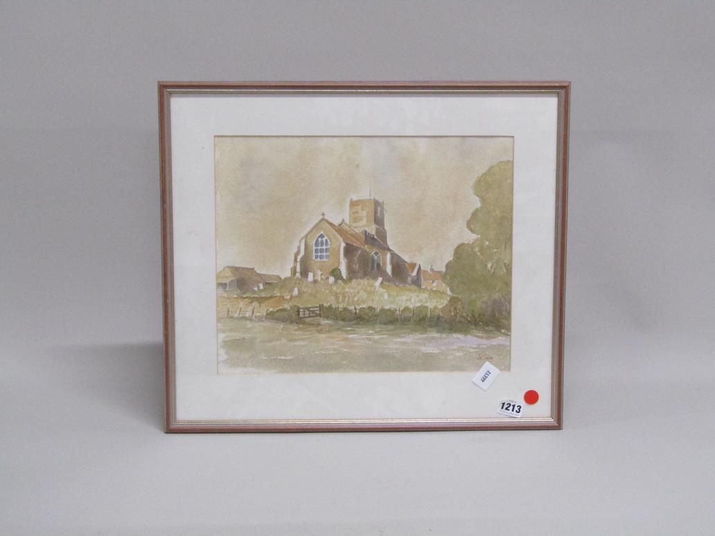 ZOE SINCLAIR - THE CHURCH ON THE HILL, SIGNED WATERCOLOUR, F/G
