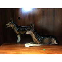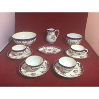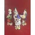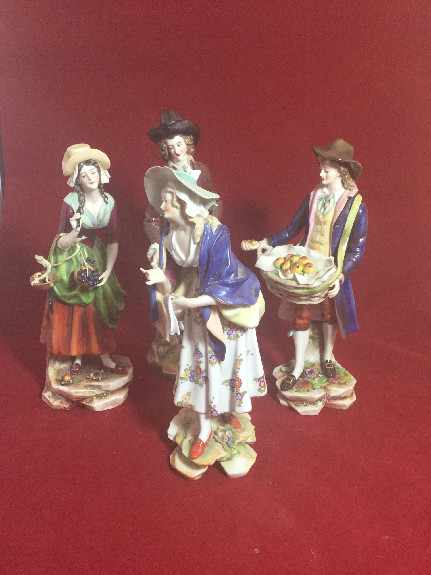 Four 19th century figures, including lady with scroll, fruit sellers etc -