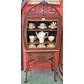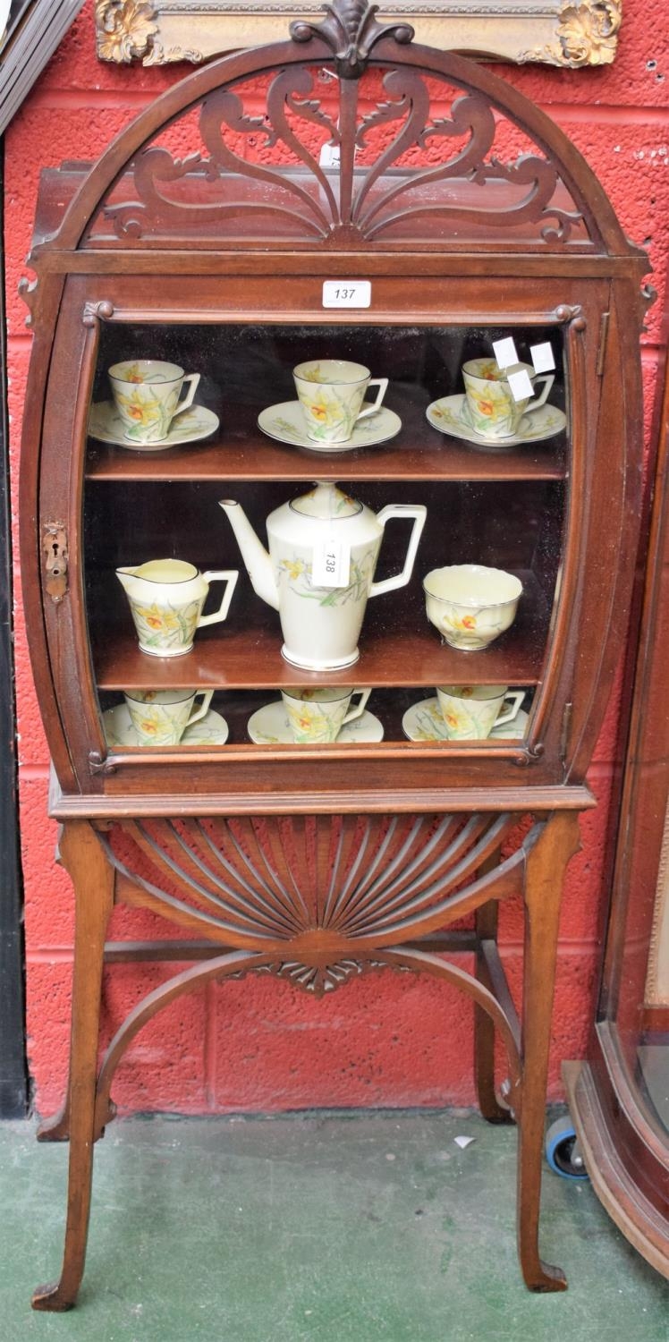 A 20th century mahogany display cabinet, rectangular top crested by a stylised domed anthemion above a glazed door enclosing a pair of adjustable shelves, radiating apron, tapered legs,. 131cm high