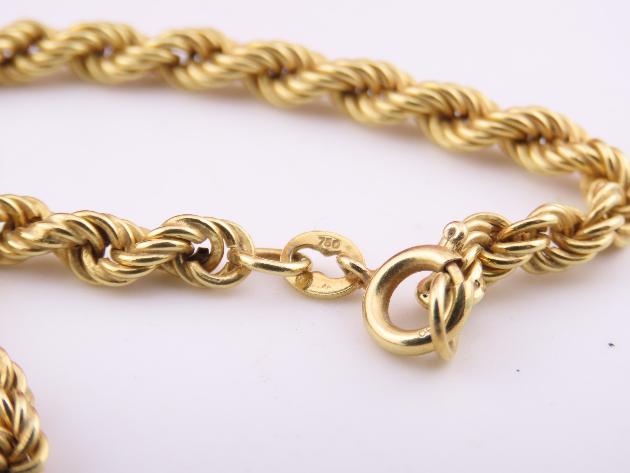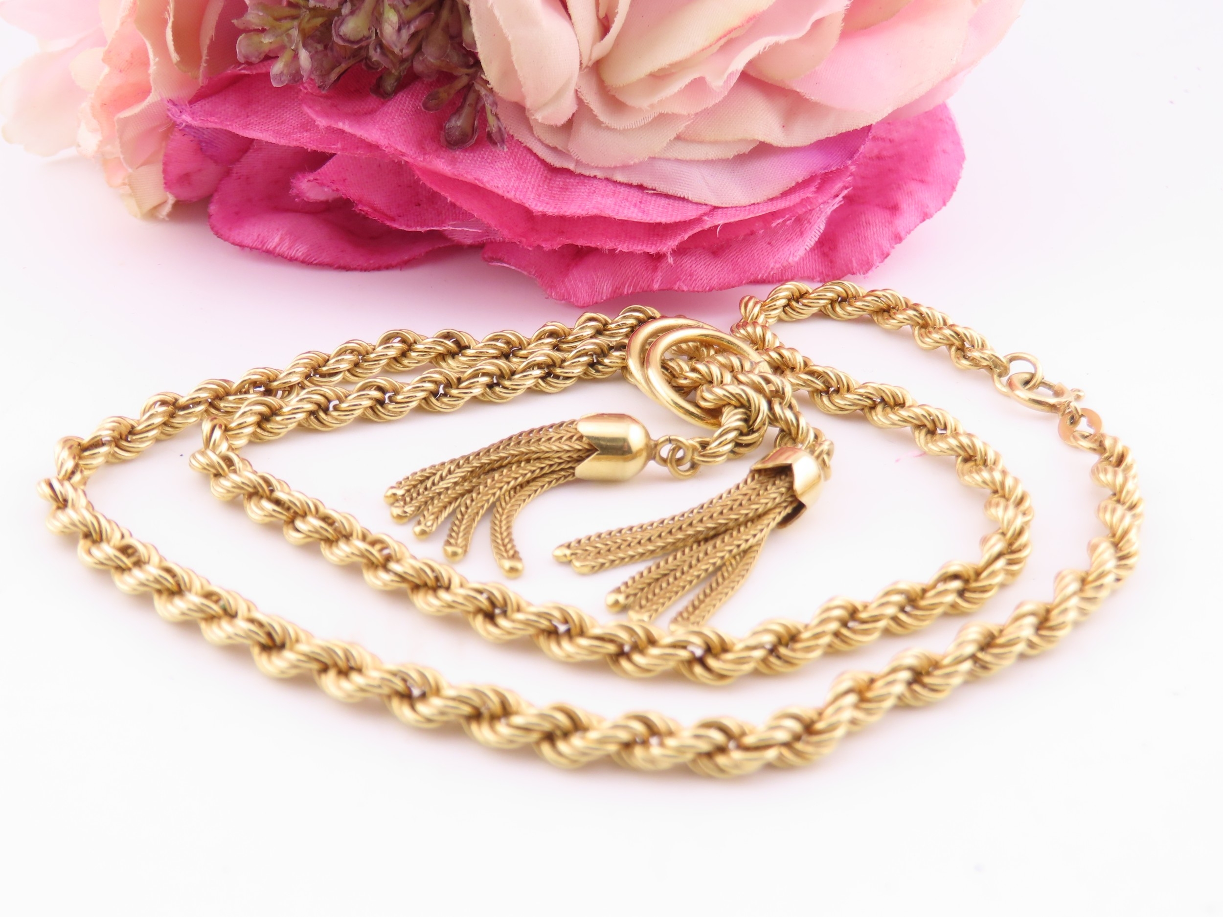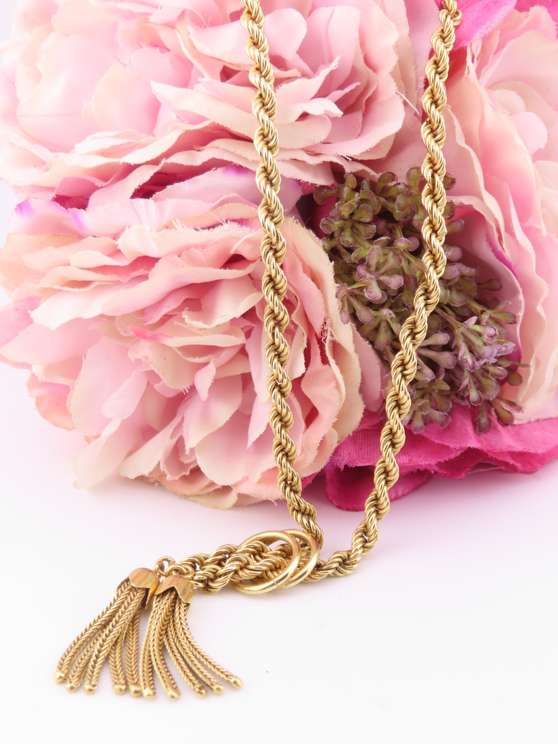 An 18ct gold rope twist necklace suspending a tassel drop. Gross weight 20.7 grams.
