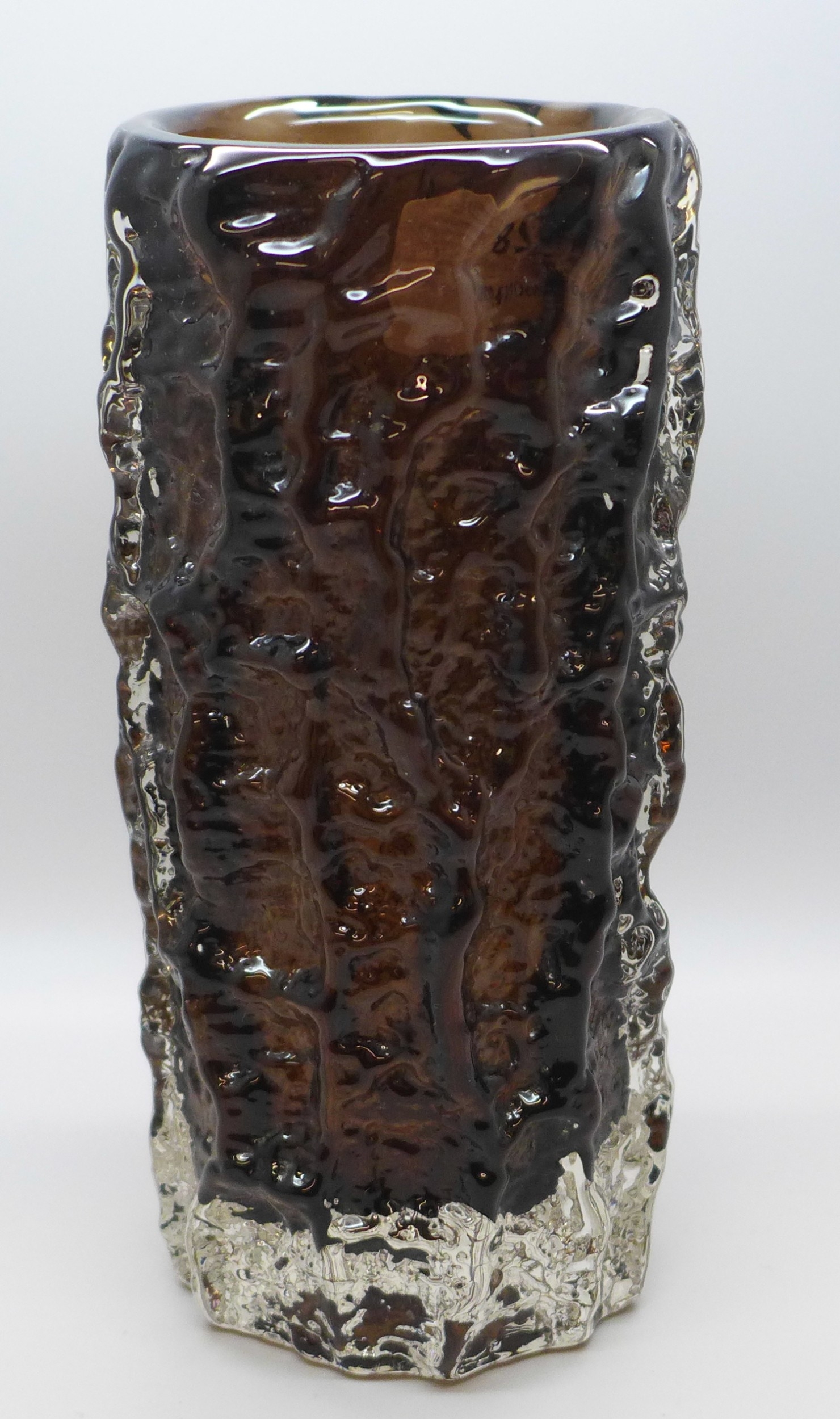 A Whitefriars glass bark pattern vase, Geoffrey Baxter, 18cm