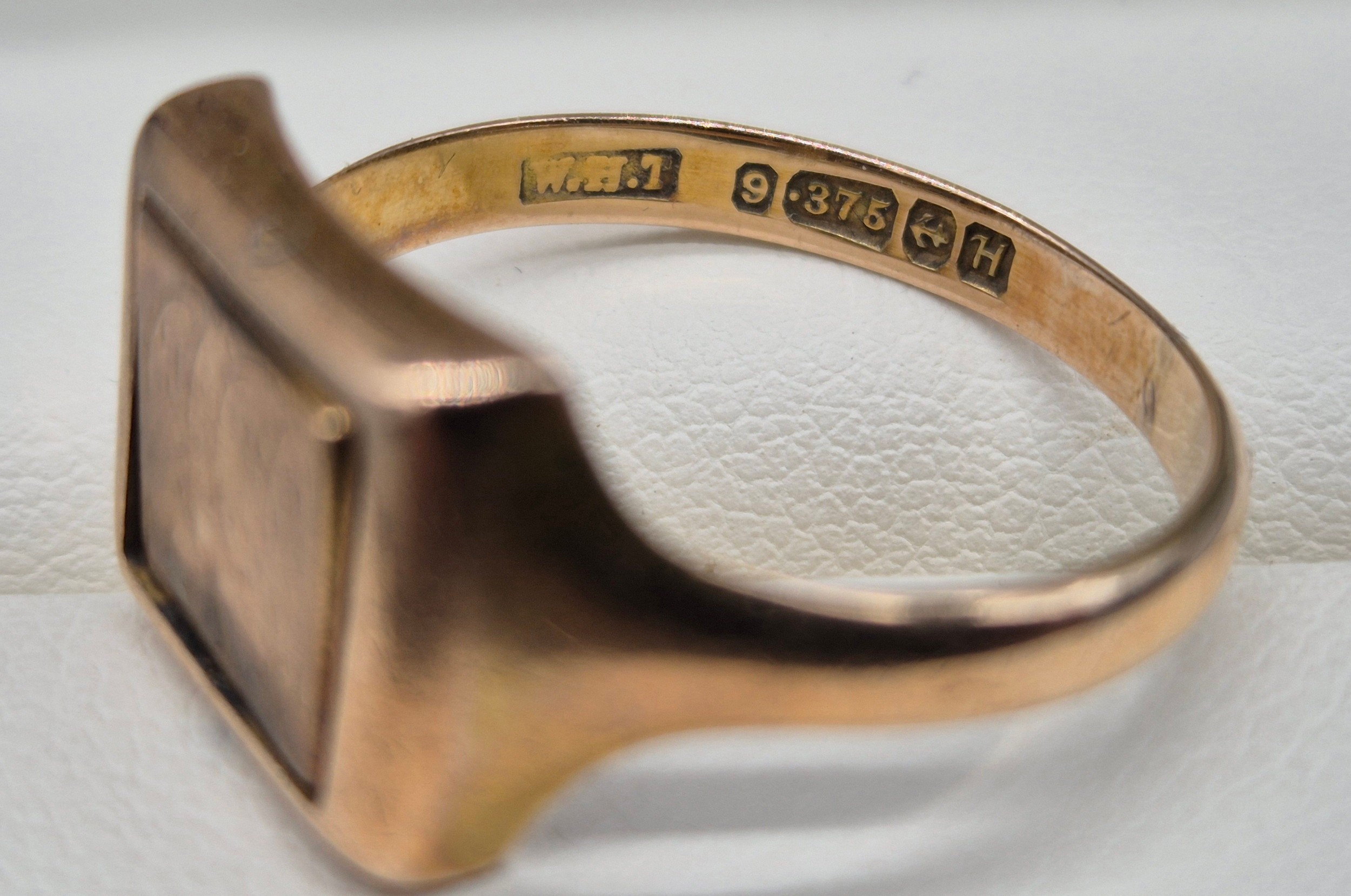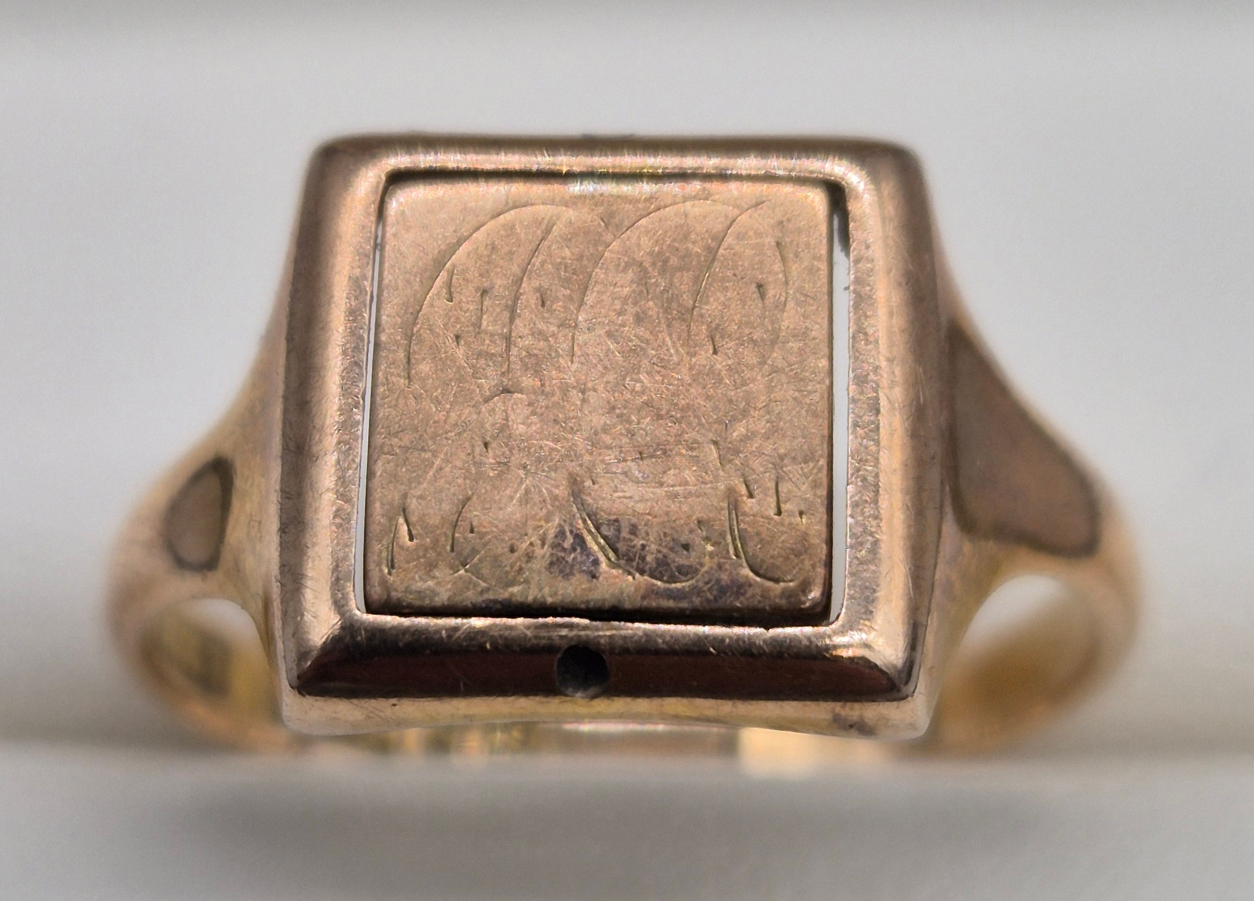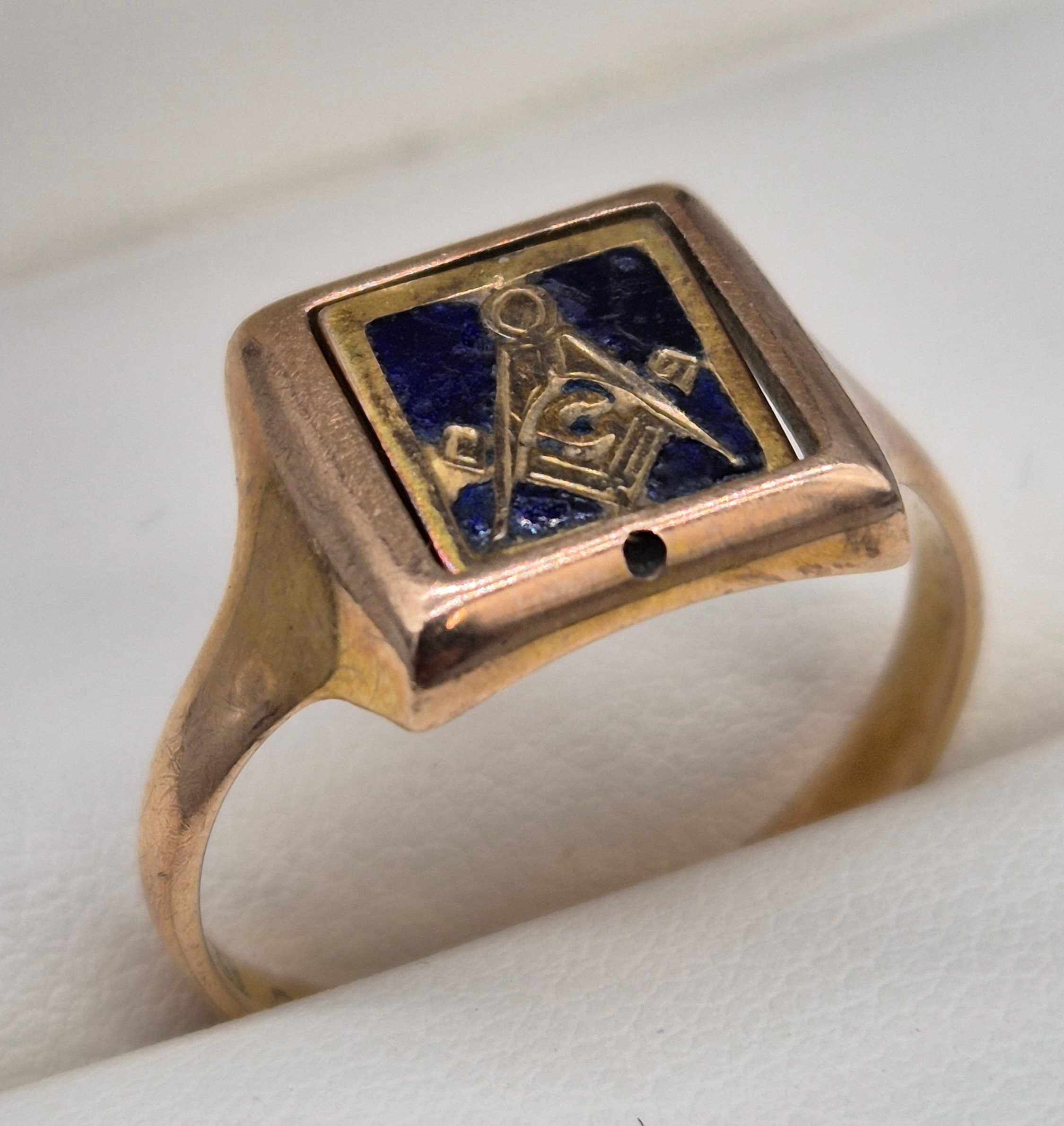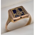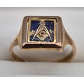 Birmingham 9ct yellow gold and enamel Masonic swivel ring. [Ring size R] [3.97Grams]