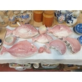 Quantity of Portuguese "Bordallo Pinheiro" Pink Fish Shaped China Including Tureens & Serving Dishes.