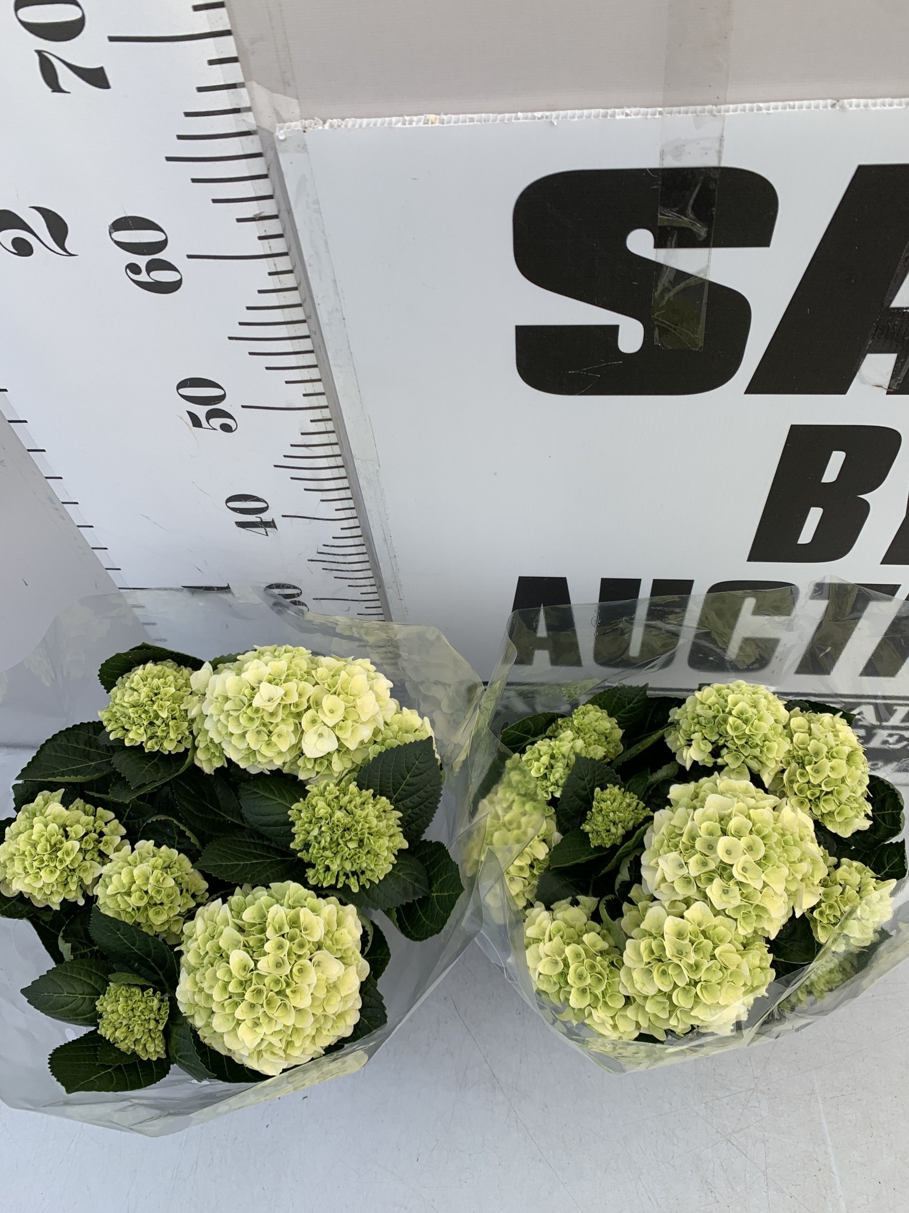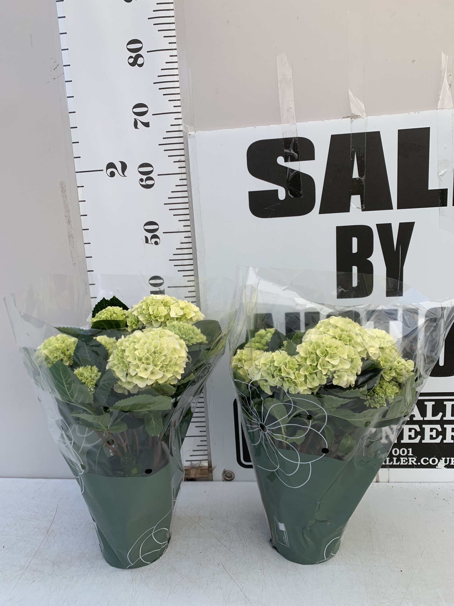 TWO LARGE HYDRANGEA HYPE MOPHEADS - WHITE IN 1.5 LTR POTS. APPROX 40-50CM TALL, TO BE SOLD FOR THE PAIR