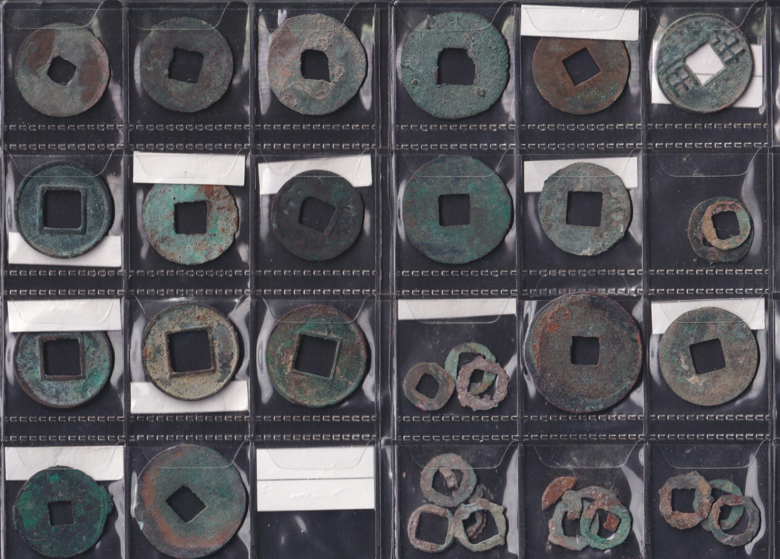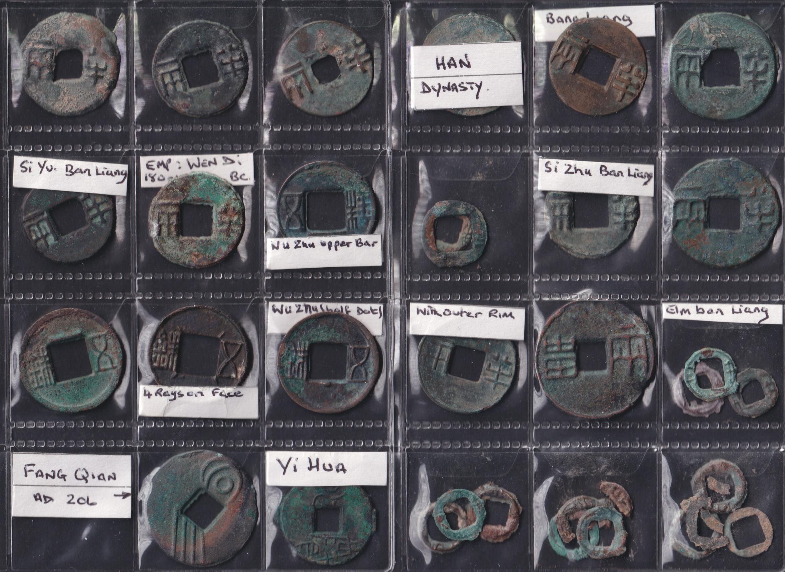 Han Dynasty Ban Liang Coins, a group of 32 Ban Liang coins of the Han dynasty. Includes Si Zhu, Si Yu, Wu Zhu, Fang Qian & Yi Hua. Dates circa 200 BC–200 AD. Grades Poor–GF.