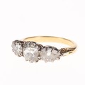 Old Cut Diamond Trilogy Gold Ring, est. 1.75ct