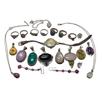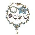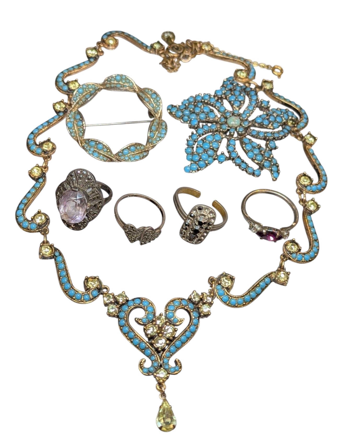 the costume jewellery includes a "SPHINX" signed blue glass set brooch and a broken blue glass and yellow paste stone necklace, a/f