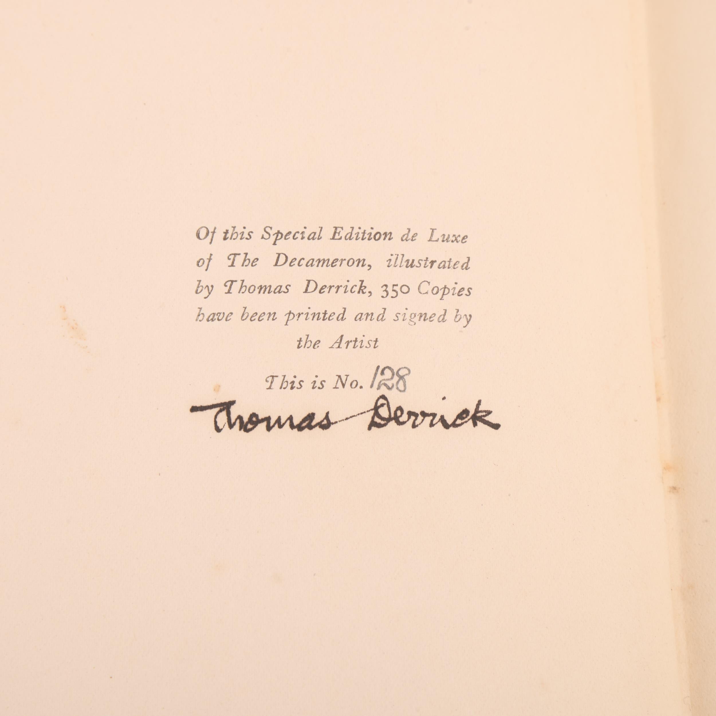 The Decameron of Giovanni Boccaccio, 2 copies, 1920 edition with illustrations by Thomas Derrick no 128 of 350 signed by the artist, and another copy published by George Routledge & Sons, London, translated by J. M. Rigg