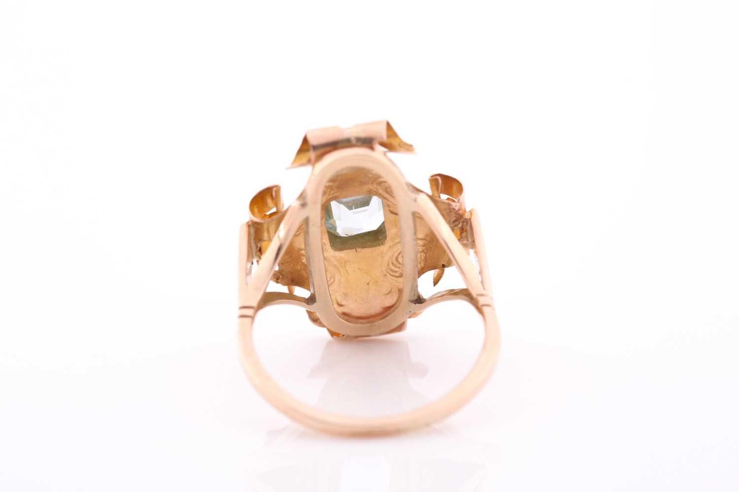 A late 19th century yellow metal and aquamarine ring, the or...