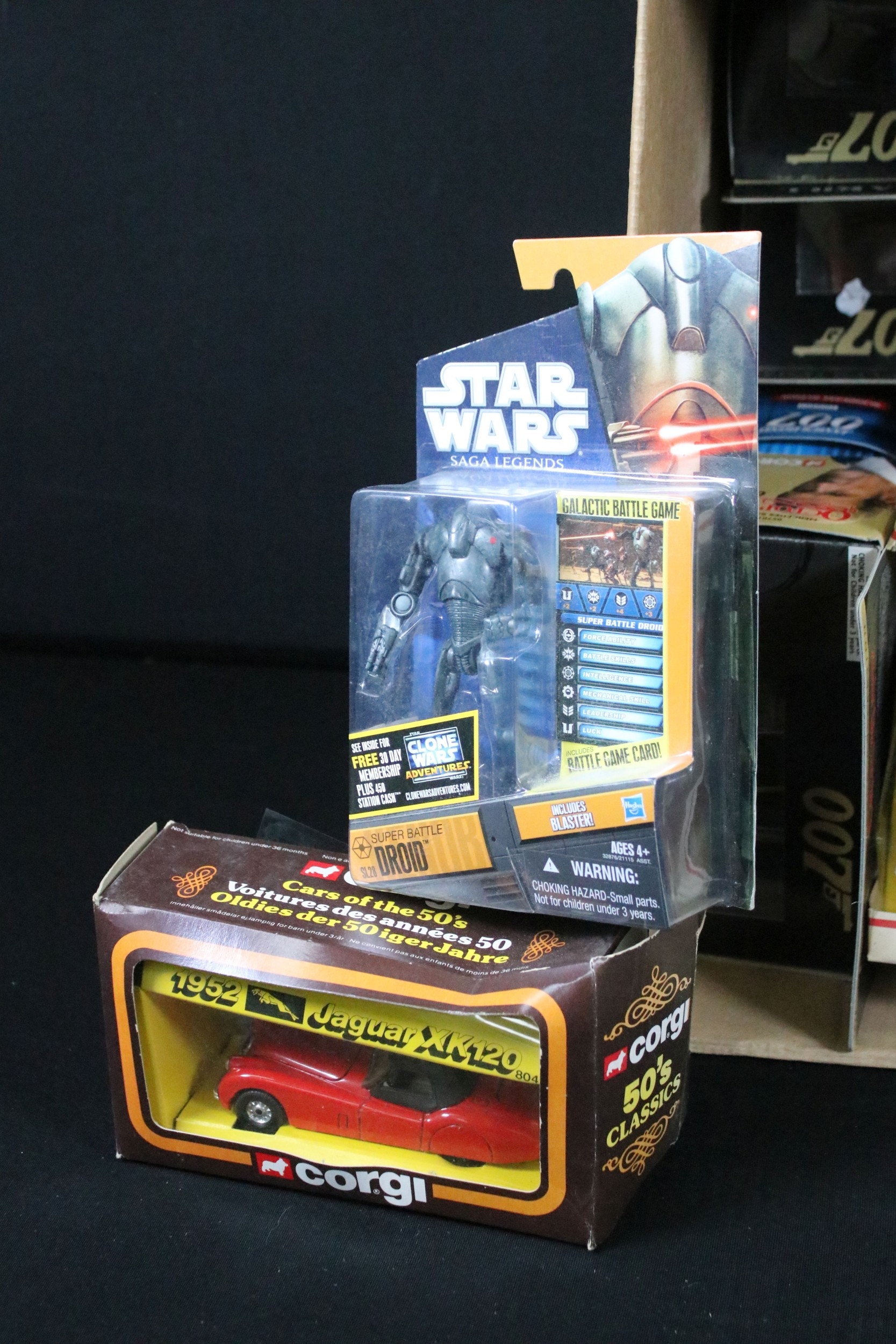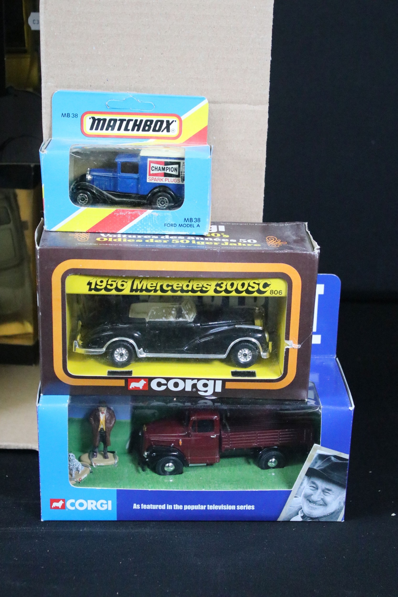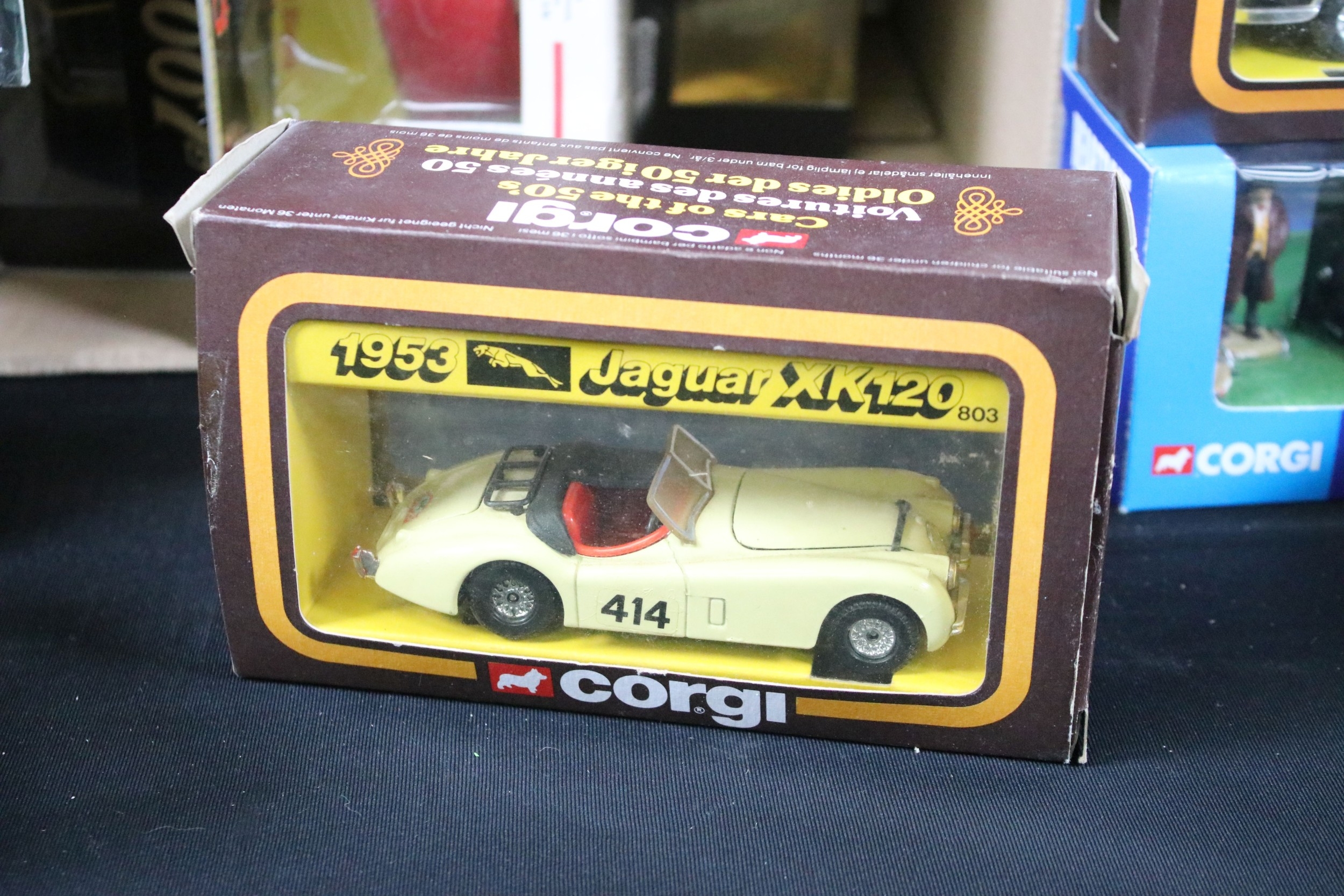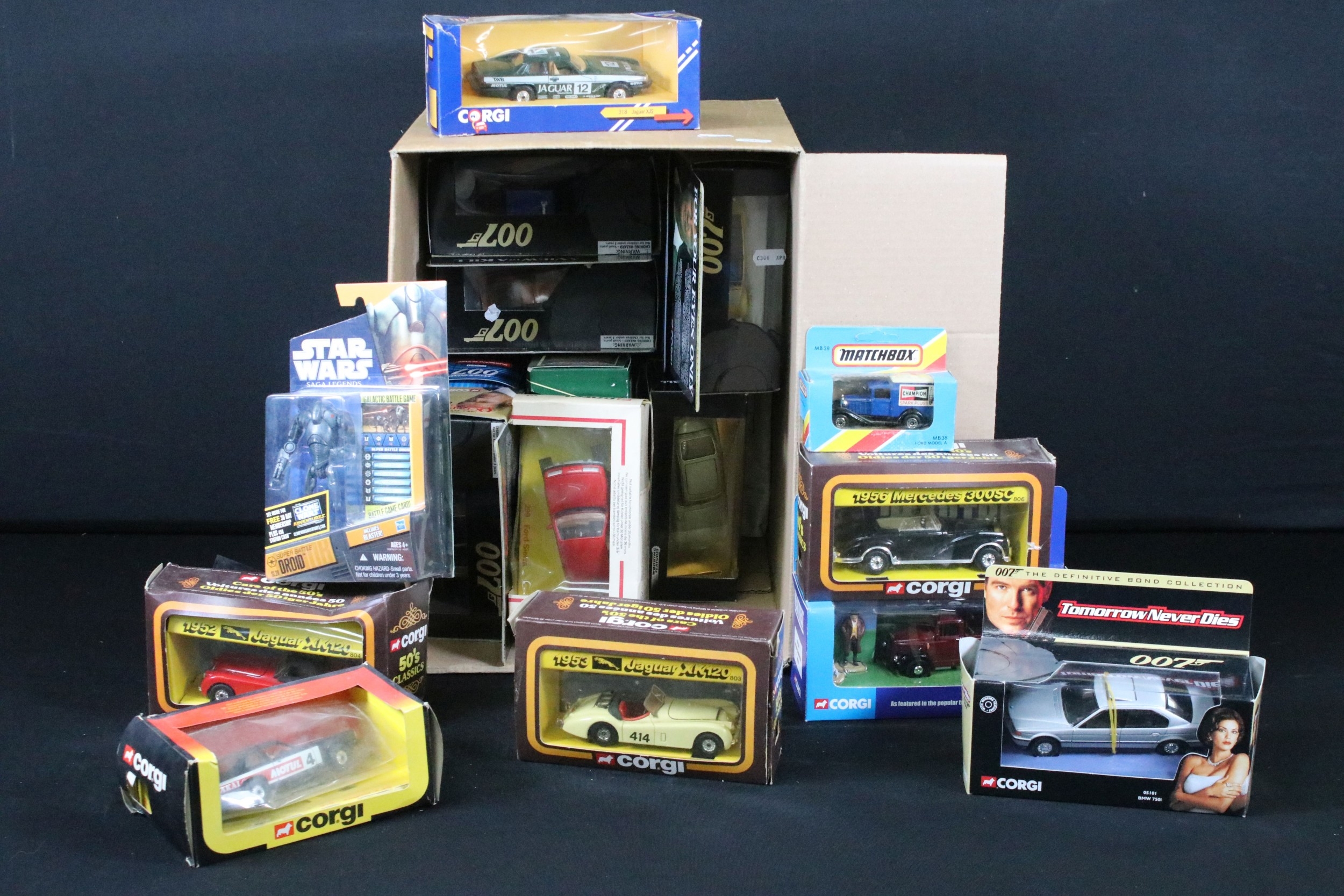 32 Boxed / cased diecast models to include 10 x Corgi James Bond 007 examples including The Definitive Bond Collection and James Bond 40th Anniversary, Corgi CC07301 Heartbeat Morris Commercial Truck, 6 x Corgi Noddy In Toyland, Corgi Vanguards VA09303, Matchbox MB38 Ford Model A, Corgi 319 Jaguar XJS, etc, together with a quantity of playworn diecast models to include Corgi and Corgi Juniors examples, boxed diecast ex, boxes vary in condition, but mainly gd-vg overall (2 Boxes)