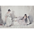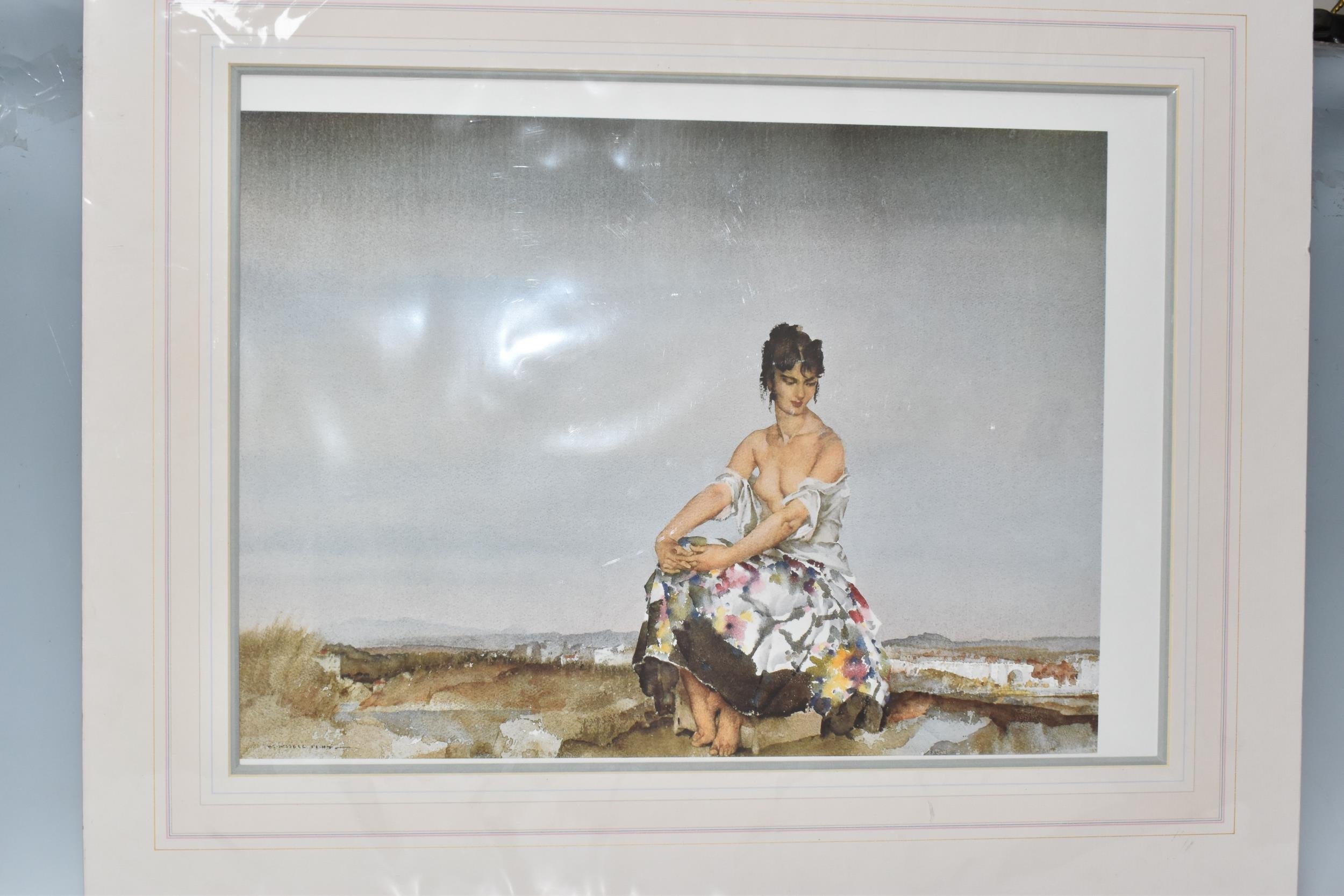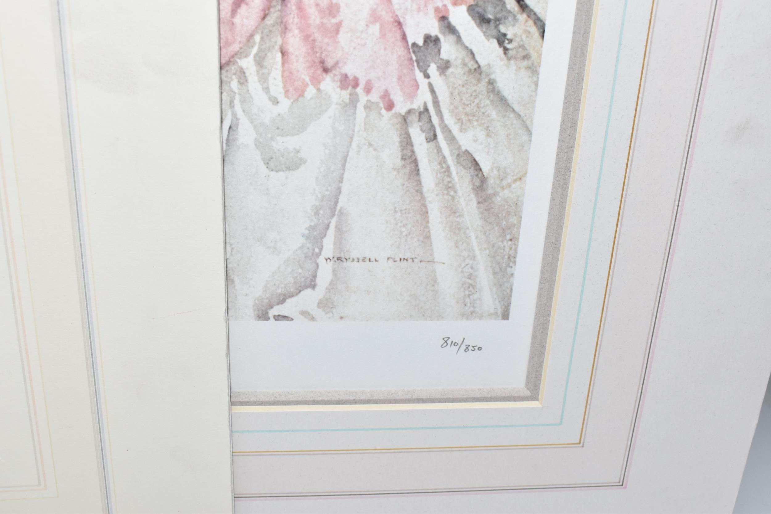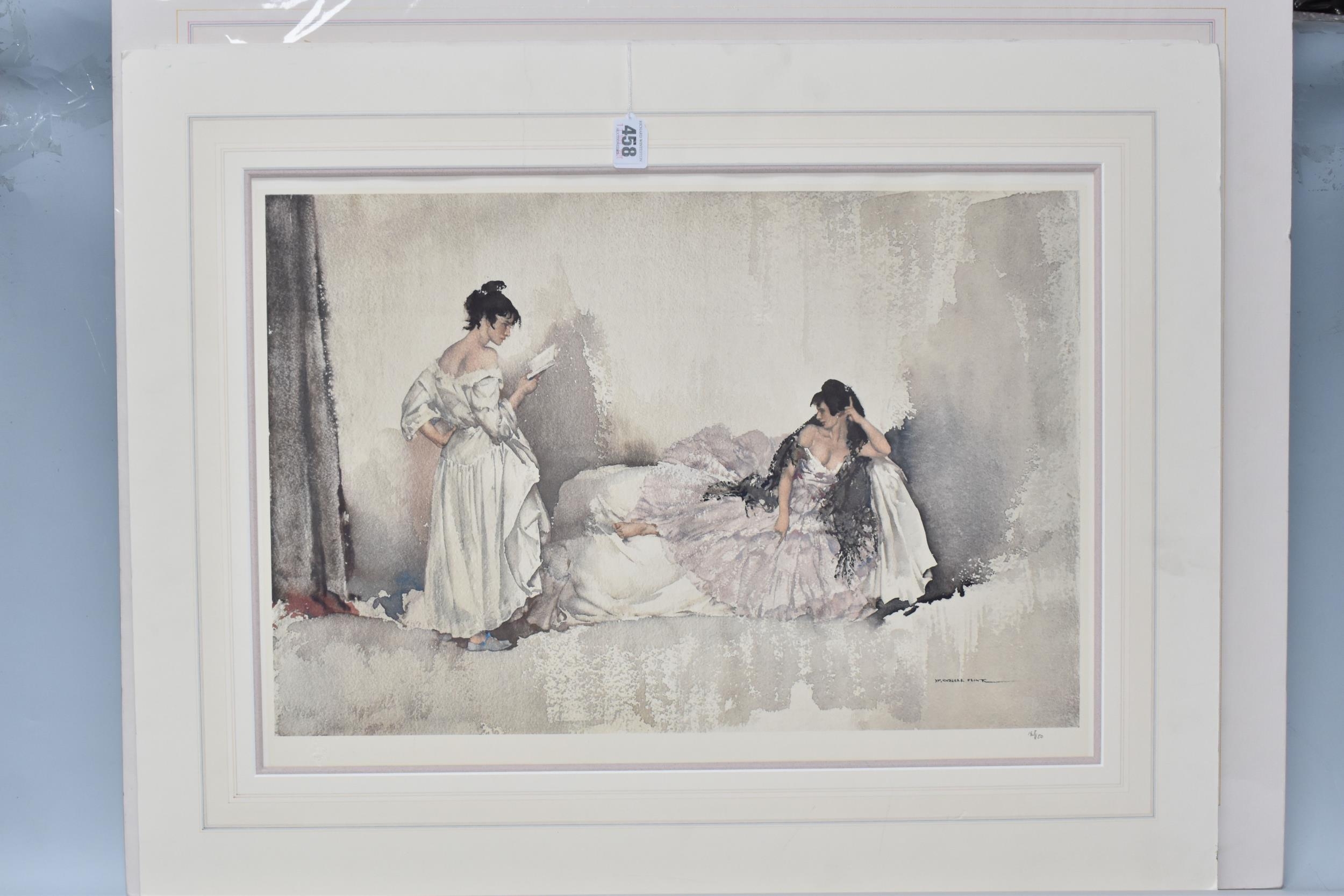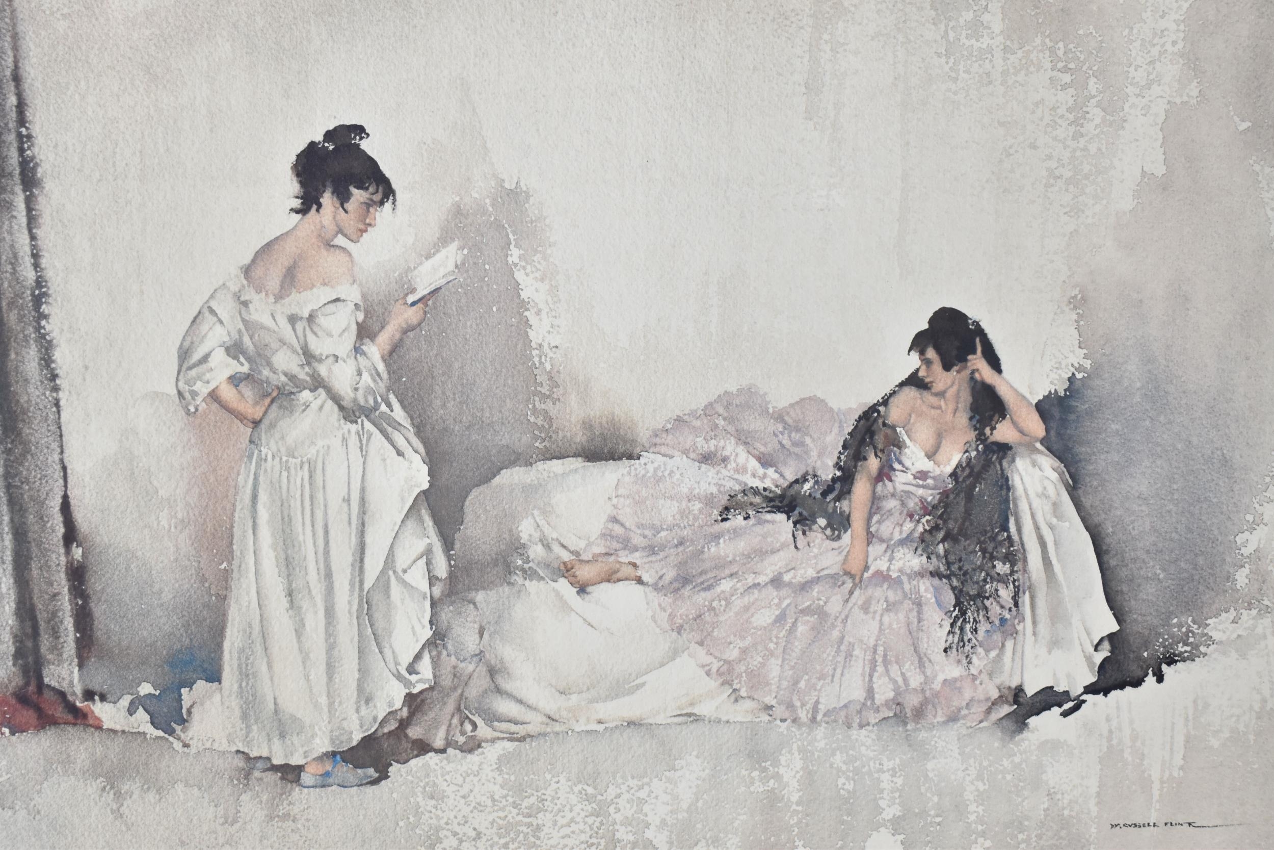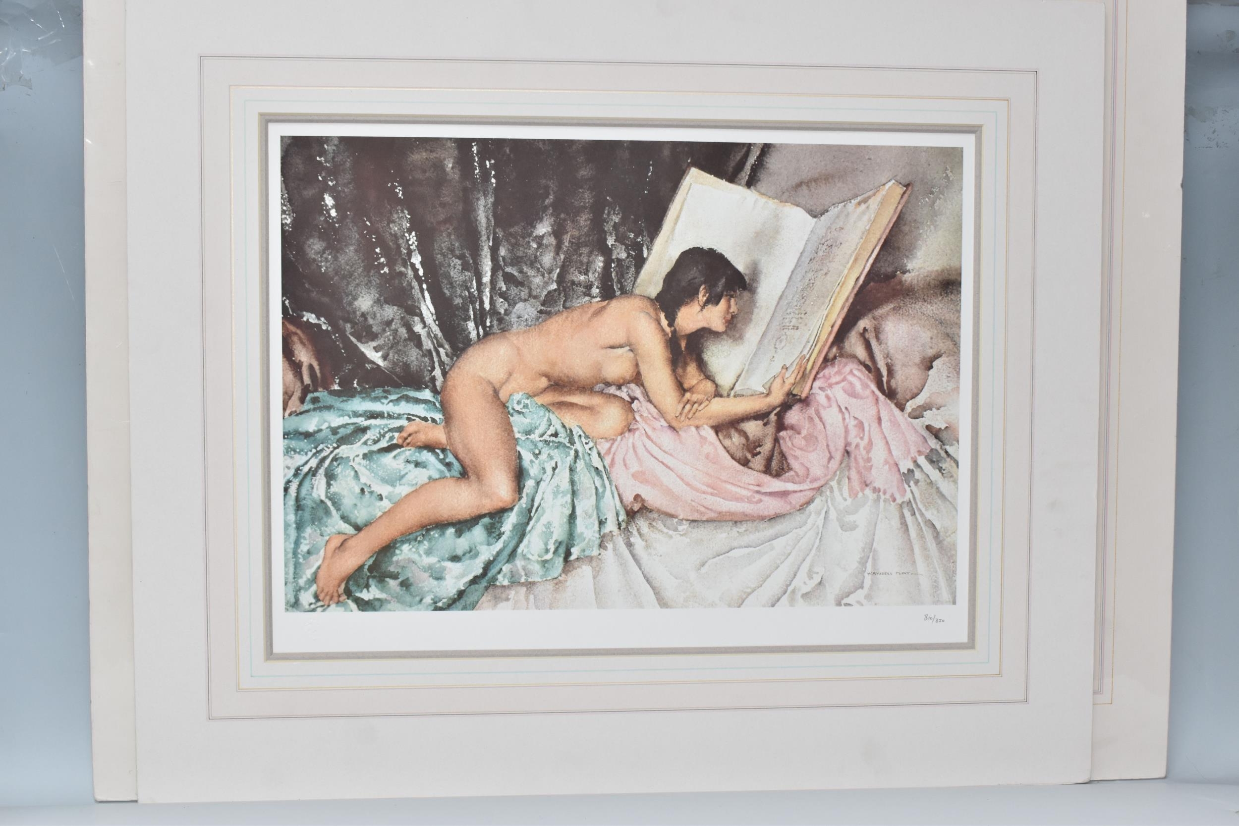 WILLIAM RUSSELL FLINT (1880-1969) THREE UNSIGNED LIMITED EDITION PRINTS, comprising 'Janelle and the Volume of Treasures', approximate size 39cm x 53cm, 'Memorising Act II' has previous mount marks to the margins, together with 'Mademoiselle Sophie' the print has slipped in the mount, Condition Report: bumps and marks to the mounts