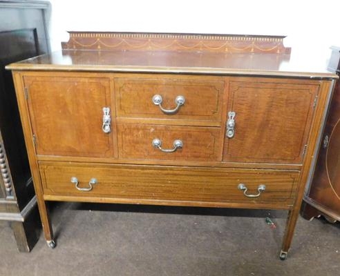 Vintage inlaid cabinet on casters