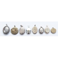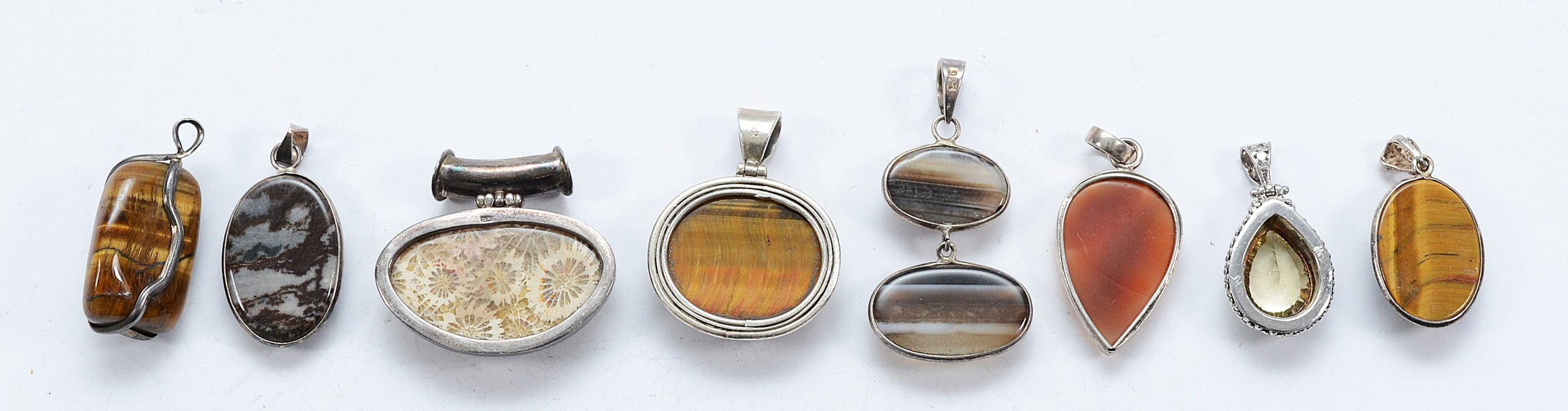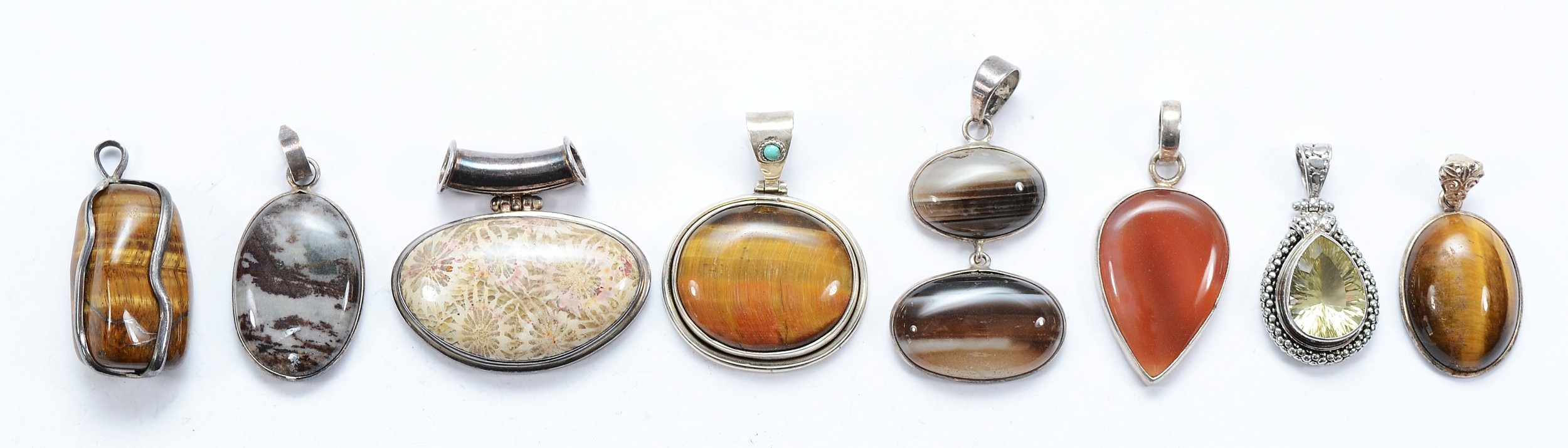 Seven 925 silver gemset pendants, and an unmarked silver pendant, 87g