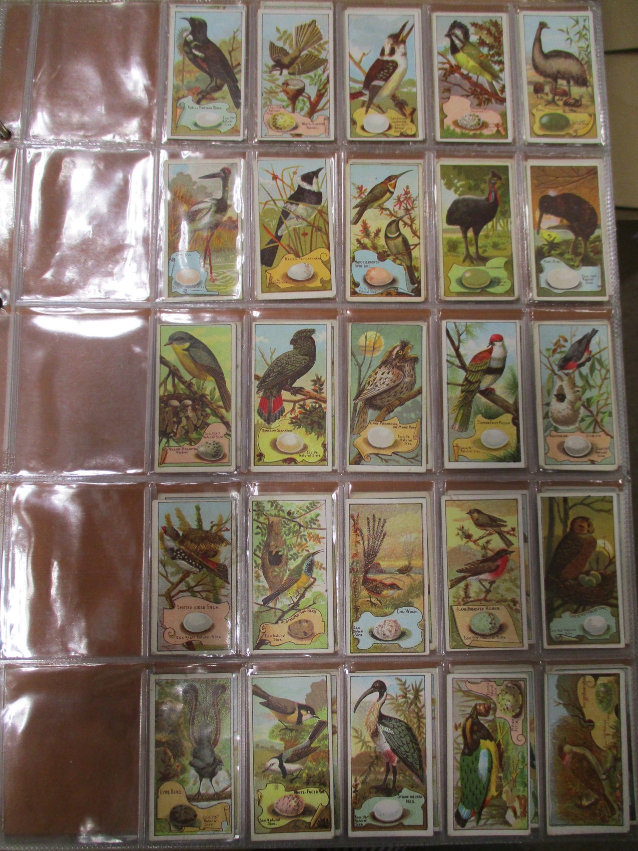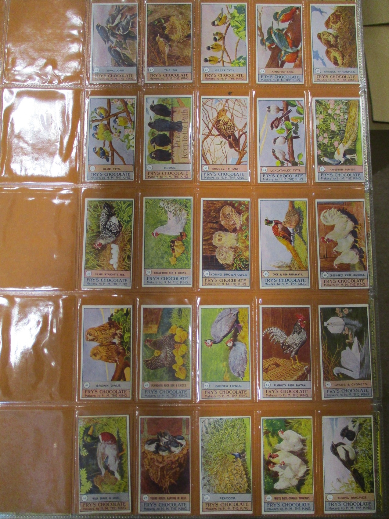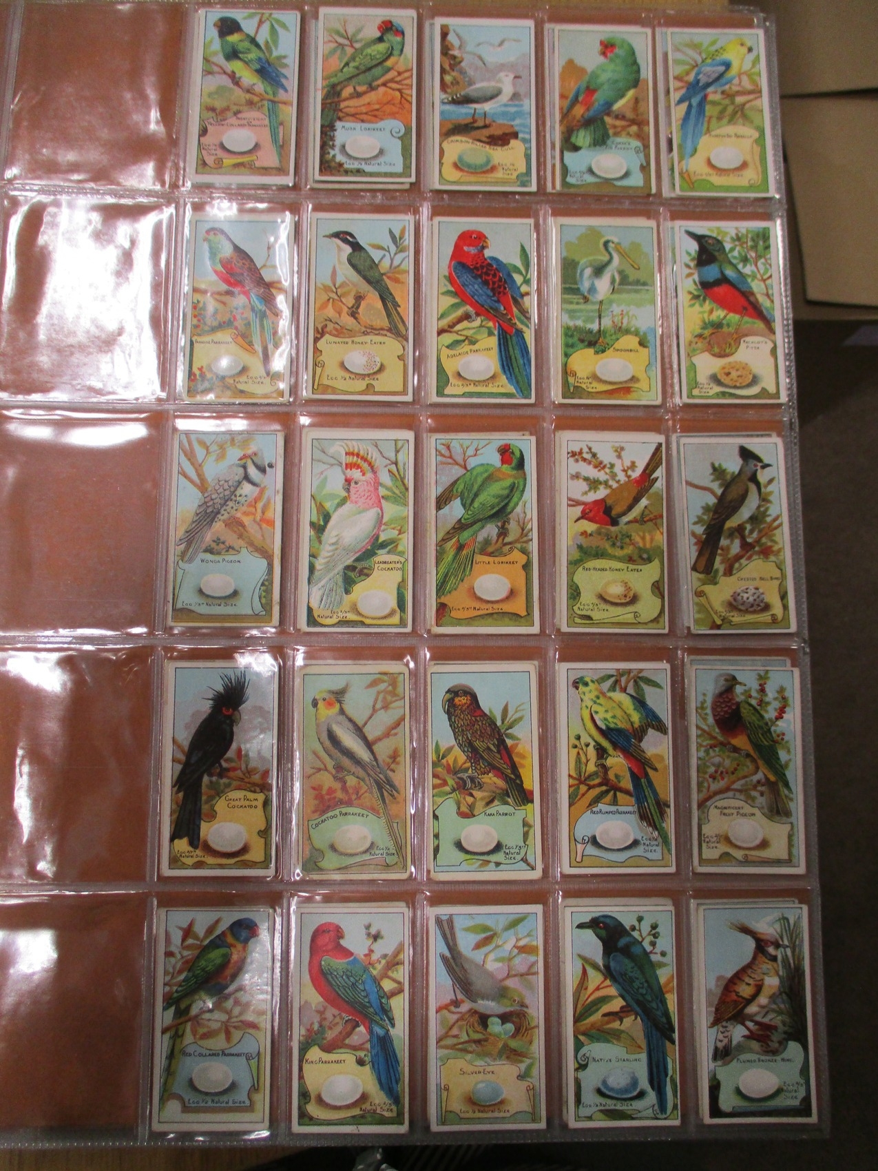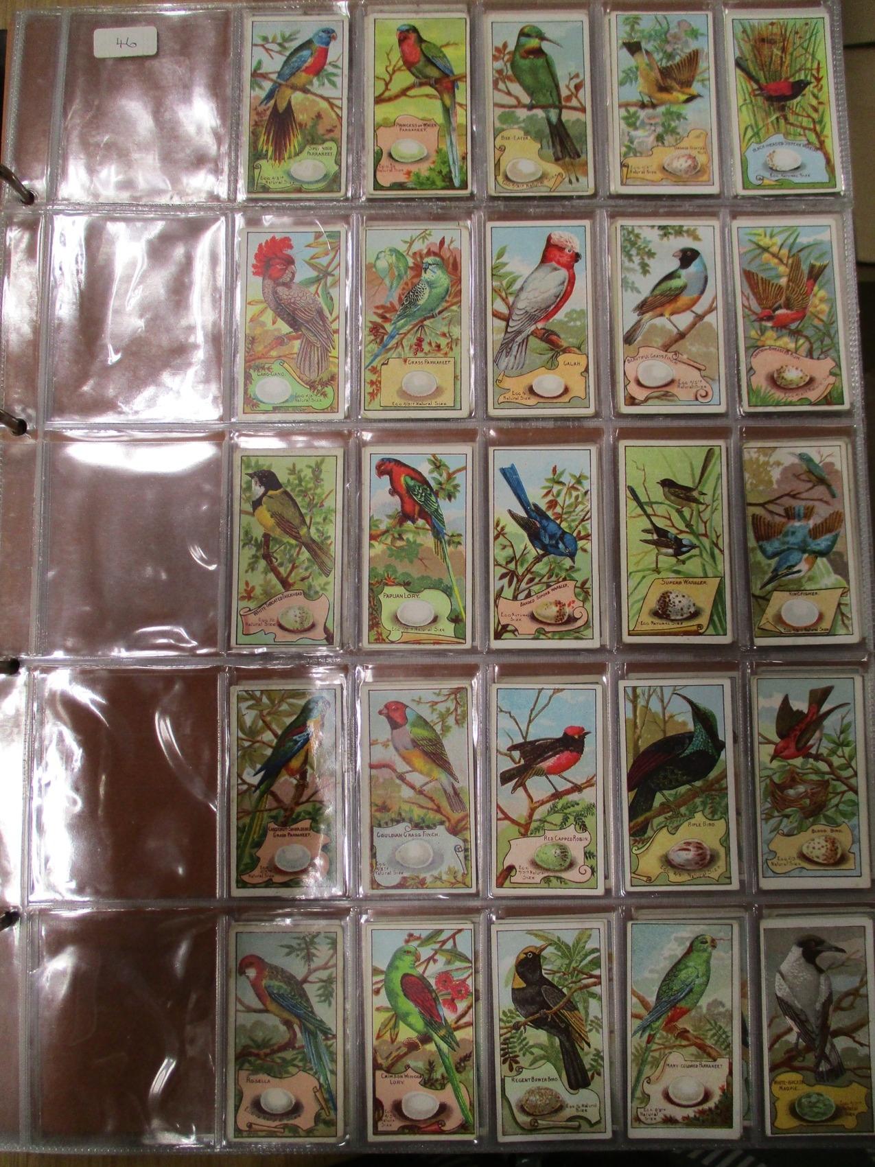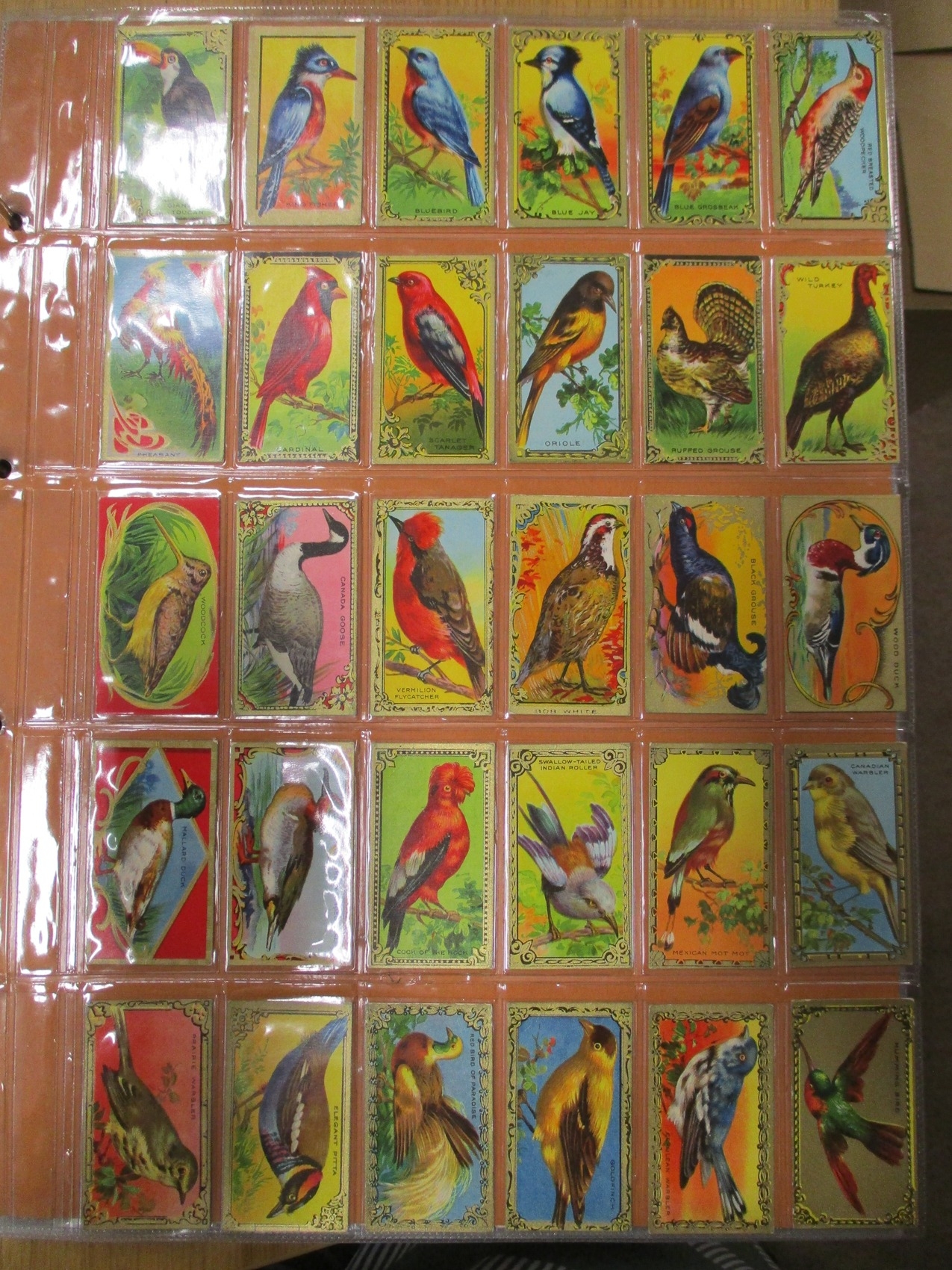 Collection in large album with complete sets including Fry's Birds & Poultry, Imperial Tobacco Co Game Bird Series, Players Curious Beaks, Ruddell Rod & Gun, Wills Birds of Australasia, Ruby Queen Birds Of The East, etc, generally good plus. Qty 1,000 approx. (V)
