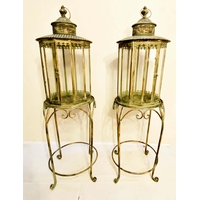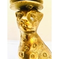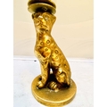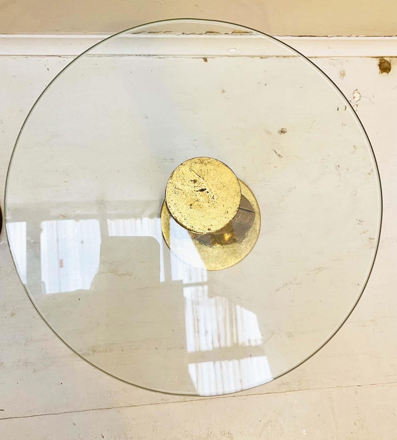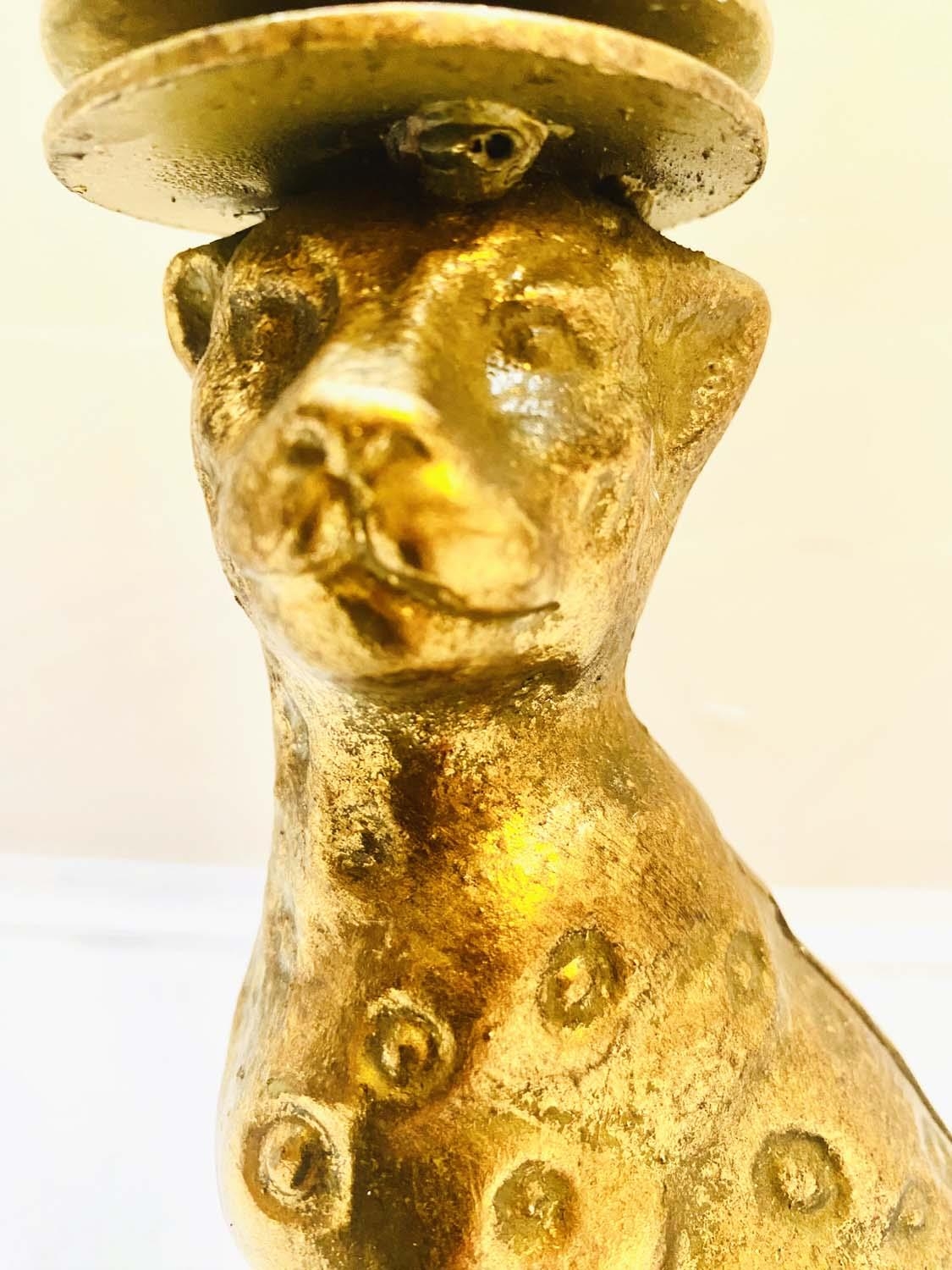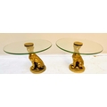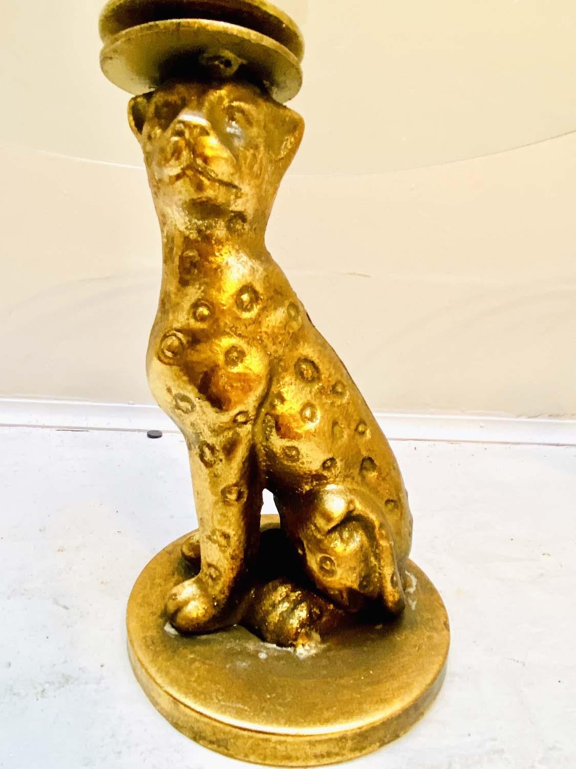 LEOPARD FIGURALTAZZAS, a pair, 21cm H x 30cm diam., sculptural seated leopard supports, gilt metal, circular glass tops. (2)
