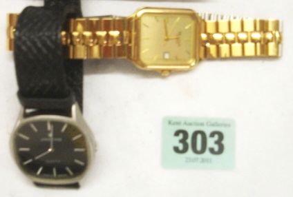 As New Gents Bulovar Gilt Evening Watch with gilded dial, date aperture, sweep second hand & Junghans Quartz Watch with black dial, baton markers (2)
