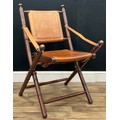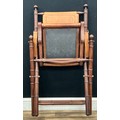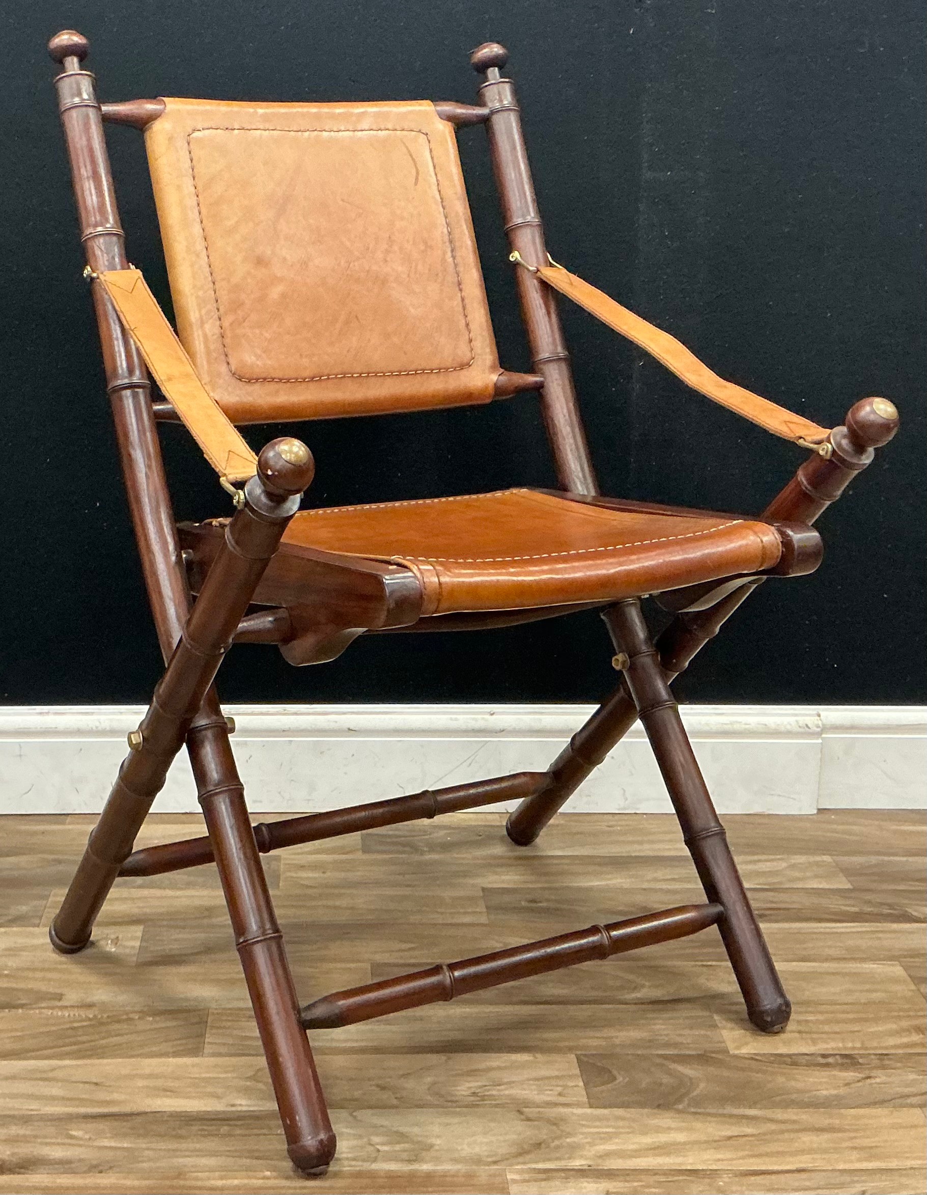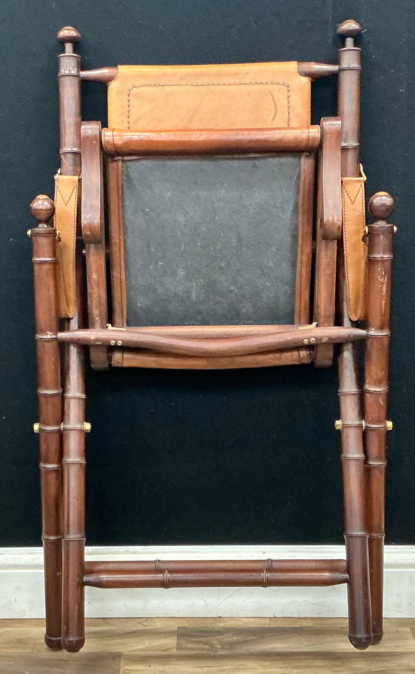 A contemporary campaign chair, bamboo effect stretchers and brass mounts, leather canvas, 87cm high.