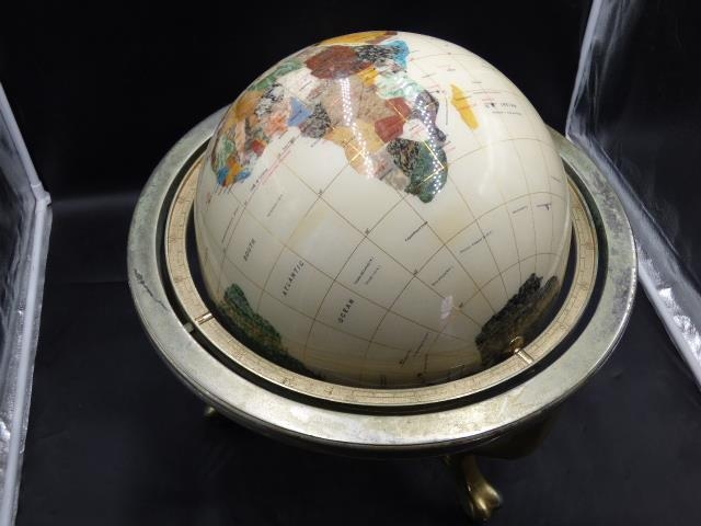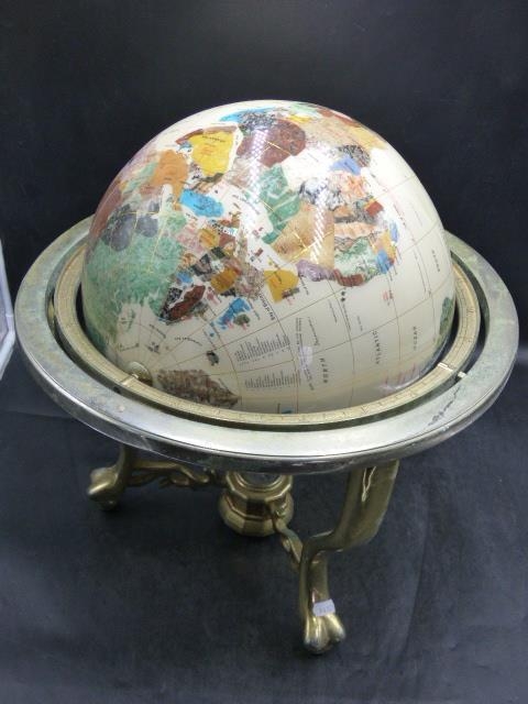 Large Gemstone Globe on Brass Mount with Compass (16")