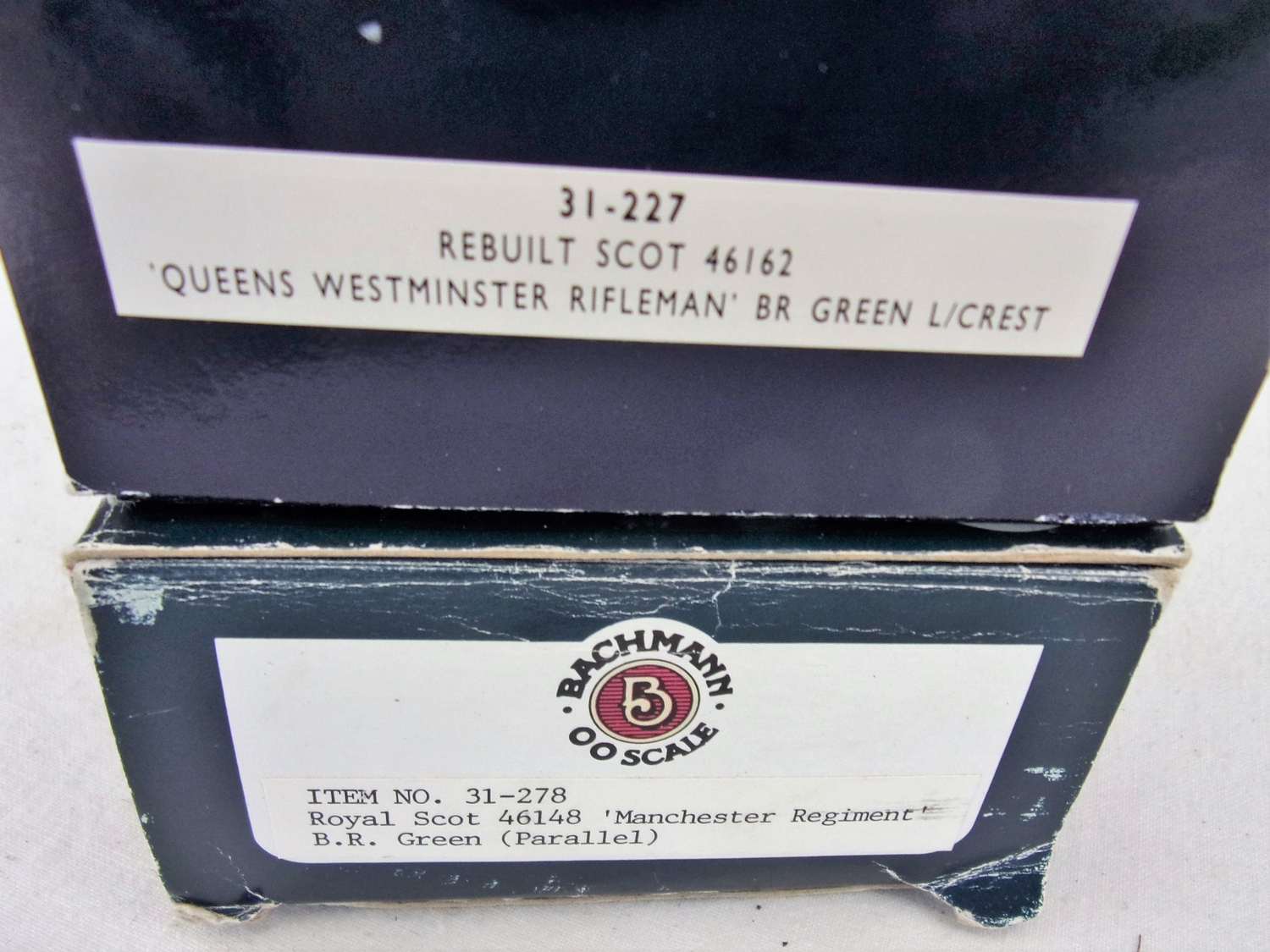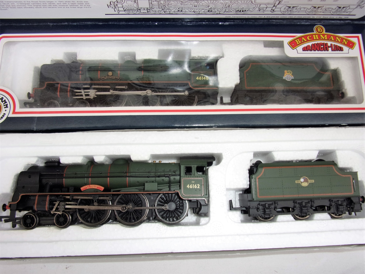 BACHMANN 31-227 REBUILT SCOT 46162 QUEENS WESTMINSTER RIFLEMAN BR GREEN L/CREST BOXED & 46148 THE MANCHESTER REGIMENT FOWLER ROYAL SCOT