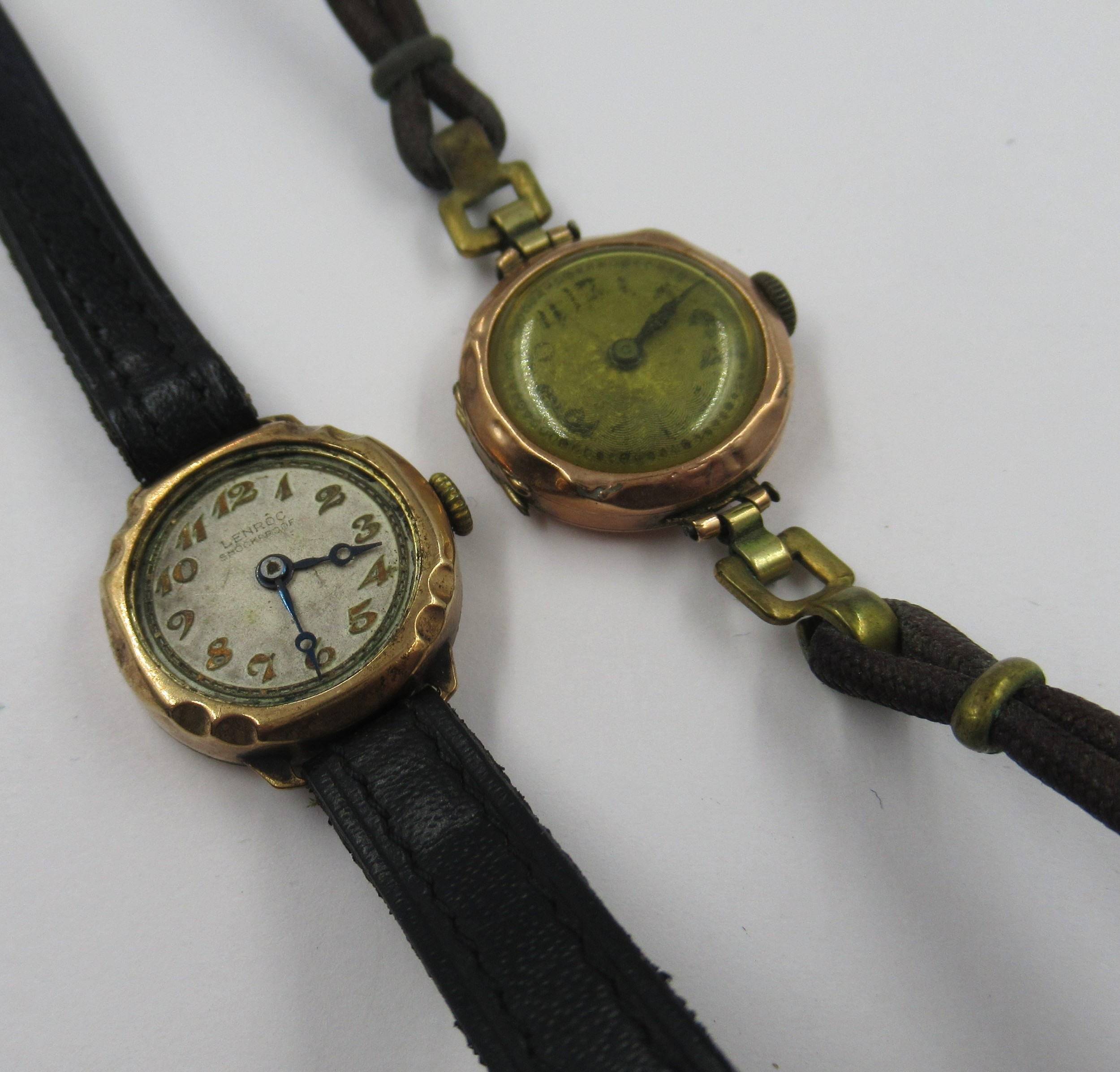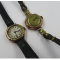 9ct Gold ladies wristwatch with leather strap, together with a similar ladies wristwatch