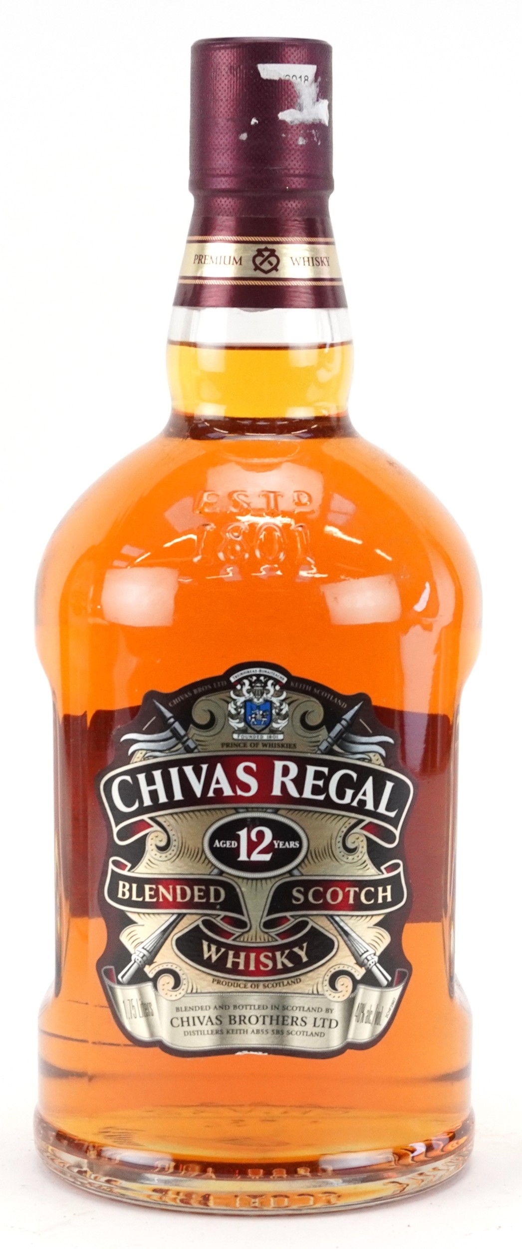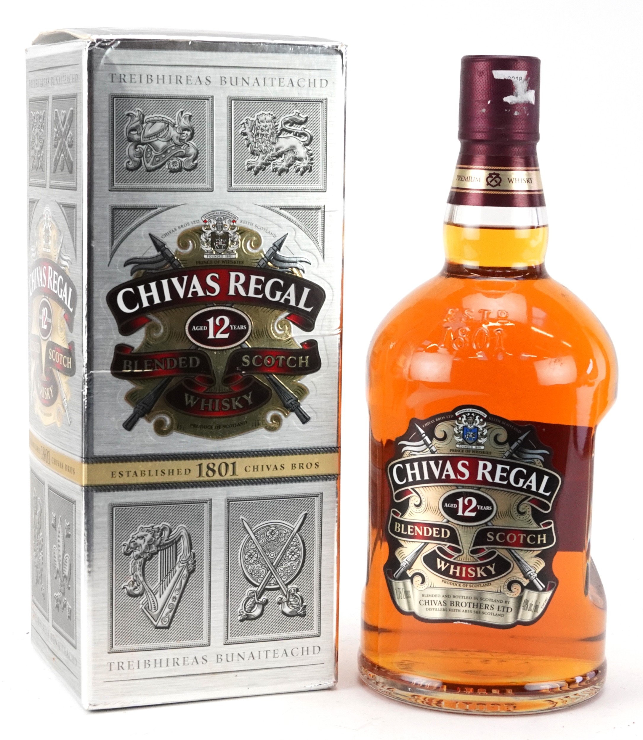 A 1.75 litre bottle of 12 Year Chivas Regal Blended Scotch whisky with box.