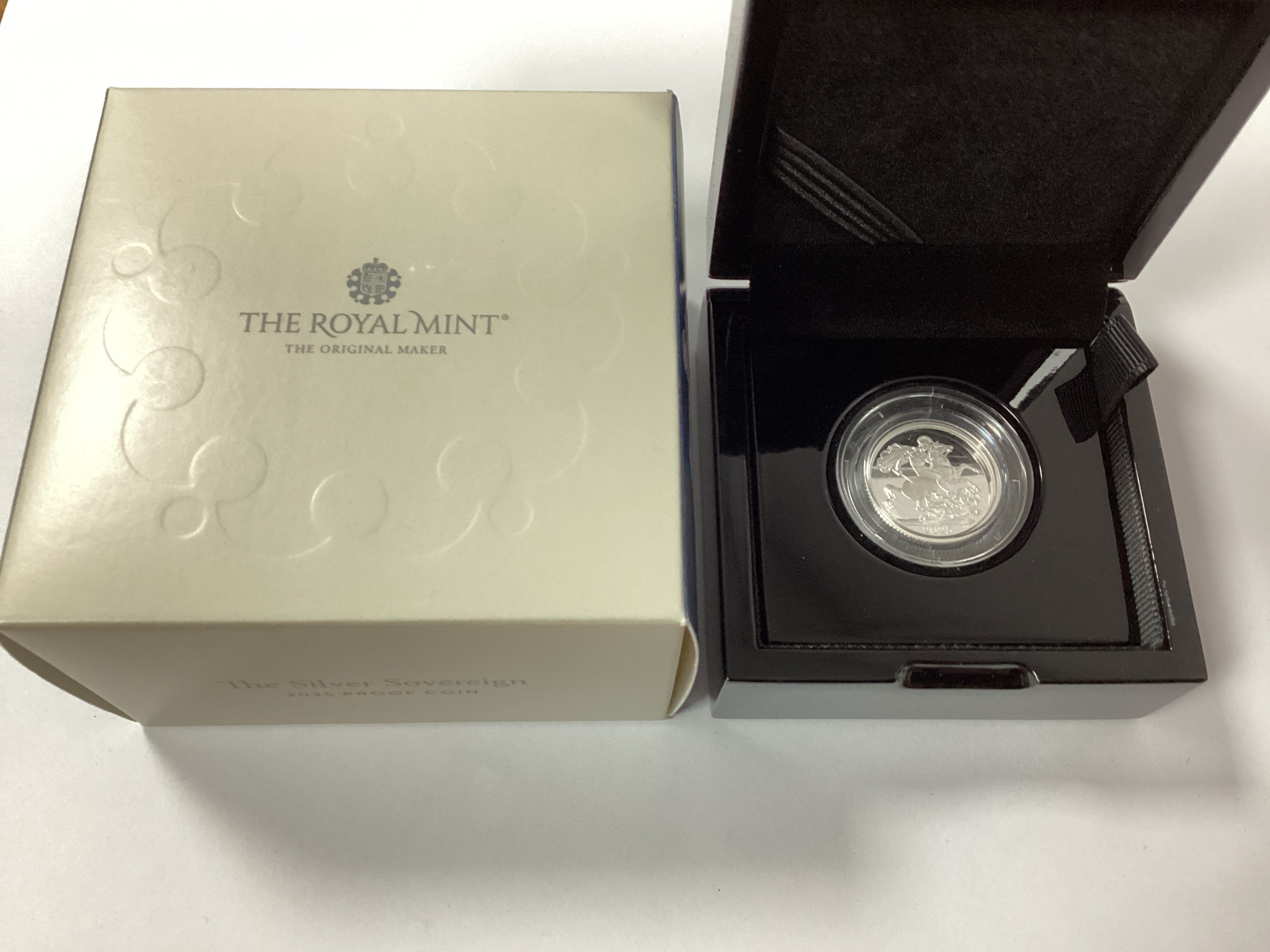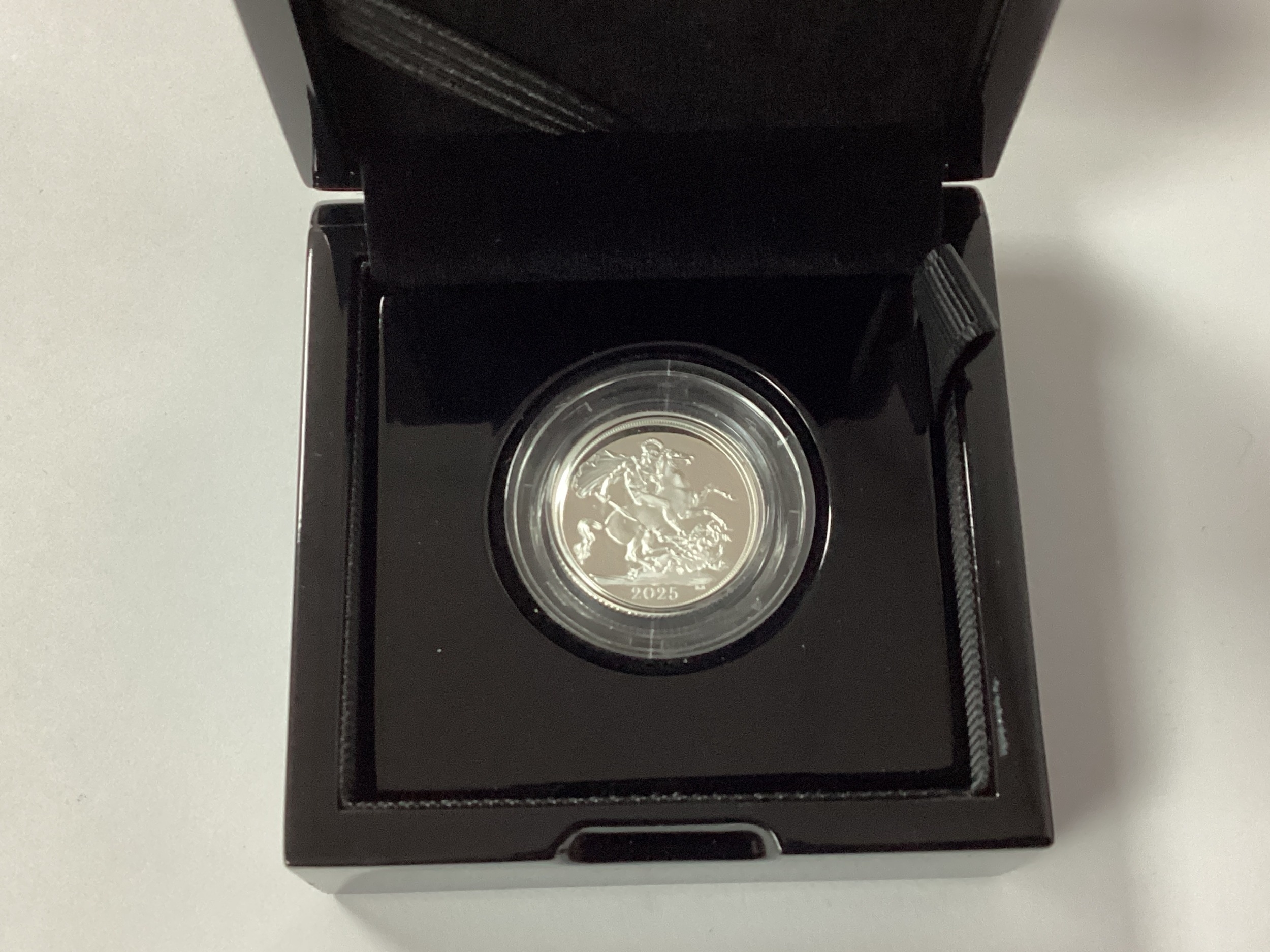 2025 Charles III Royal Mint Silver Proof Sovereign, cased with a certificate of authenticity.