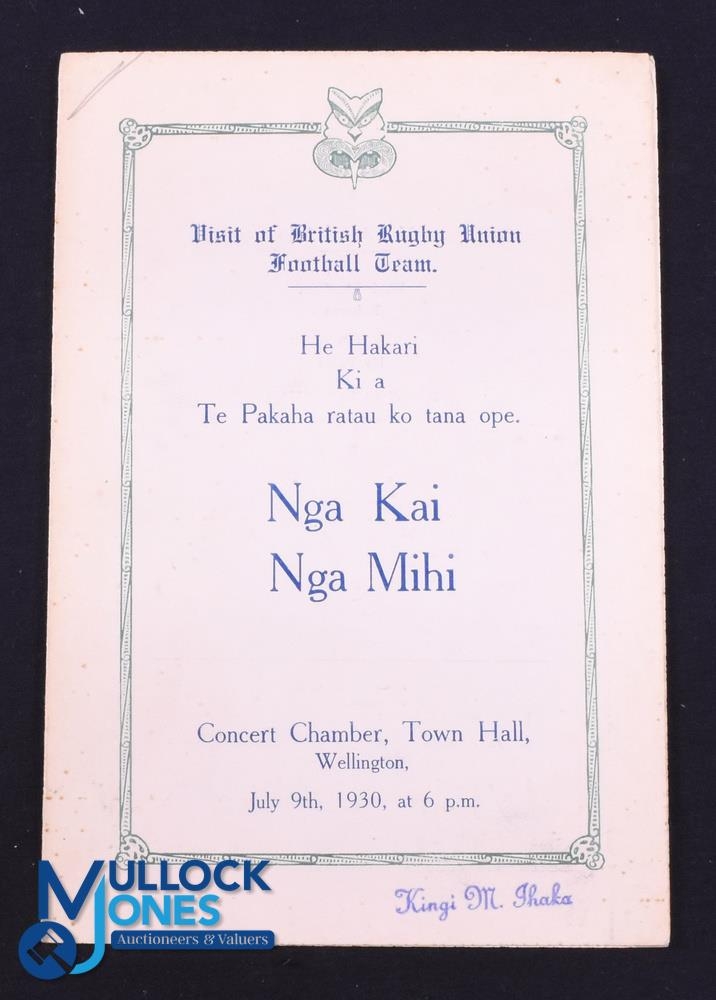Rare 1930 British and I Lions Menu: Dinner following the Maori game at Wellington (as lot 387 but here unsigned and v clean). Part of the WGM Bonner 1930 BRFT Lions Collection
