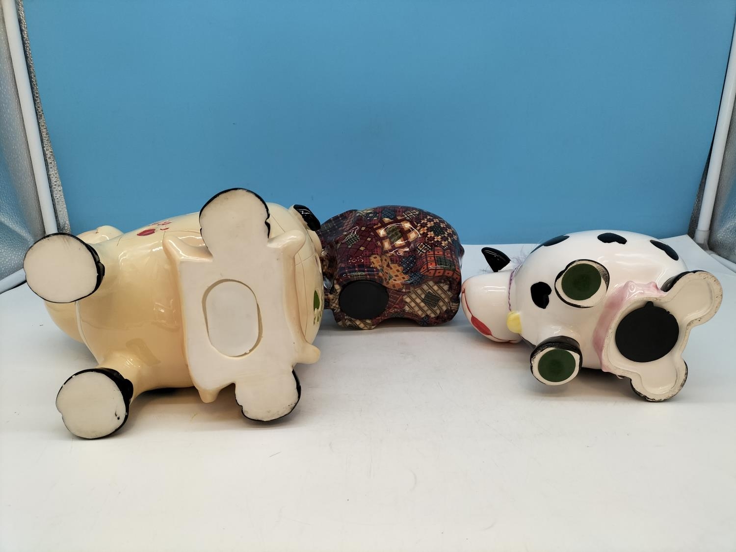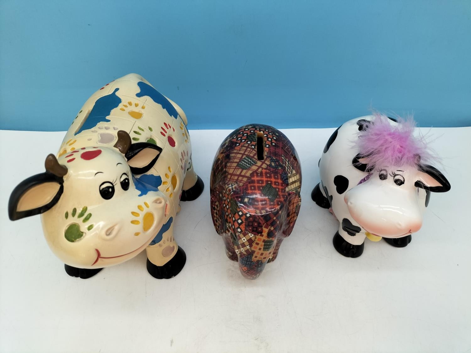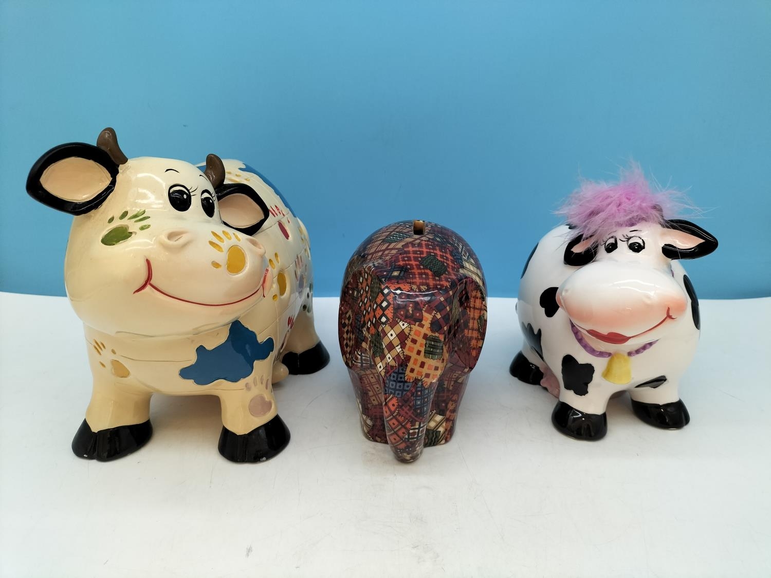 Money Boxes with Stoppers (3) to include Cows (2) and Elephant. Largest