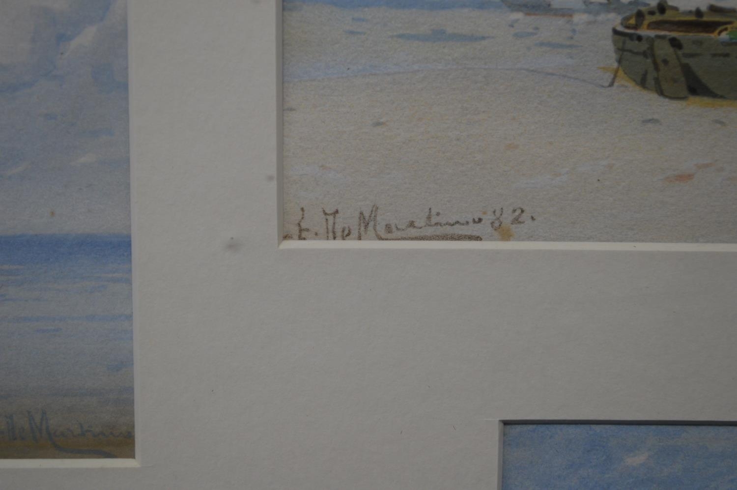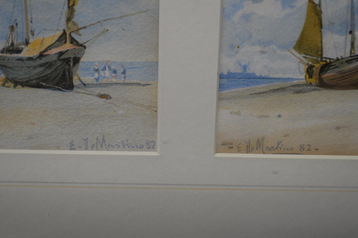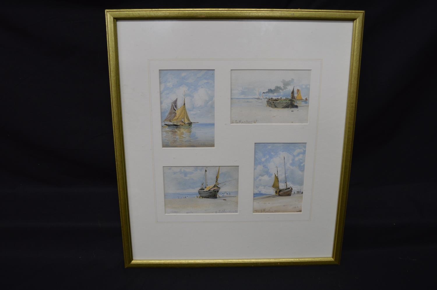 Eduardo De Martino (1838-1912) group of four small watercolours of fishing boats, each signed and dated '82 lower corners, mounted in single glazed gilt frame - 4.75" x 3.25" approx each