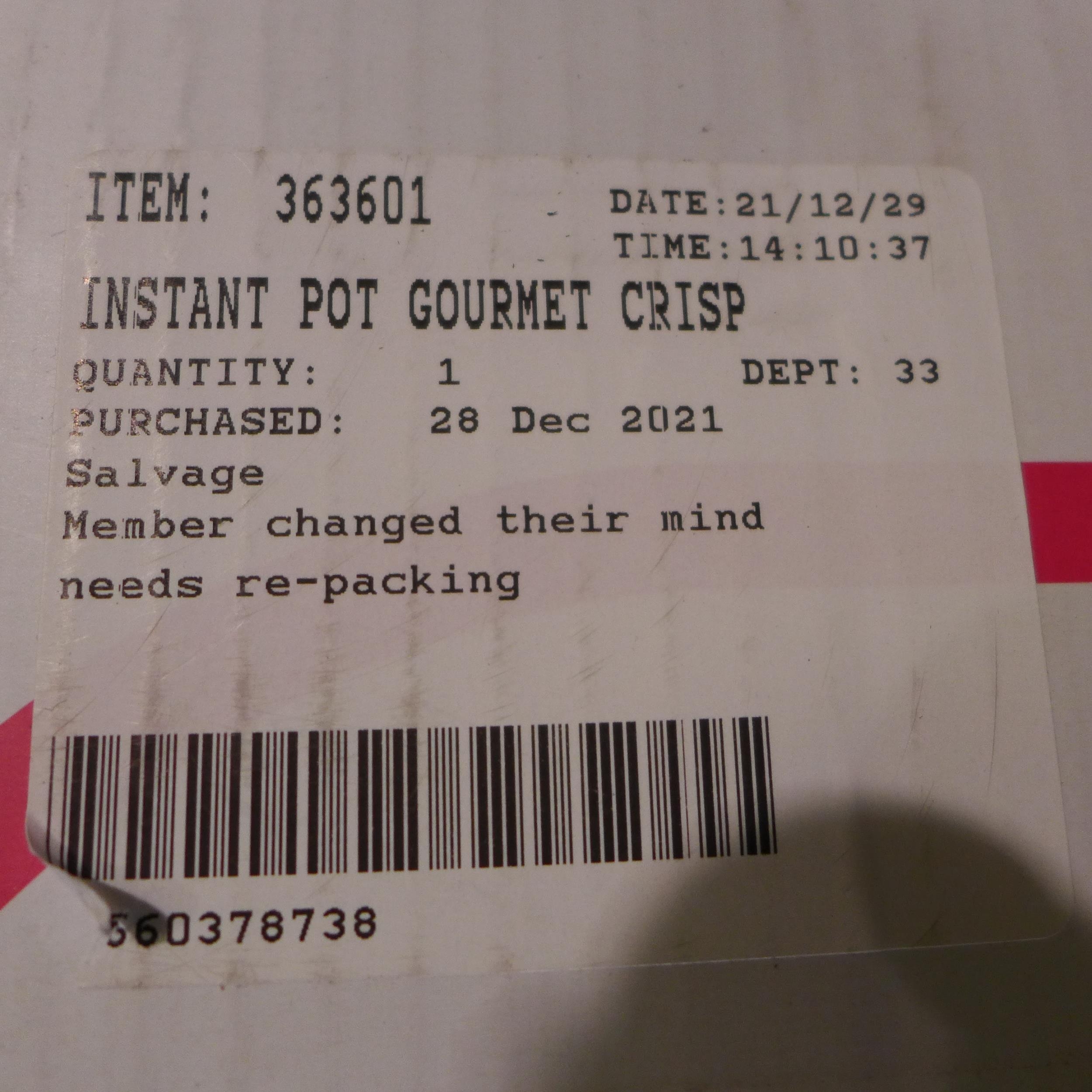Instant Pot Gourmet Crisp With Airfryer Function, Original Rrp £129.99 + Vat (247-643) * This lot is subject to vat