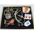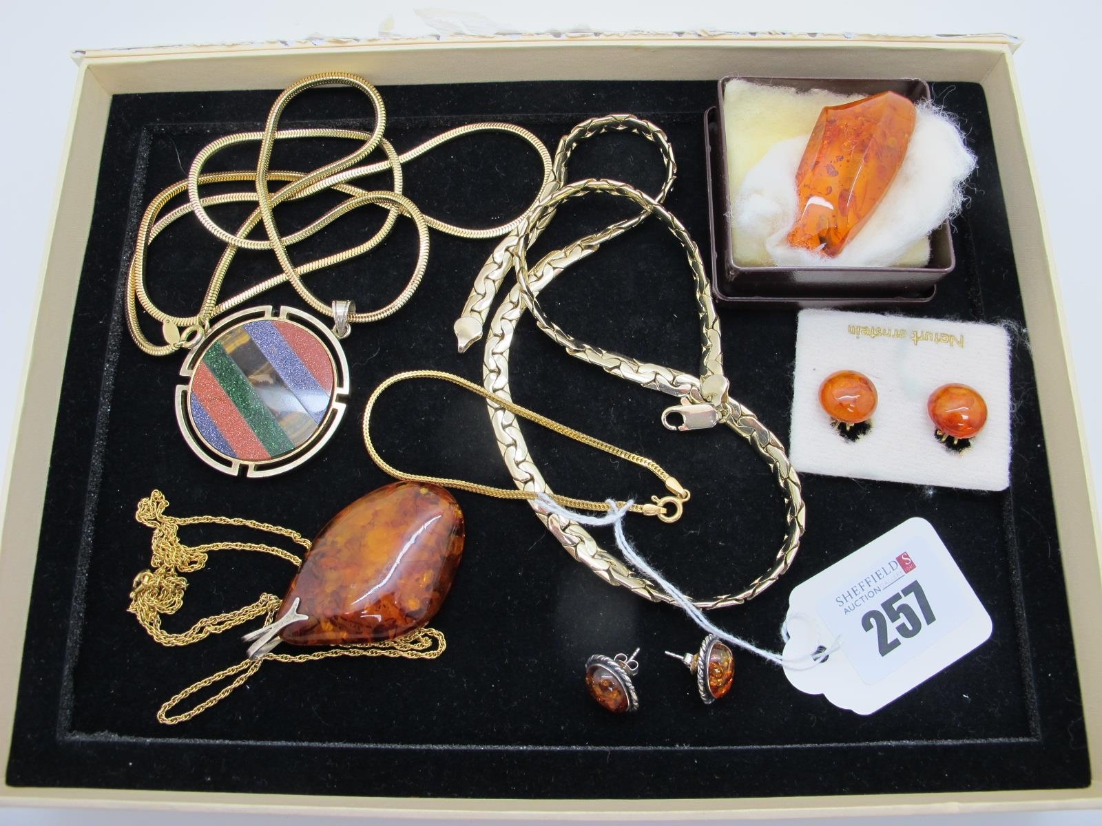 A Modern 9ct Gold Bracelet, together with modern amber, a goldstone and tiger's eye inset medallion pendant etc.