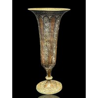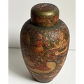 Each urn retains its original lid and showcases the fine craftsmanship typical of Kashmiri artisans of the period. Measuring approximately 16 cm tall, they remain in good condition overall, with some age-related wear including minor flaking to the body and a few cracks near the top, consistent with their age and authenticity.