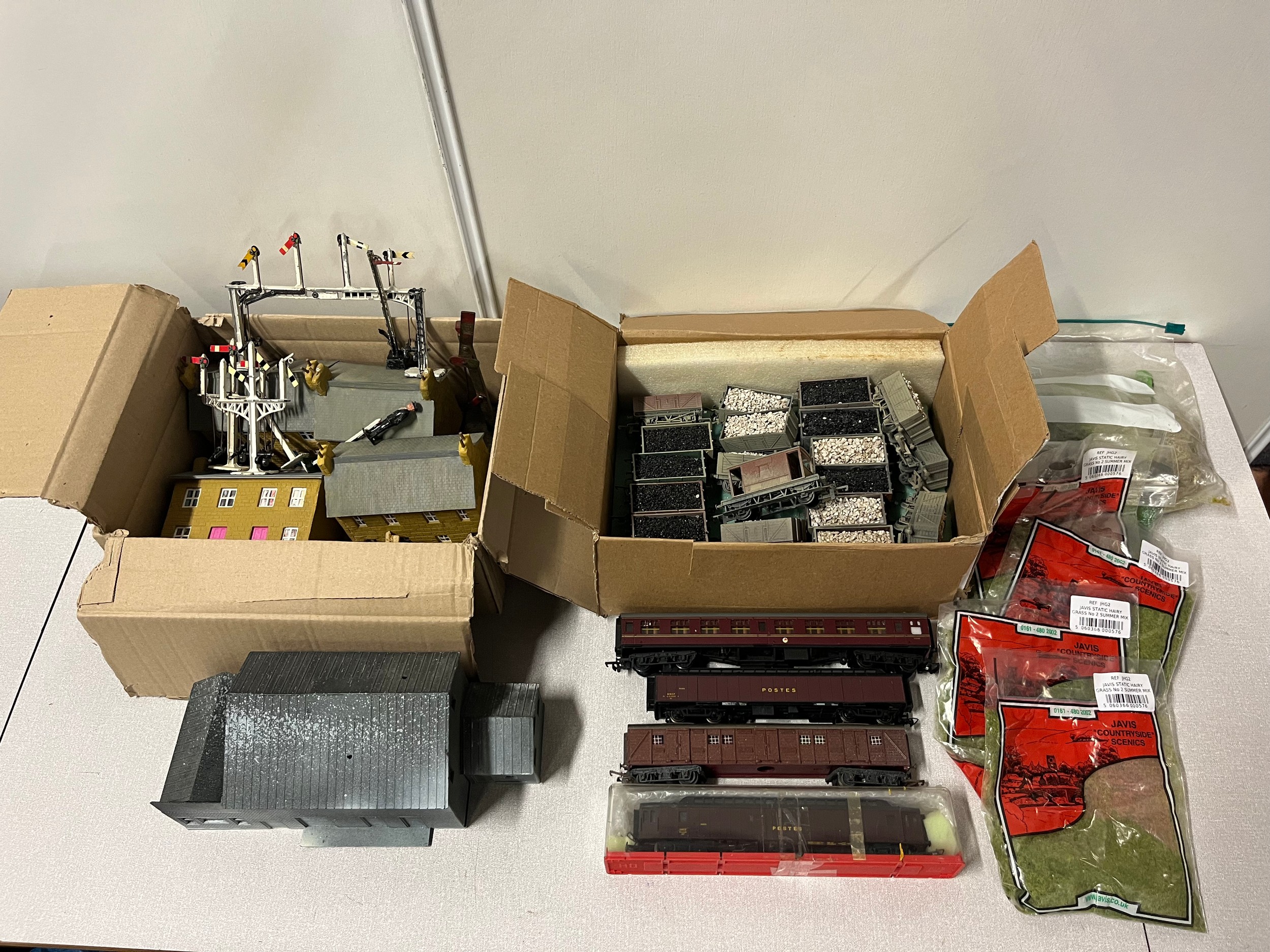selection of railway items to include rolling stock, carriages & metal signal posts etc