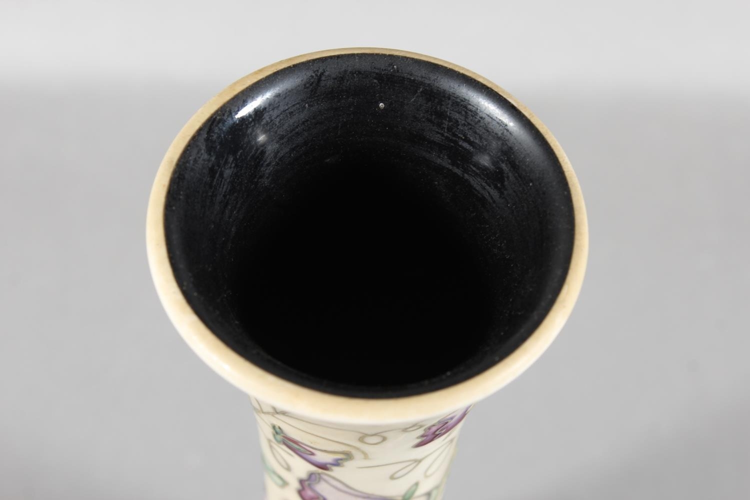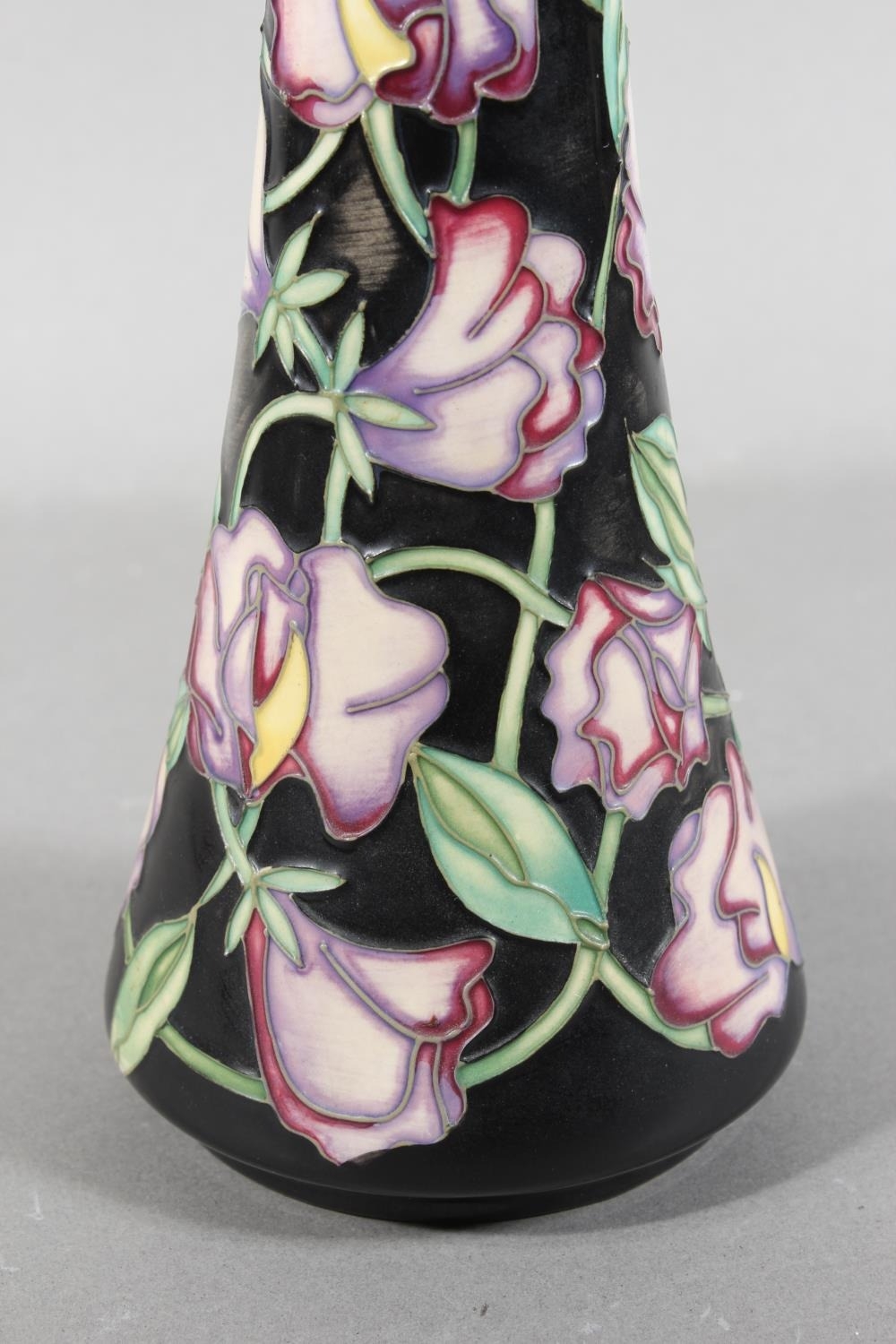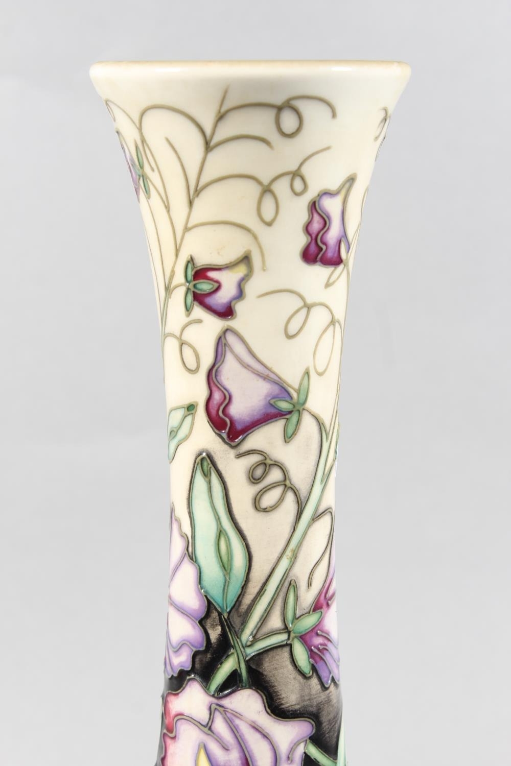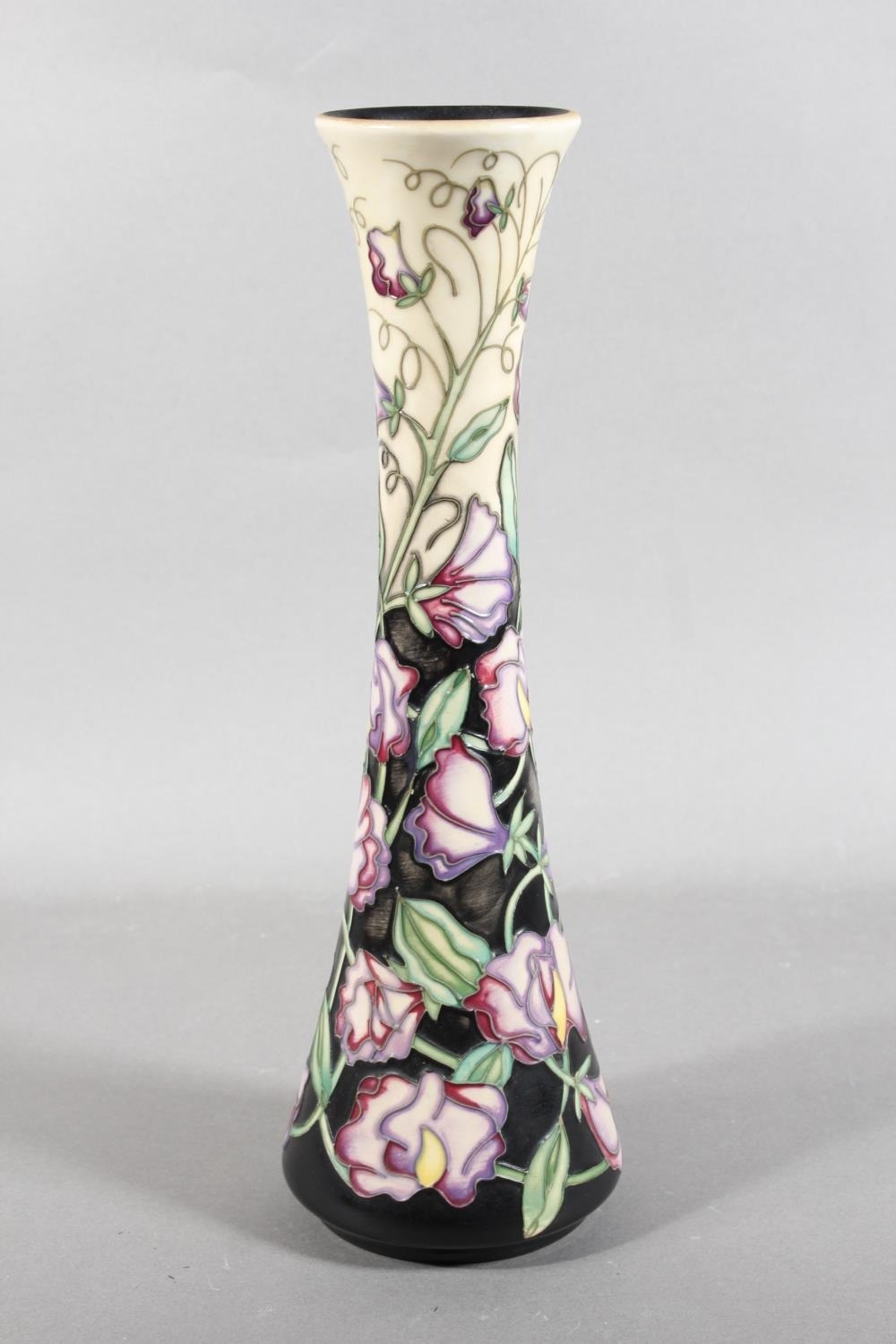 Moorcroft pottery Sweet Pea pattern vase, 31cm tall.