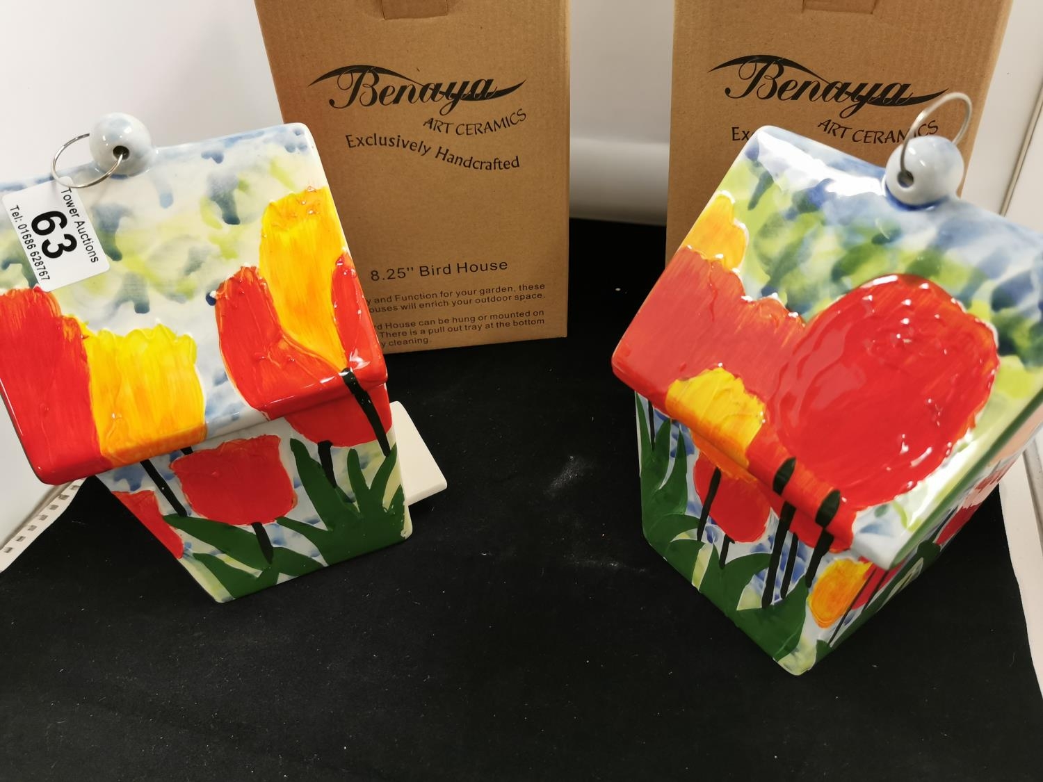 Pair of Benaya Art Ceramics 8.35'' Bird Houses