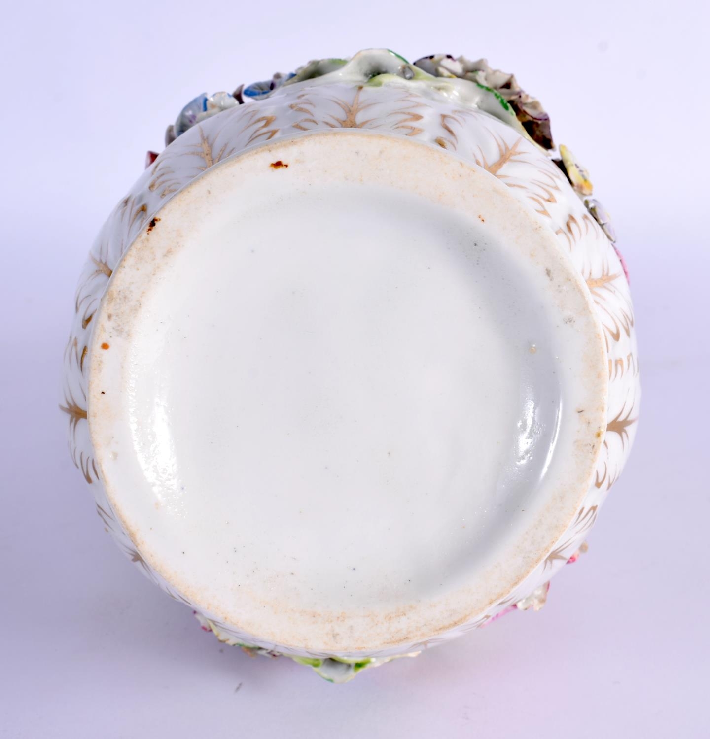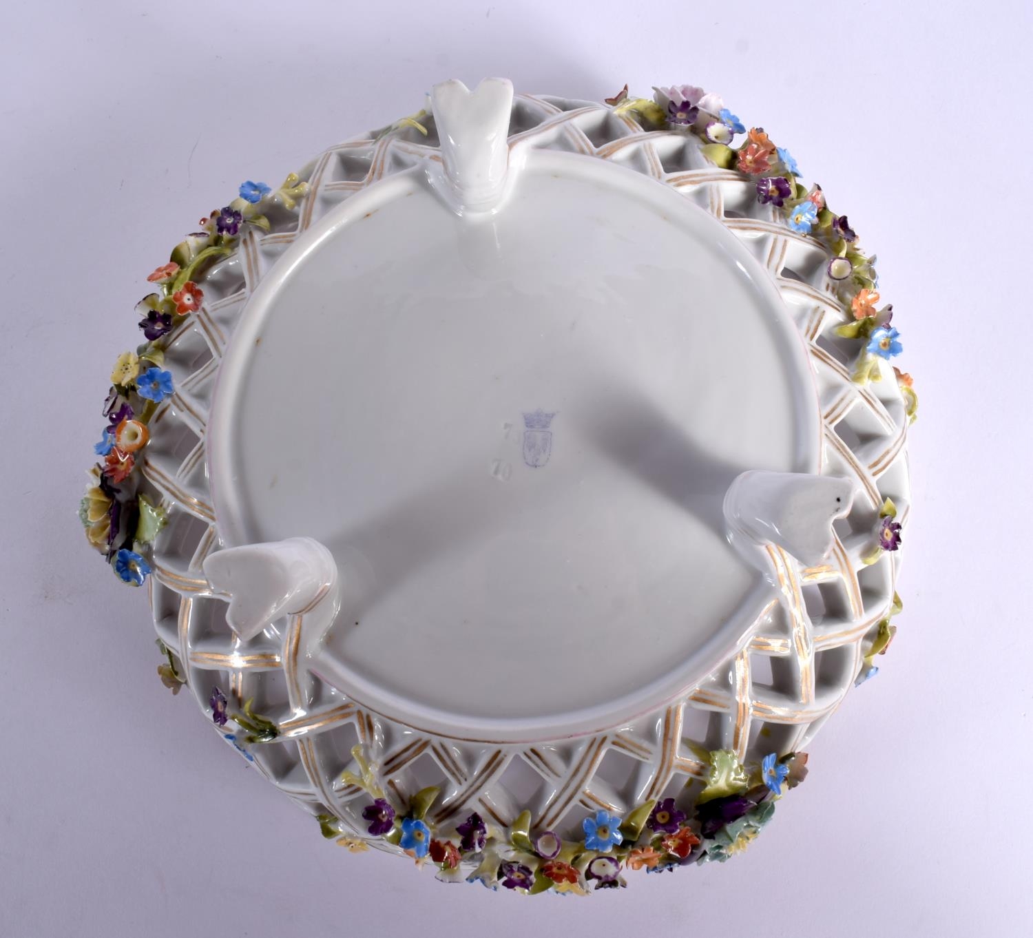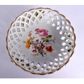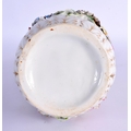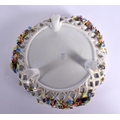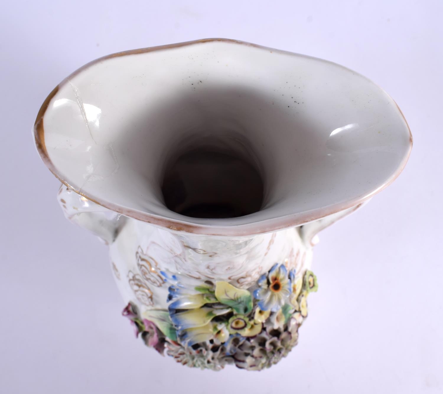 A CONTINENTAL RETICULATED PORCELAIN BASKET together with a twin handled encrusted porcelain vase. Largest 26 cm high. (2)