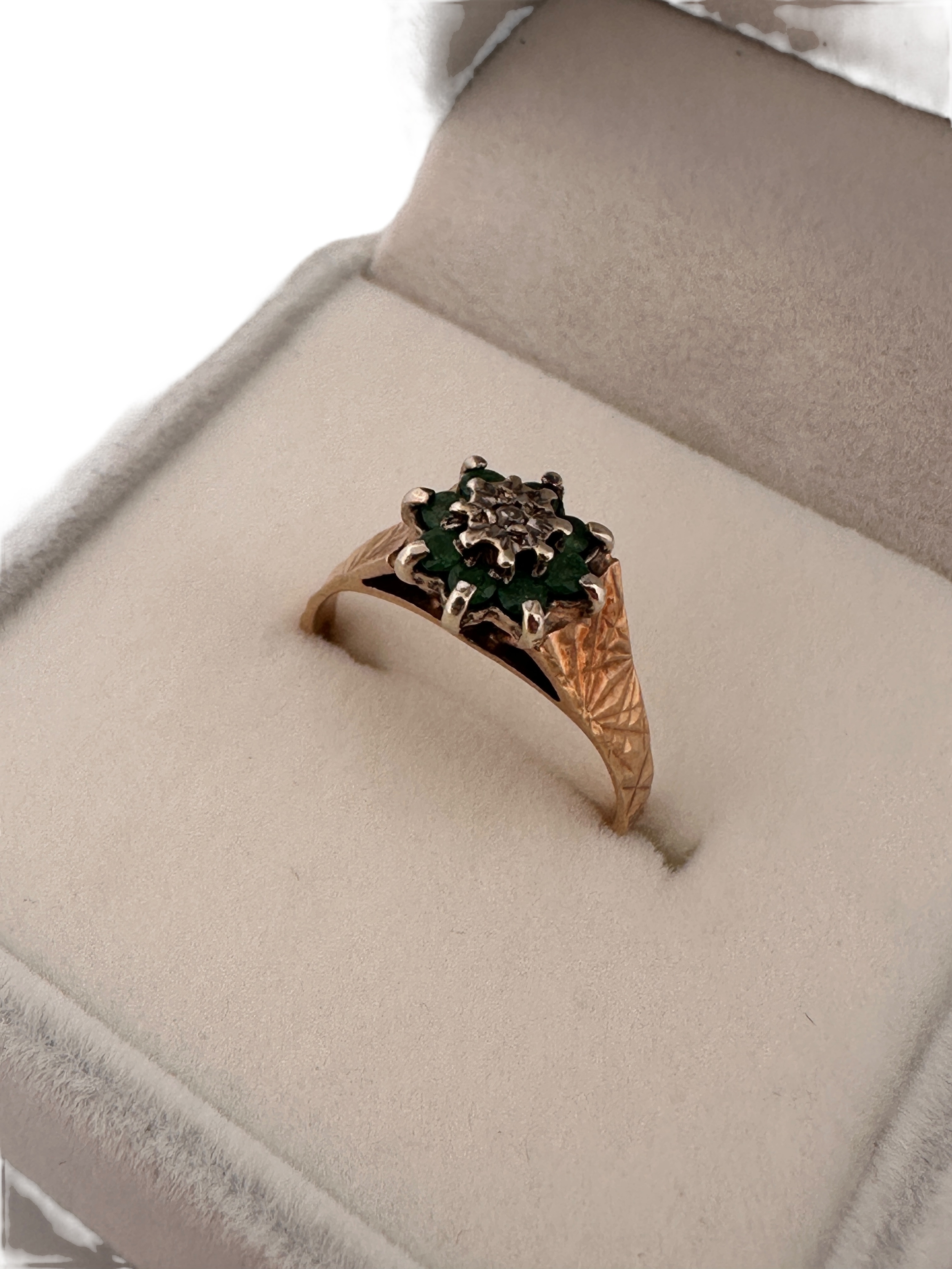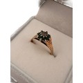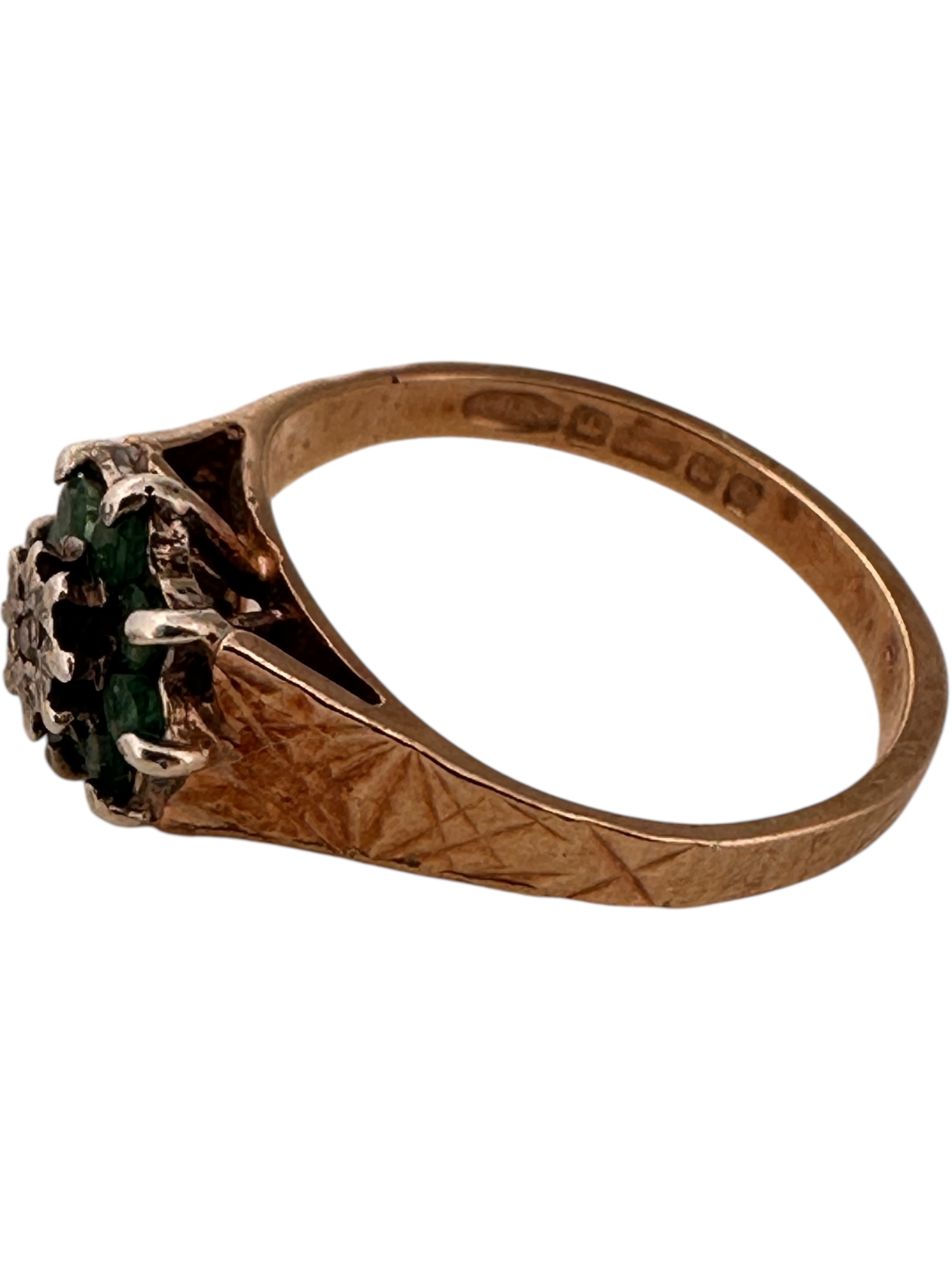 Nine Carat Gold Ring set with Small Emeralds & a Small Diamond. Size L. 2.4g