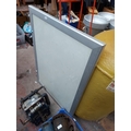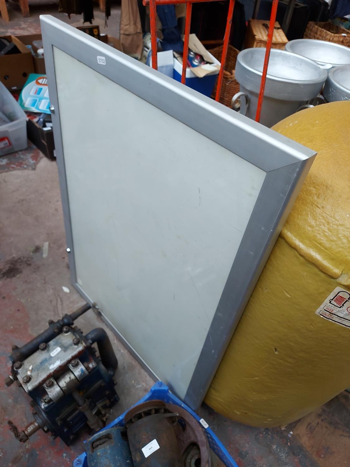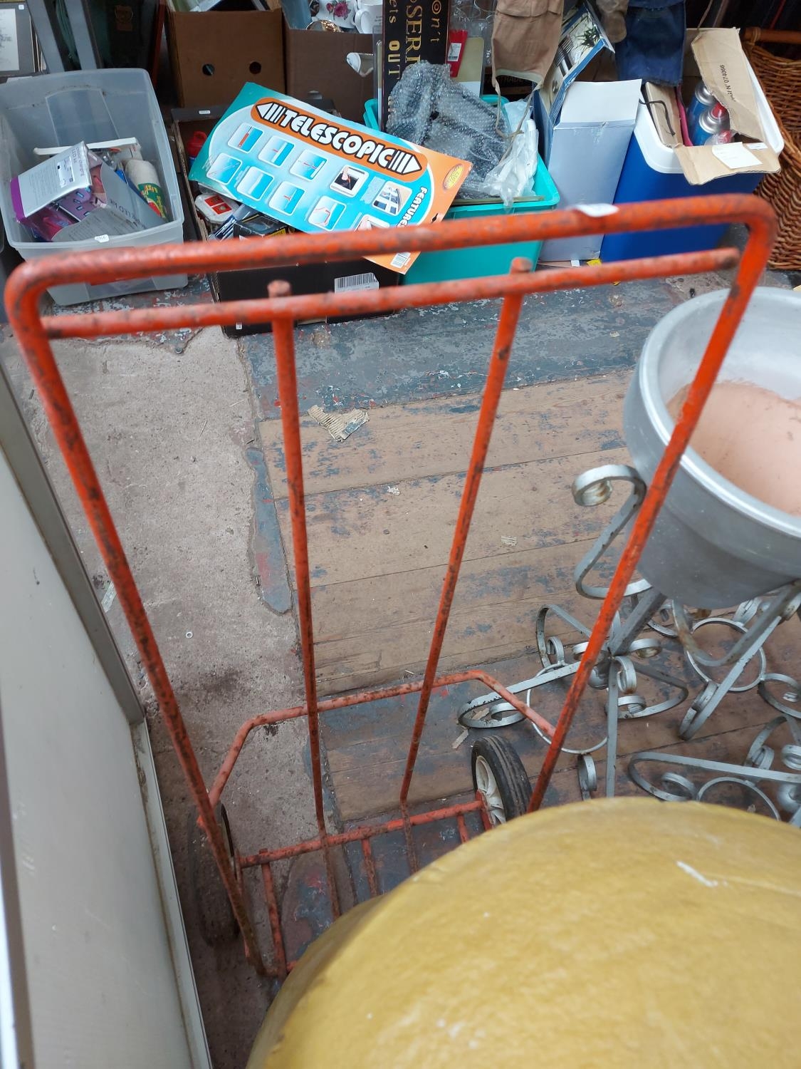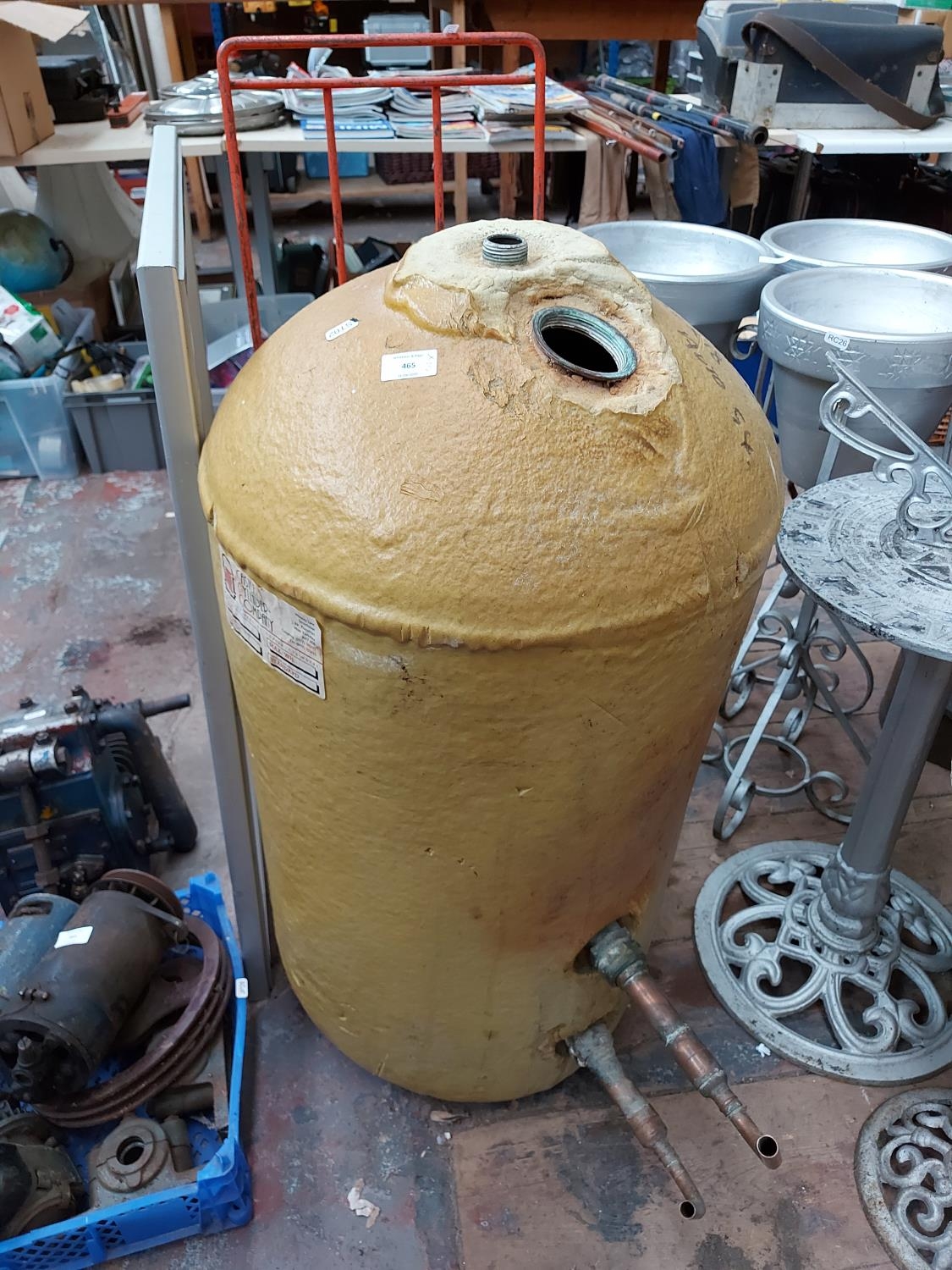 Three items to include an insulated copper hot water cylinder, an aluminium notice board and a small two wheeled folding sack truck