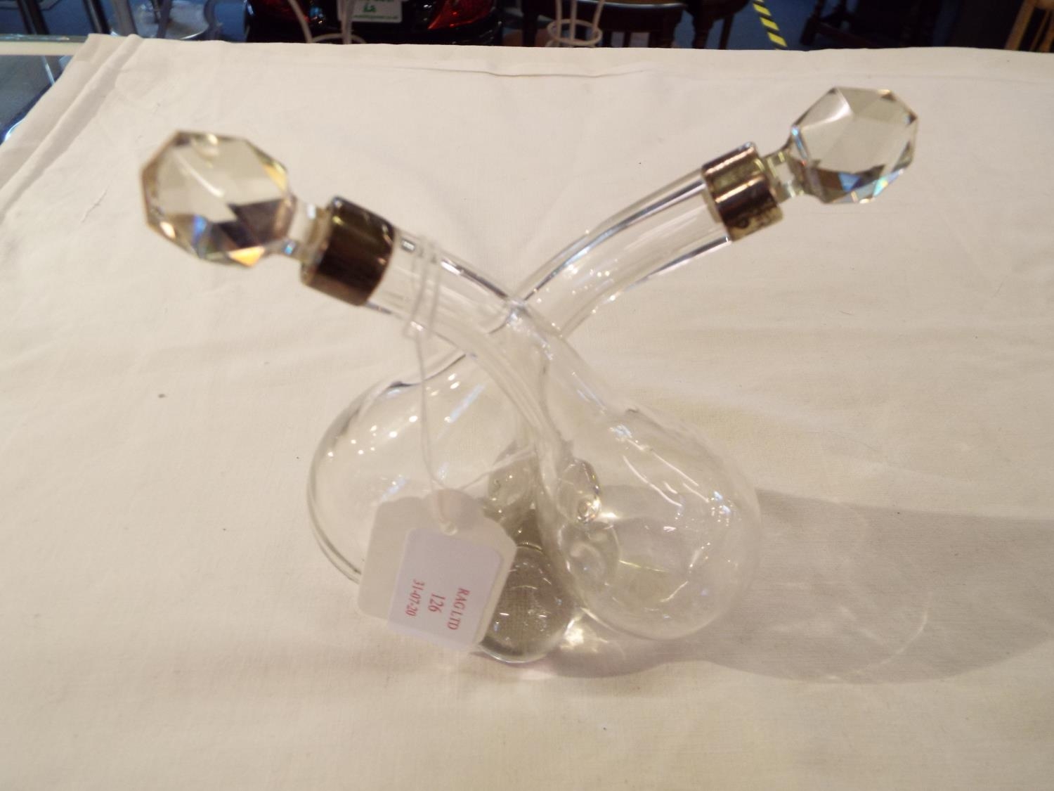 A London 1908 silver collar double perfume bottle