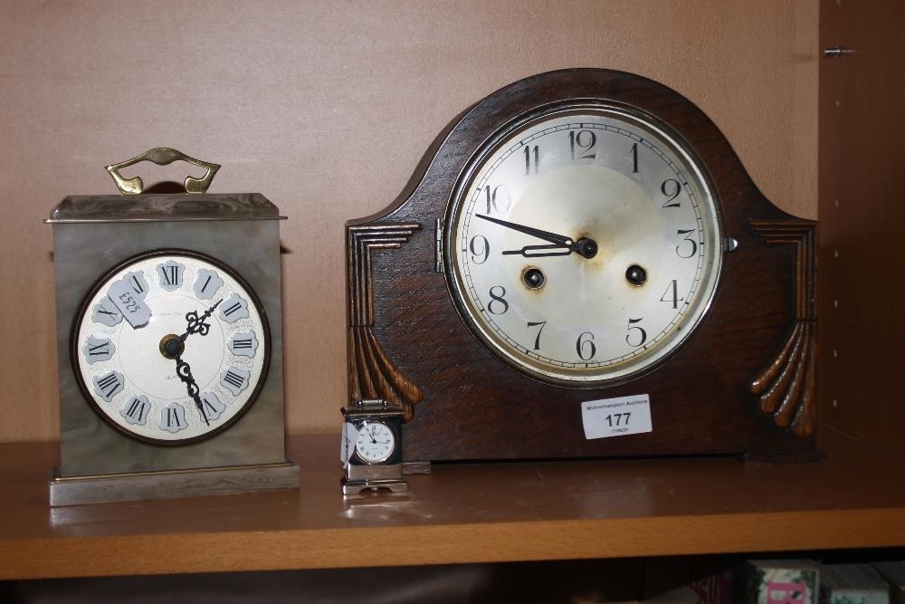 TWO MANTEL CLOCKS TOGETHER WITH A MINIATURE CLOCK (3)