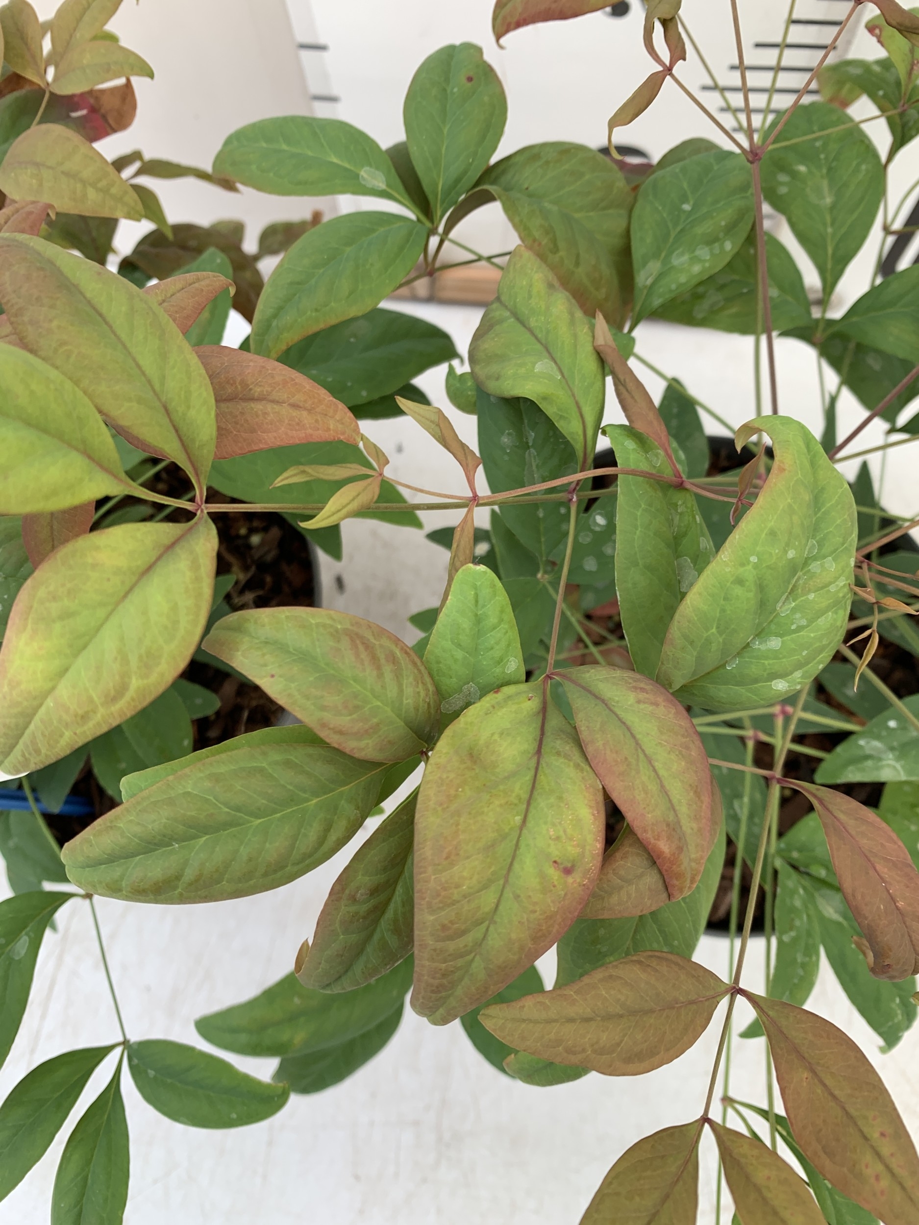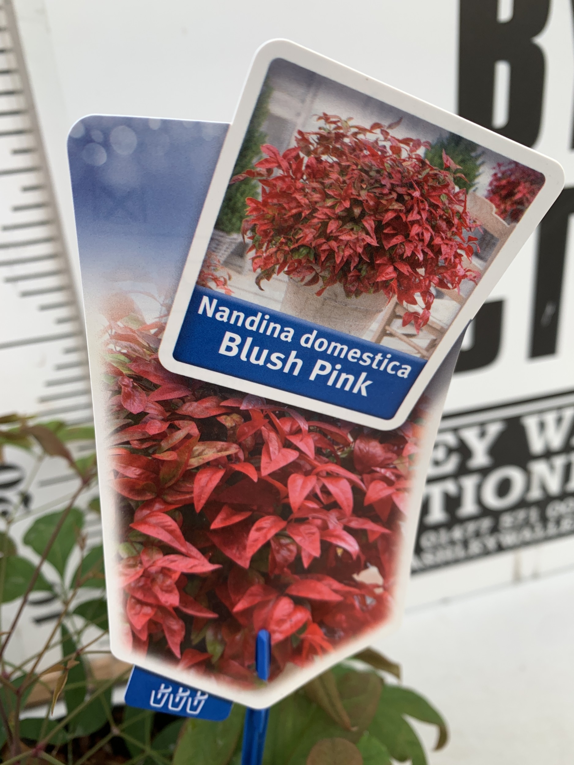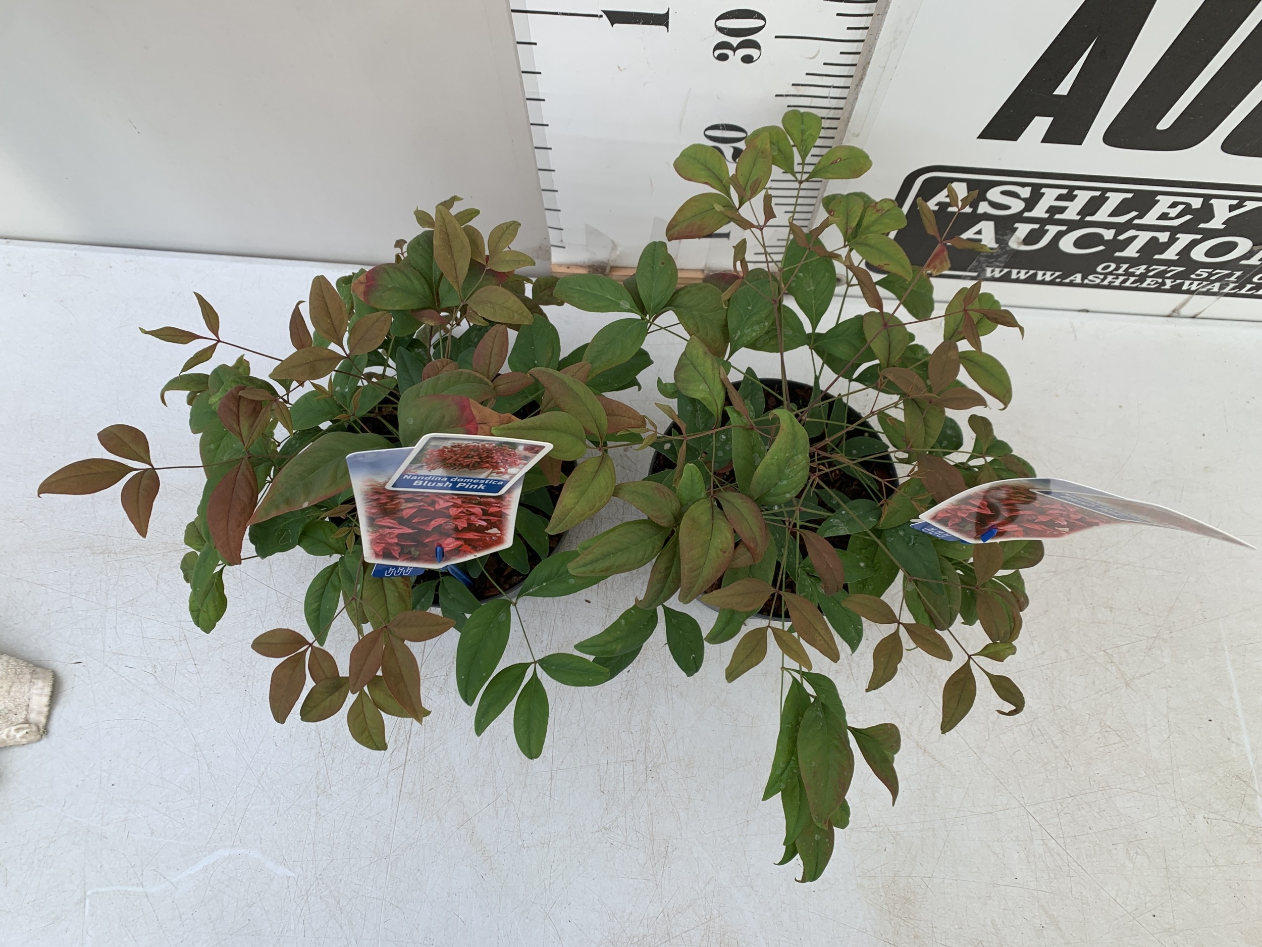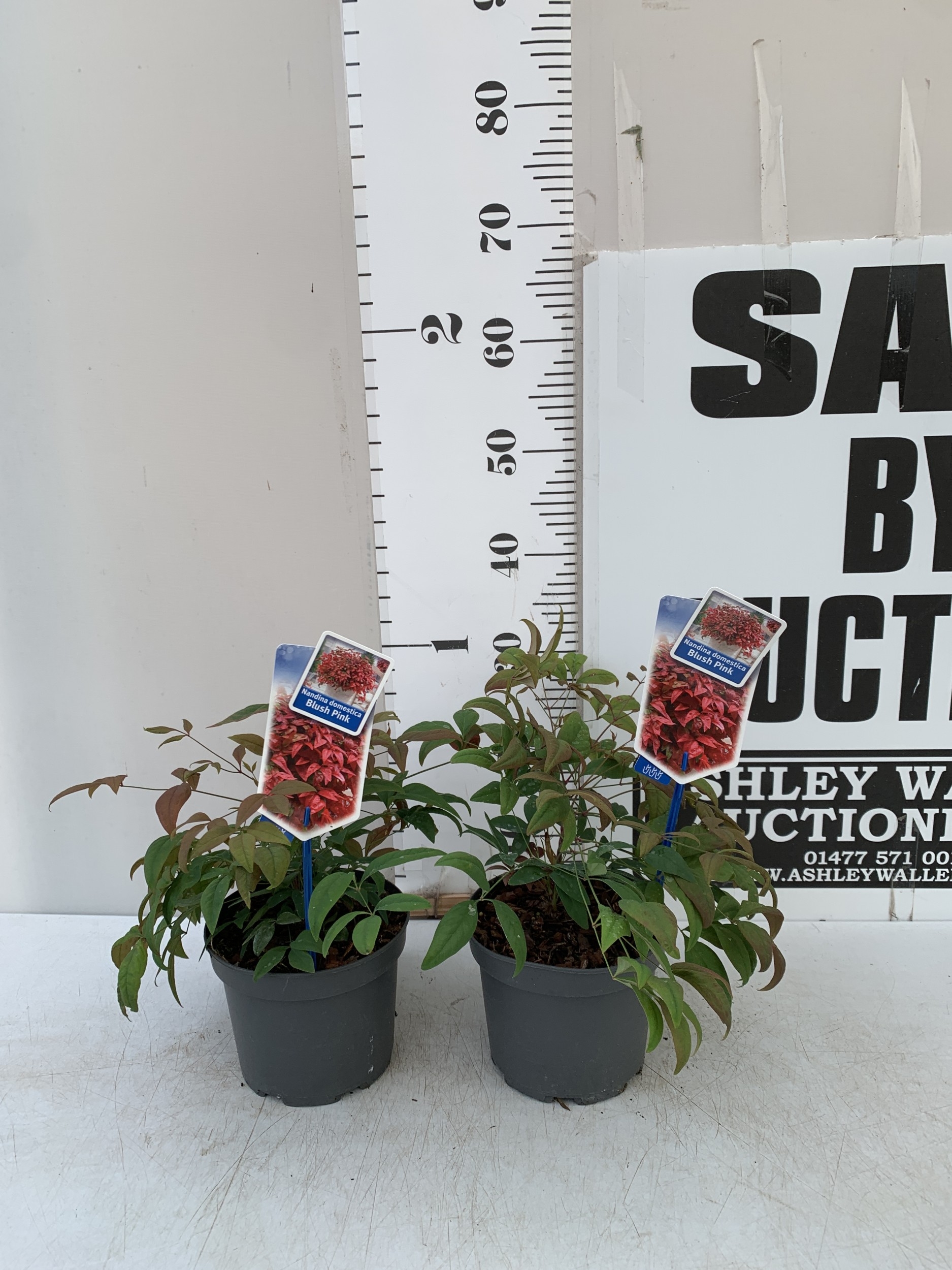 TWO NANDINA DOMESTICA 'BLUSH PINK' IN 2 LTR POTS. STUNNING AUTUMN COLOUR, APPROX 30-40CM TALL, TO BE SOLD FOR THE TWO