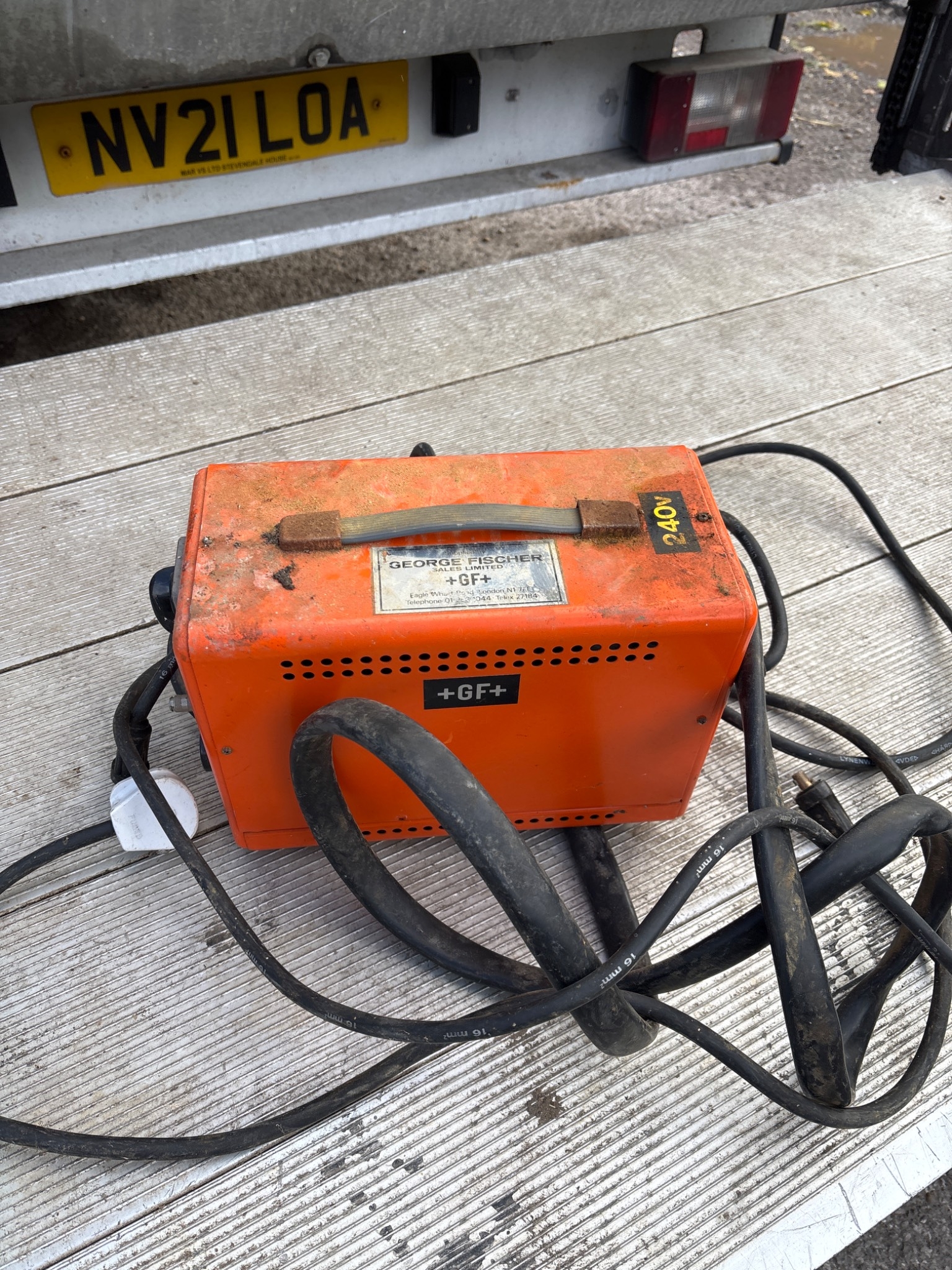 George Fischer electrofusion welder, supplied by George Fischer Sales Limited, featuring cables and clamps not postable.