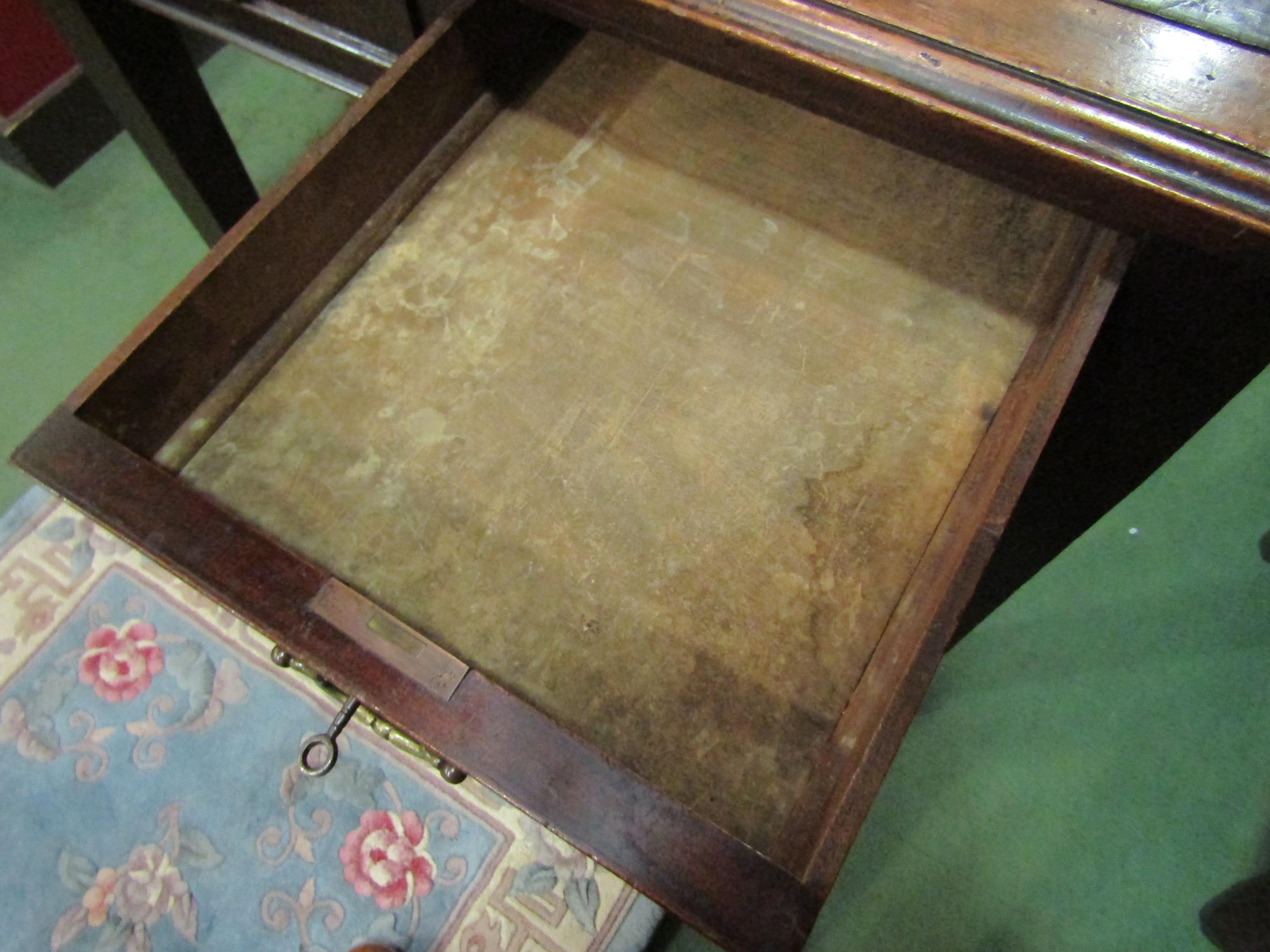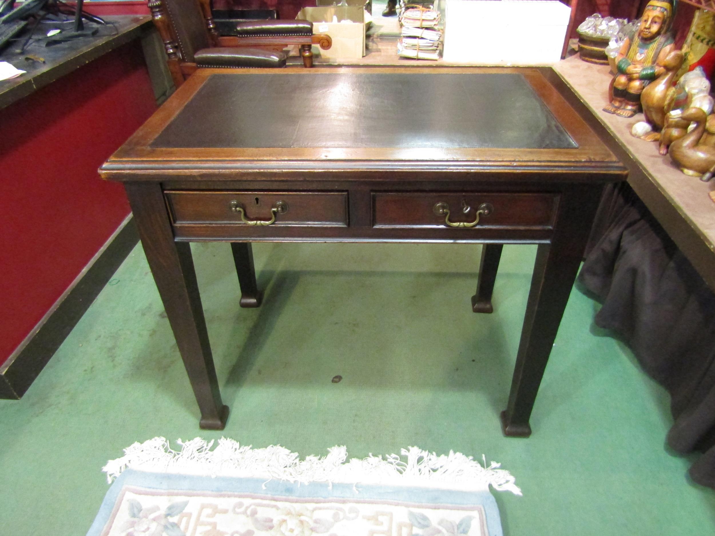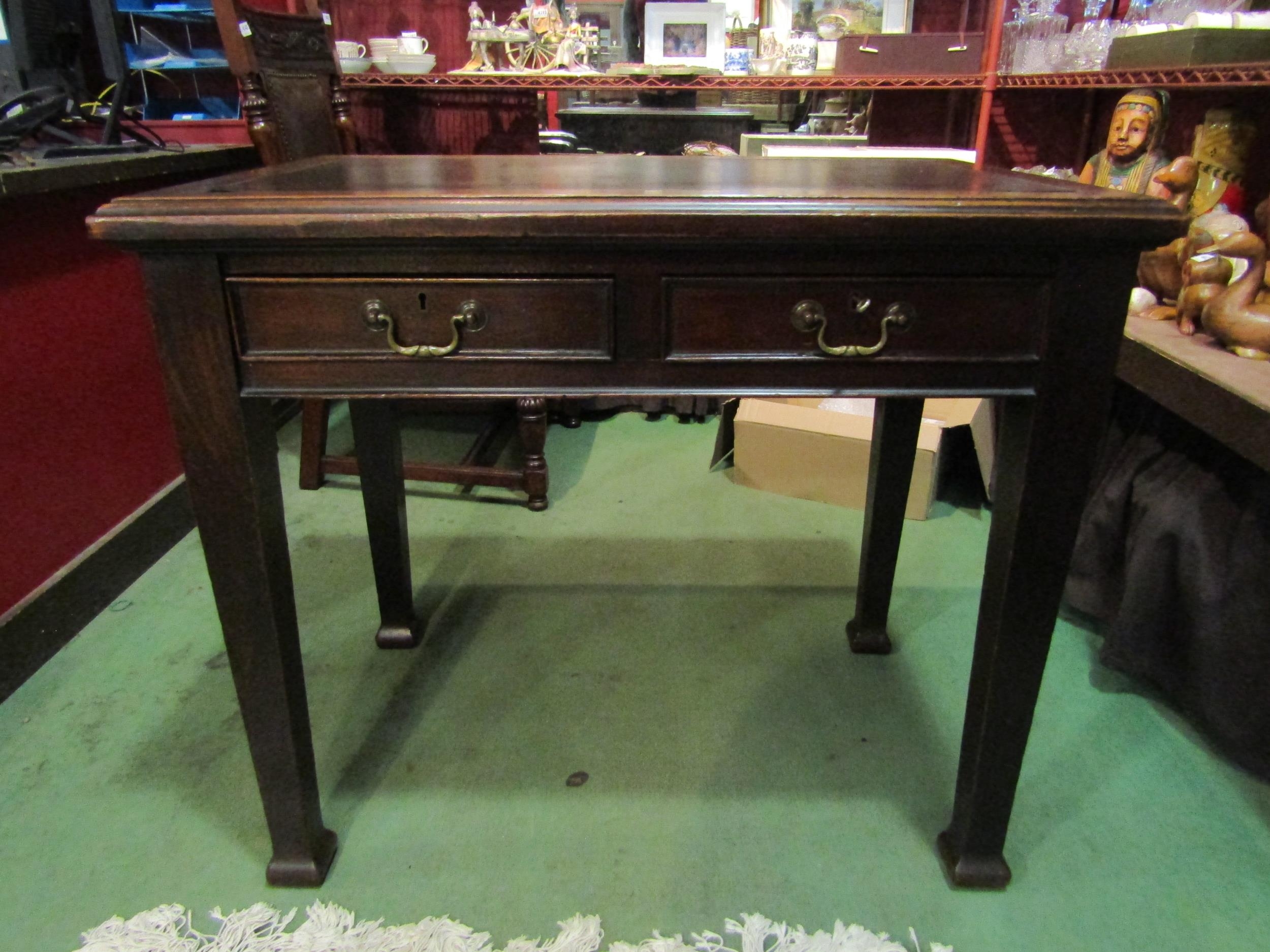 A "Cookes of Finsbury" Georgian mahogany student's writing desk, the two frieze drawers with key and working locks over square tapering legs on splayed feet, 78cm high x 91cm wide x 60cm deep (R) £100