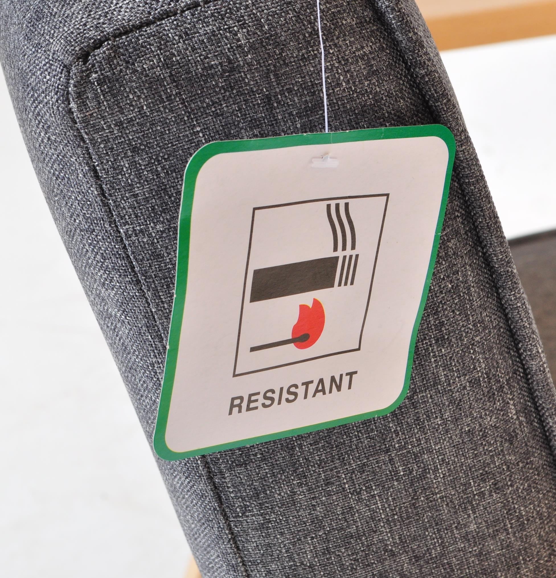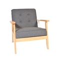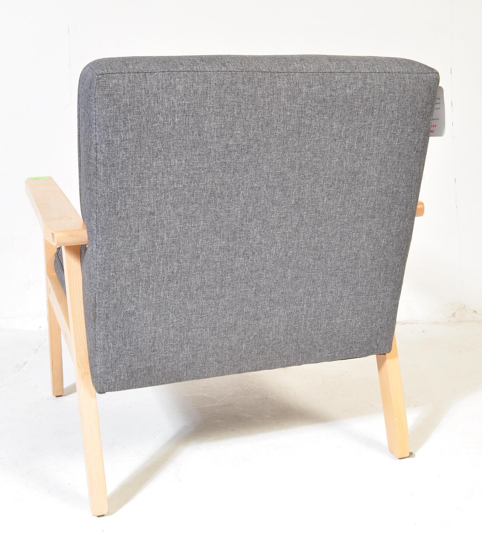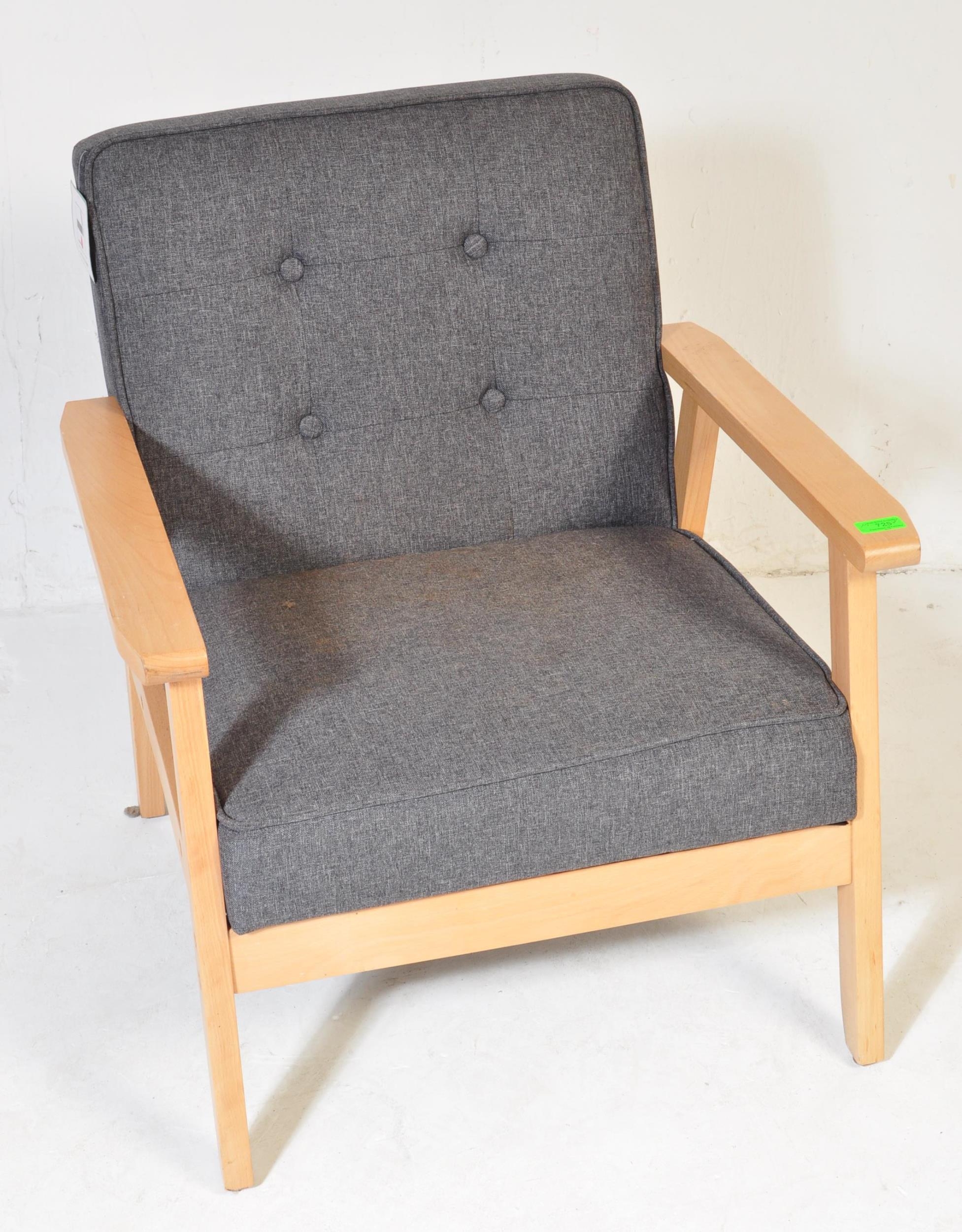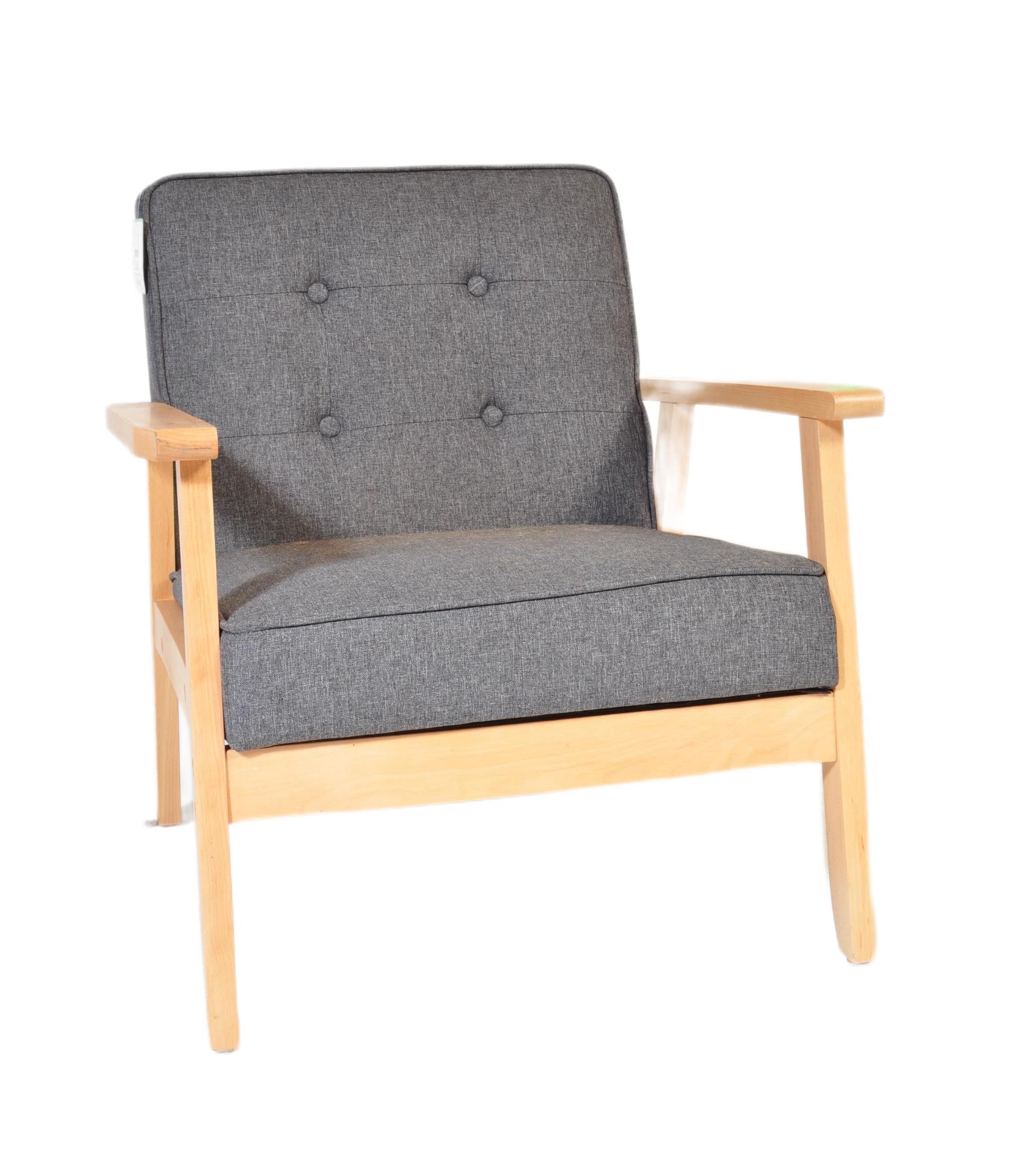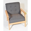 A contemporary retro style IKEA lounge easy chair having a wooden open frame with upholstered grey cushions. Measures approx; 72cm x 64cm x 67cm.