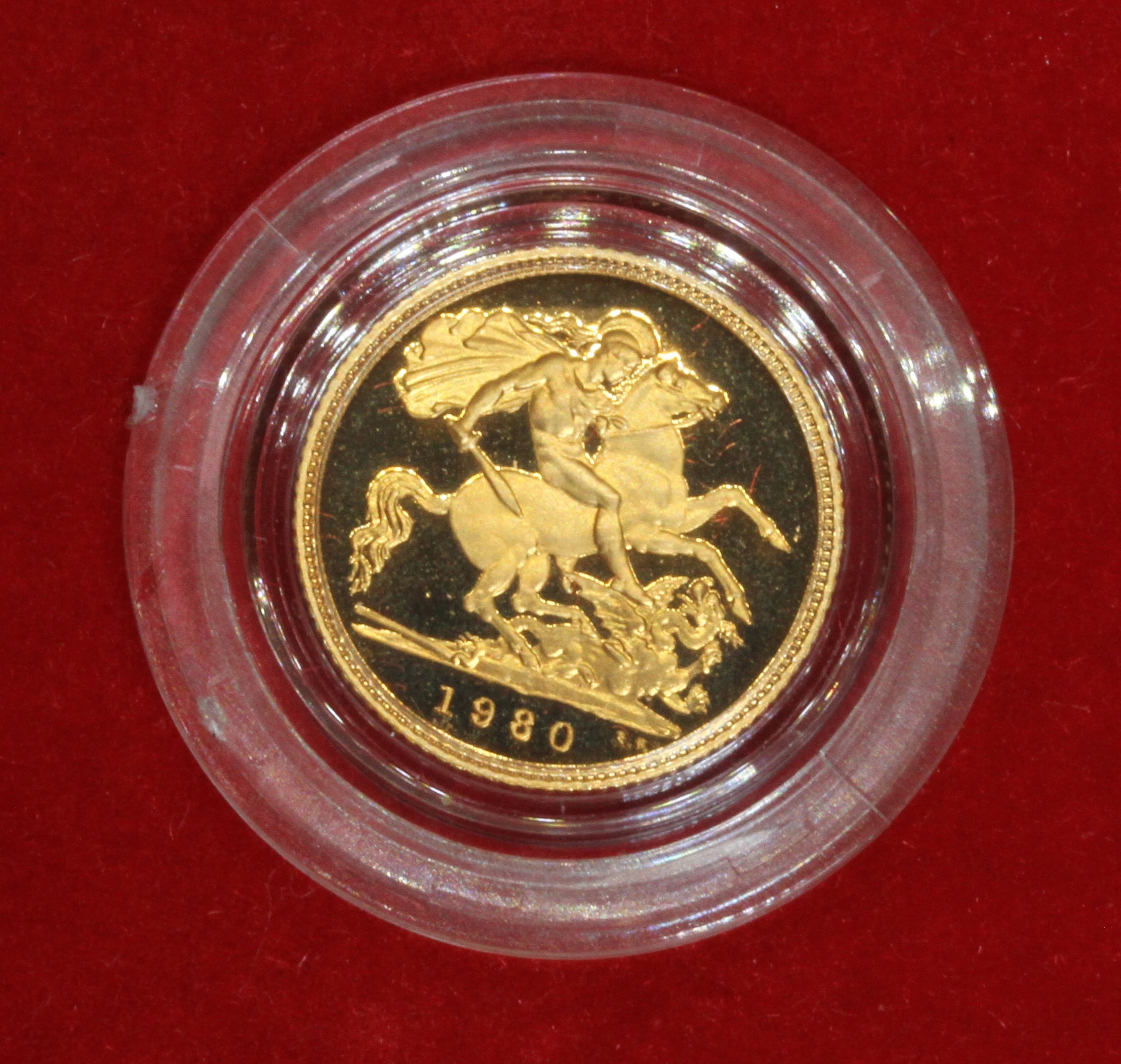 Elizabeth II 1980 proof half sovereign, 10% buyer's premium (inclusive of VAT), normal online bidding fees apply.