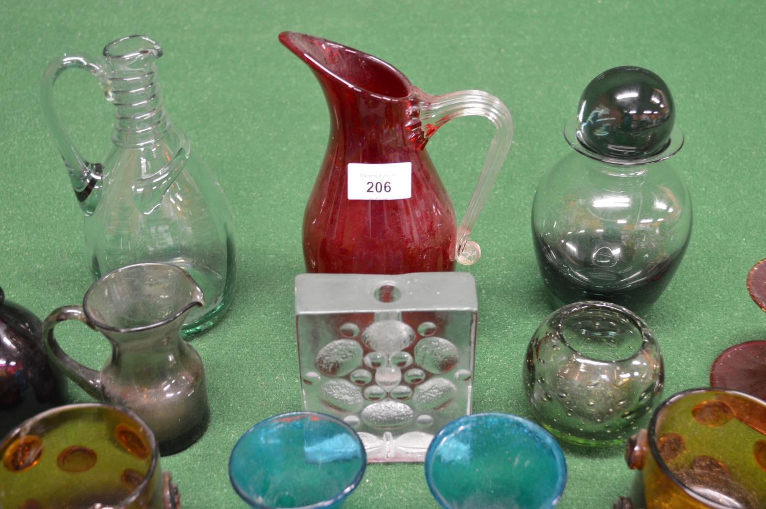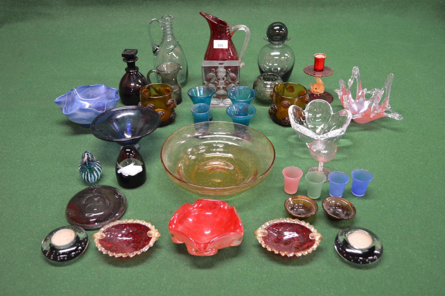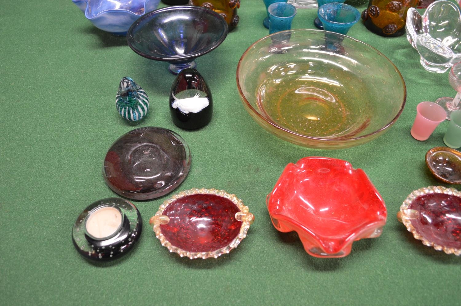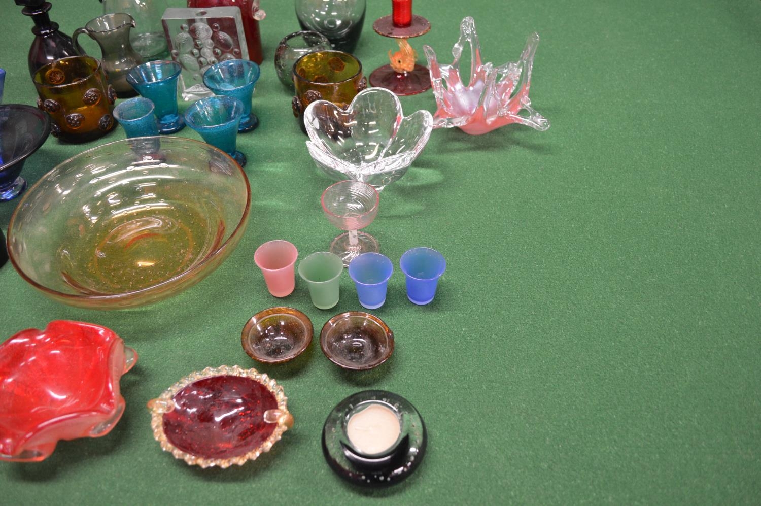 Collection of studio and other 20th and 21st century glassware to include: Orrefors bowl, Whitefriars bowl, pair of Nick Munro tea light holders etc