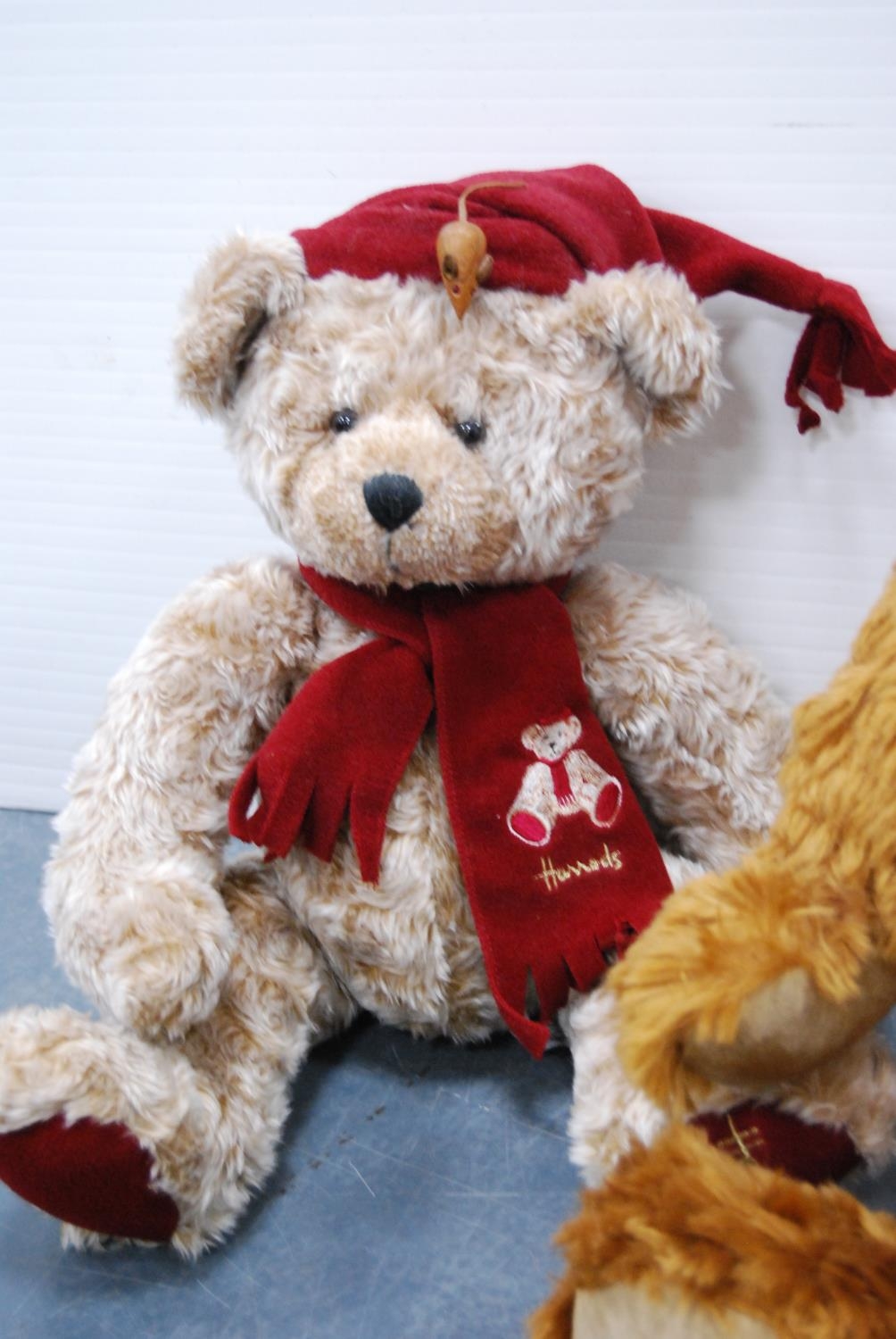 Three teddy bears to include Harrod's 1999 and two others. (3)