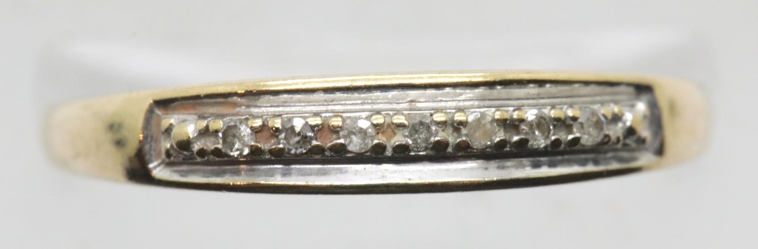 9ct gold diamond ring, size S/T, 1.6g. Not available for in-house P&P.